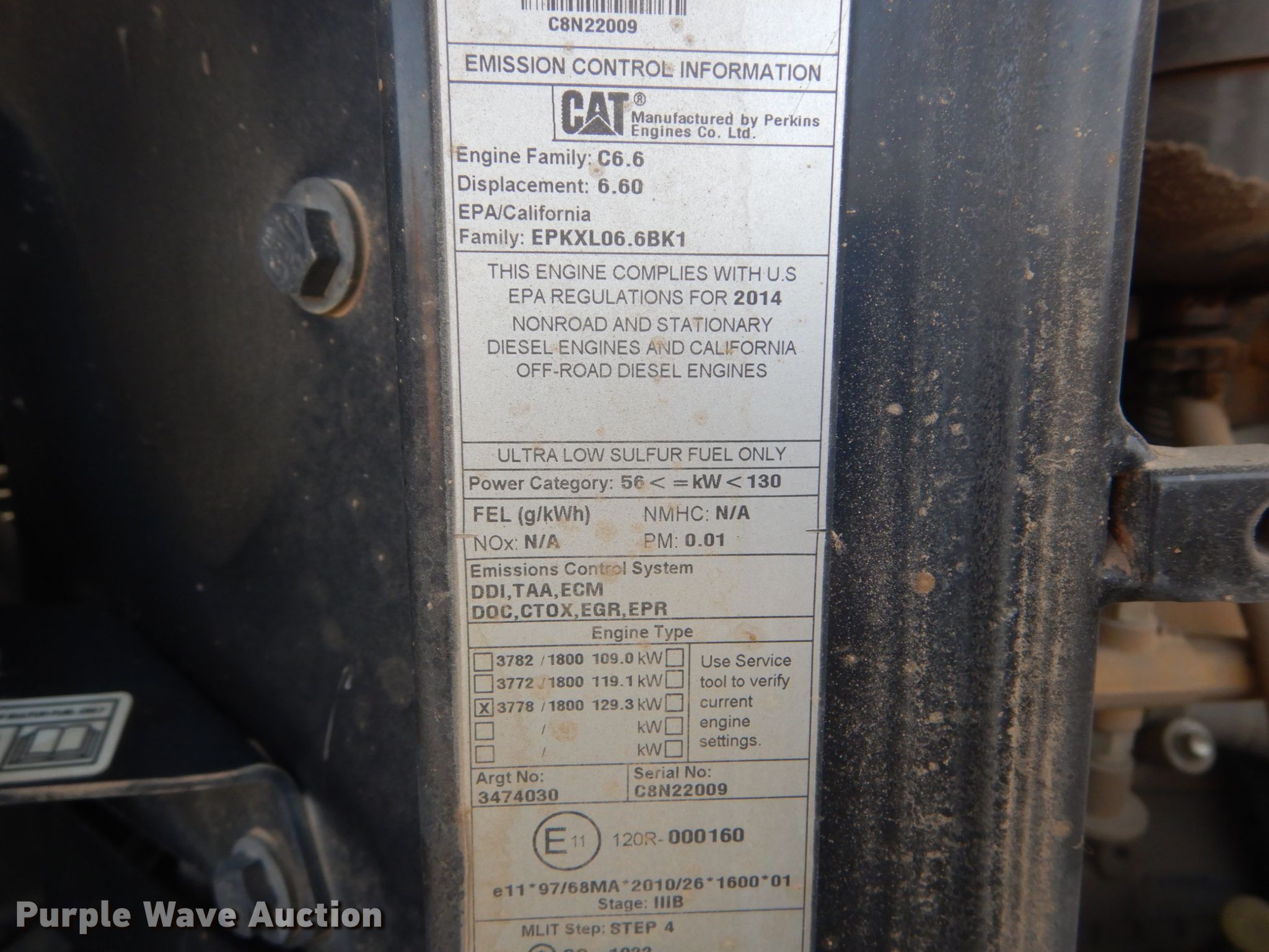 2014 Caterpillar 938K wheel loader. 5,798 hours on meter, Hours may vary, unit still in use, Serial: SWL03082, Unit #: 1866. Engine Caterpillar C6.6 Acert, Displacement: 402 C.I.D., Cylinders: 6, Fuel type: Diesel. Transmission Powershift, 4F - 4R. Chassis Differential lock: Front, Rear. Operators station Enclosed cab, AC, Heat, Bucket controls: Joystick, Ride control. Operational Auxiliary hydraulics: Front, Quick coupler: Hydraulic, Bucket Width: 108", Self- leveling bucket, Cutting edge: Bolt-on. Tires Size: 20.5R25. Fraser Construction - Open inspection Sept. 27, 28. 3725 Enterprise Dr SW. Rochester, MN 55902