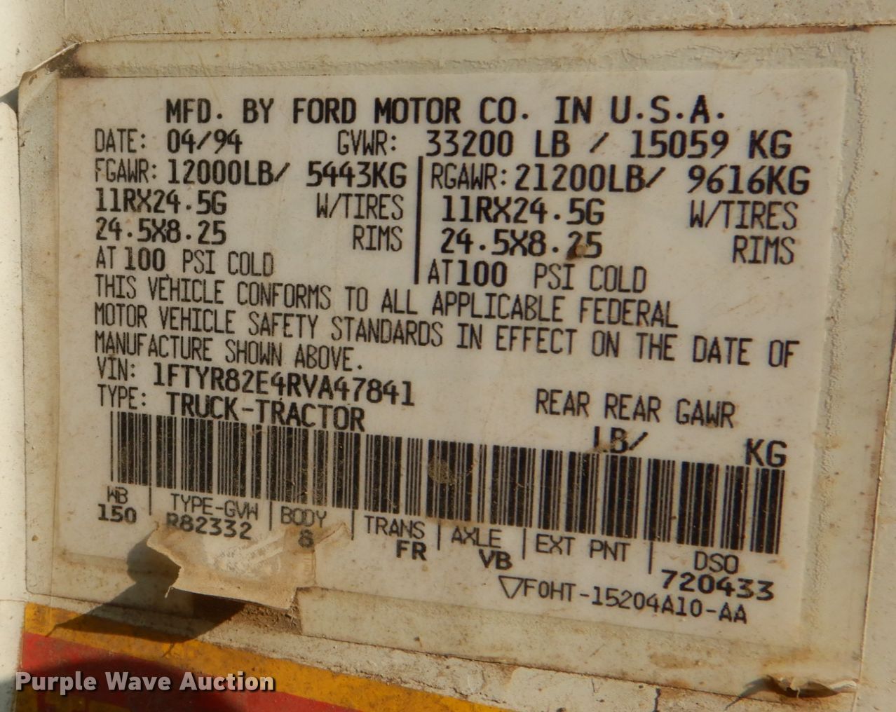 1994 Ford LN8000 water truck. 132,764 miles on odometer, Miles may vary, unit still in use, Unit #: 1118. Engine Cummins C8.3, Displacement: 8.3L, Cylinders: 6, Fuel type: Diesel. Transmission Eaton Fuller, Manual, Speed: 7. Chassis Axles: Single, Suspension: Spring, Brakes: Air, PTO, GVWR: 33,200 lbs, Wheelbase: 150". Interior Heat. Operational Water tank Capacity: 2,000 gallons, 10' L x 92" W, Spray bar: Front, Rear, Hose reel, Top fill, Rear outlet: 3". Tires Size: 11R24.5. Minnesota title. 1FTYR82E4RVA47841. Fraser Construction - Open inspection Sept. 27, 28. 3725 Enterprise Dr SW. Rochester, MN 55902