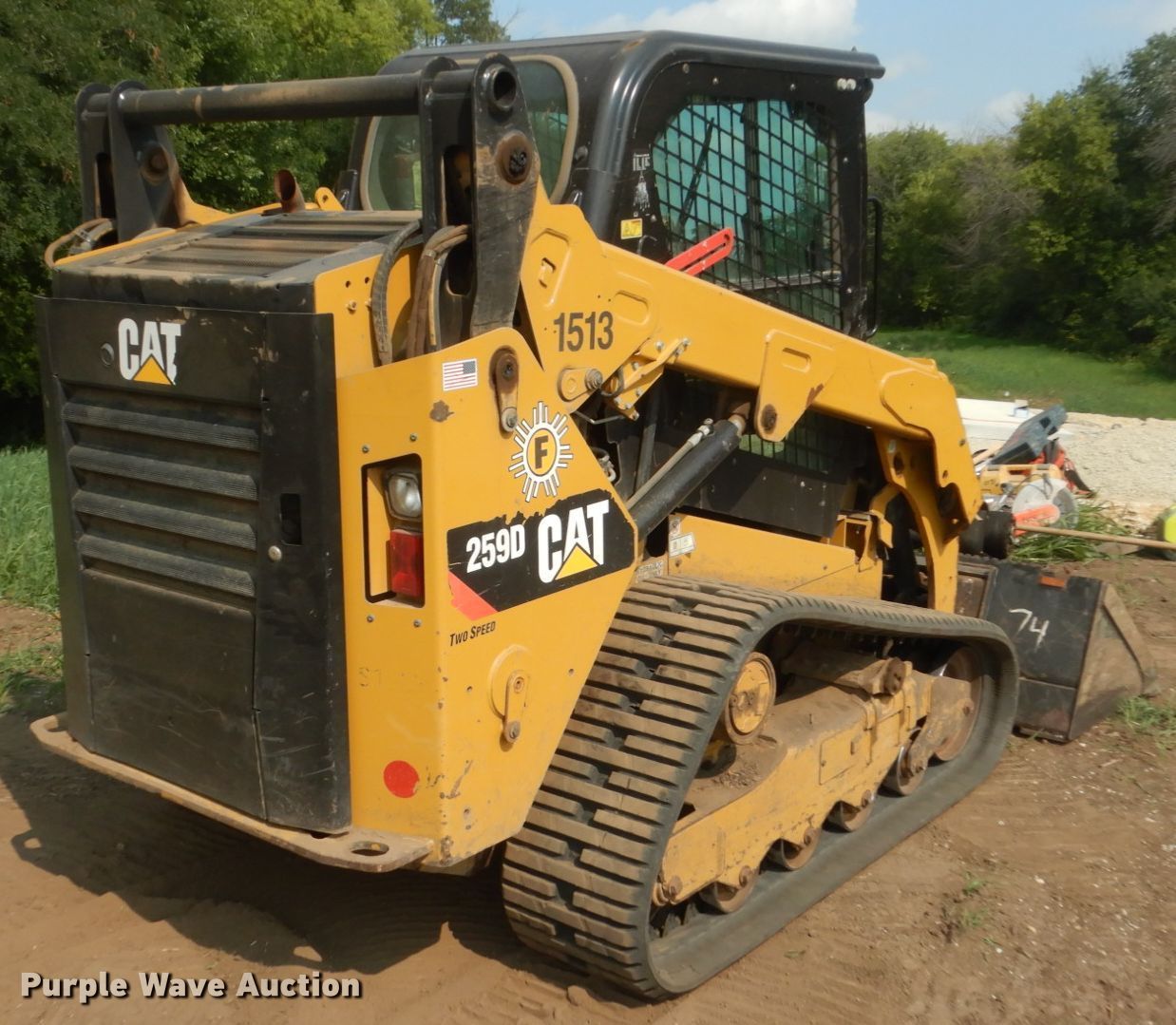 Purple Wave is selling a used Tracked Skid Steer Loader in Minnesota. This item is a 2015 Caterpillar 259D tracked skid steer loader with the following: 3,780 hours on meter, Hours may vary, unit still in use, Serial: FTL05256, Unit #: 1513