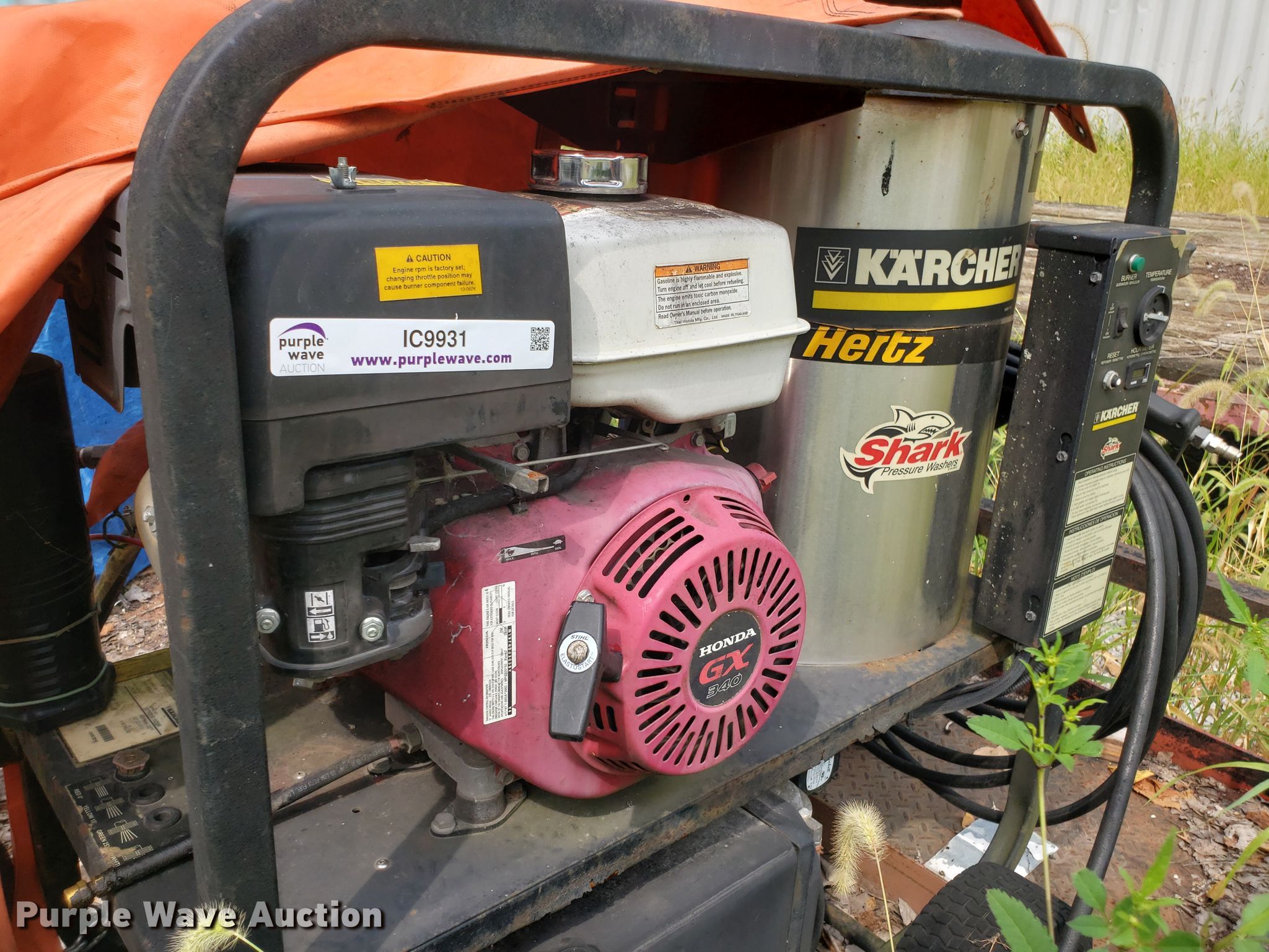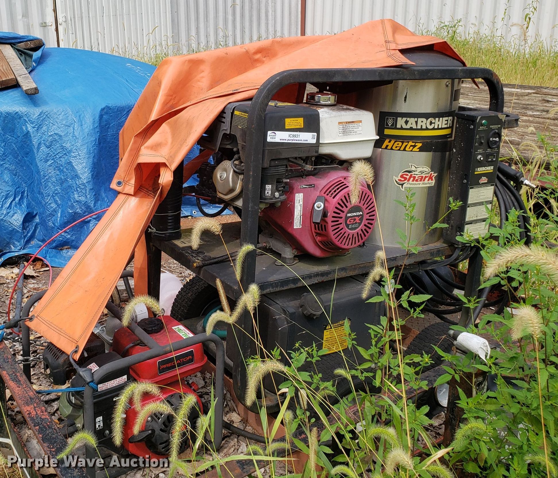 Purple Wave is selling a used Tools in Missouri. This item is a Karcher steam cleaner with the following: 522 hours on meter, Honda GX340 gas engine, 3,000 psi, 350 gallon poly tank, Water pump, Predator gas engine, Trailer not included