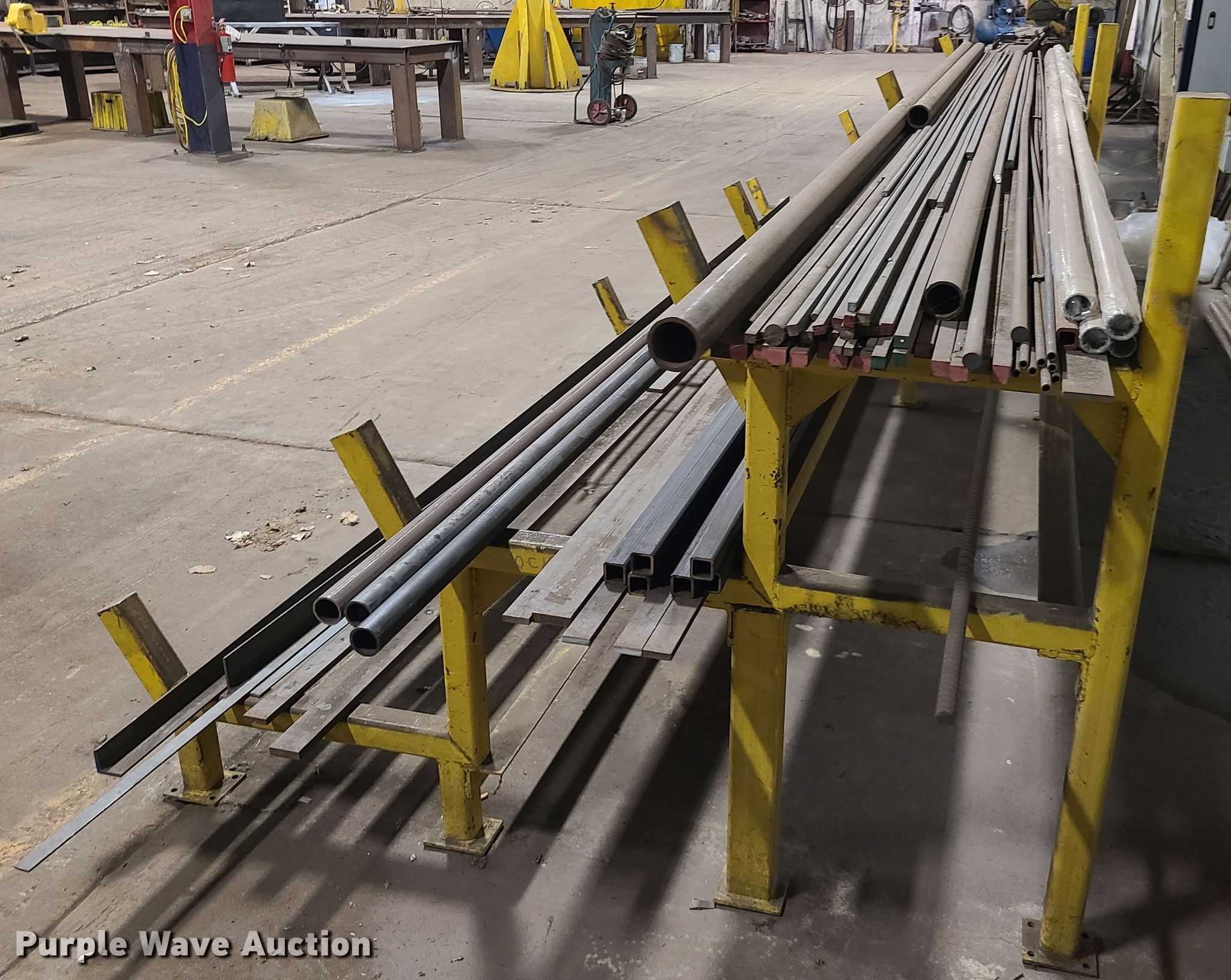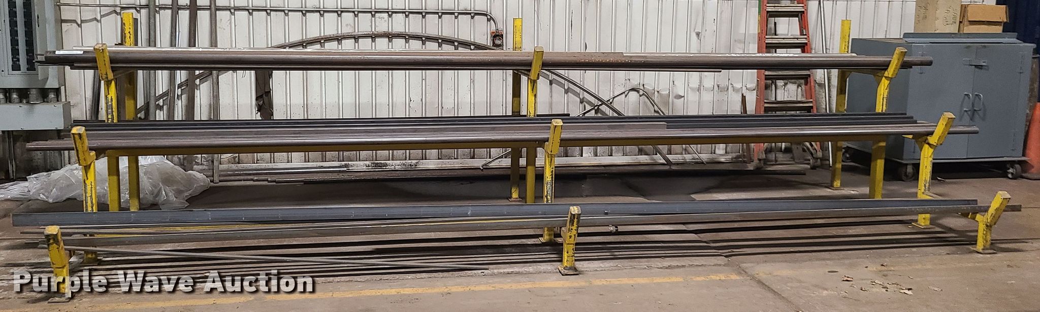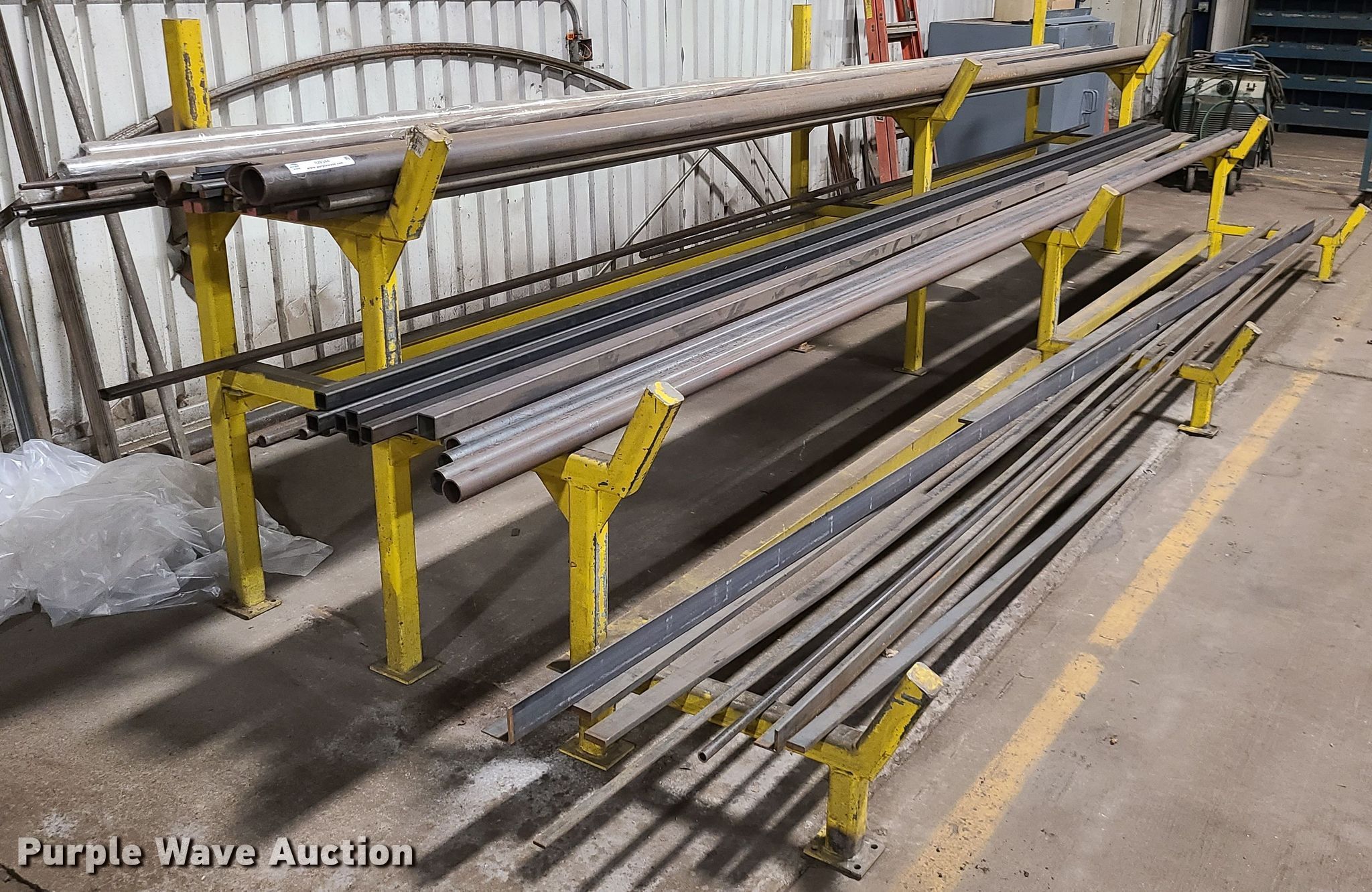 Purple Wave is selling a used Building Materials in Missouri. This item is a Building materials with the following: Pipe, Bar stock, Square tubing, Angle iron, 19'L x 6'D x 57"H storage rack