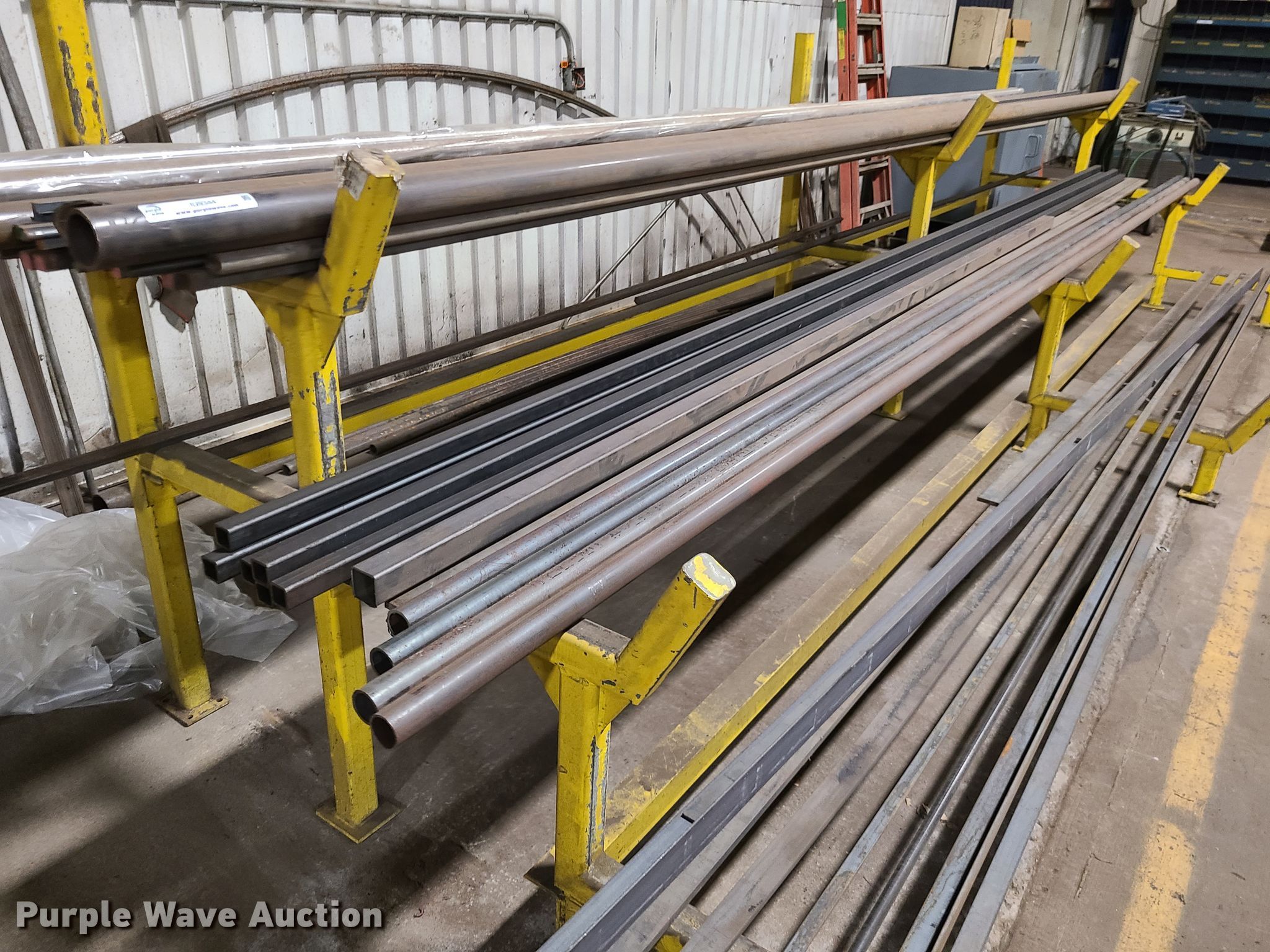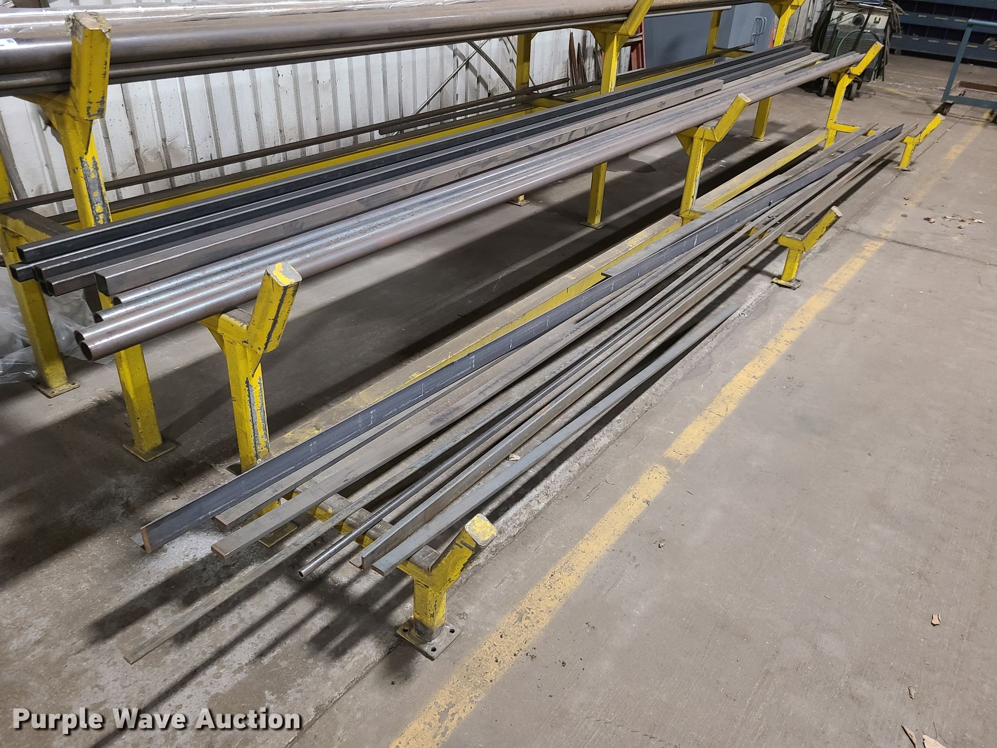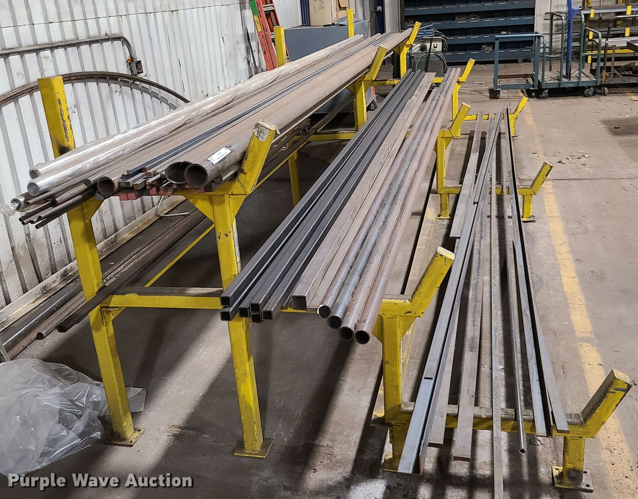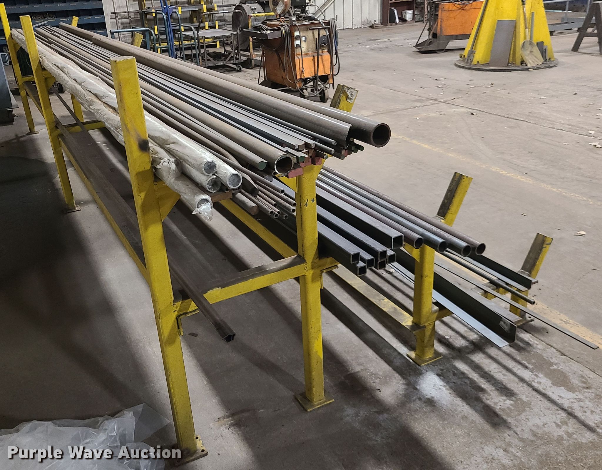 Purple Wave is selling a used Building Materials in Missouri. This item is a Building materials with the following: Pipe, Bar stock, Square tubing, Angle iron, 19'L x 6'D x 57"H storage rack