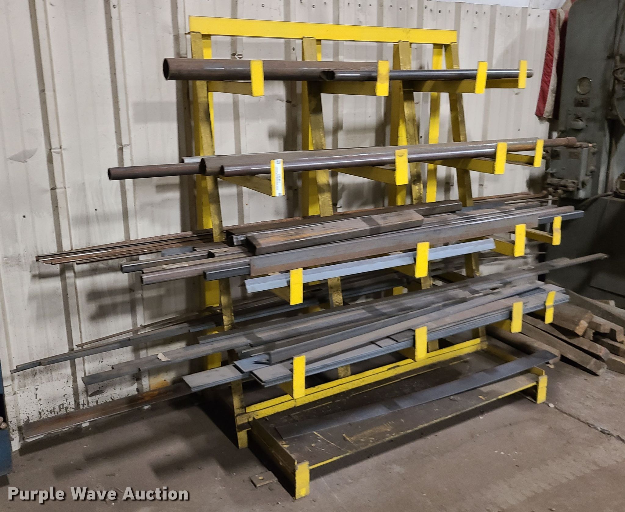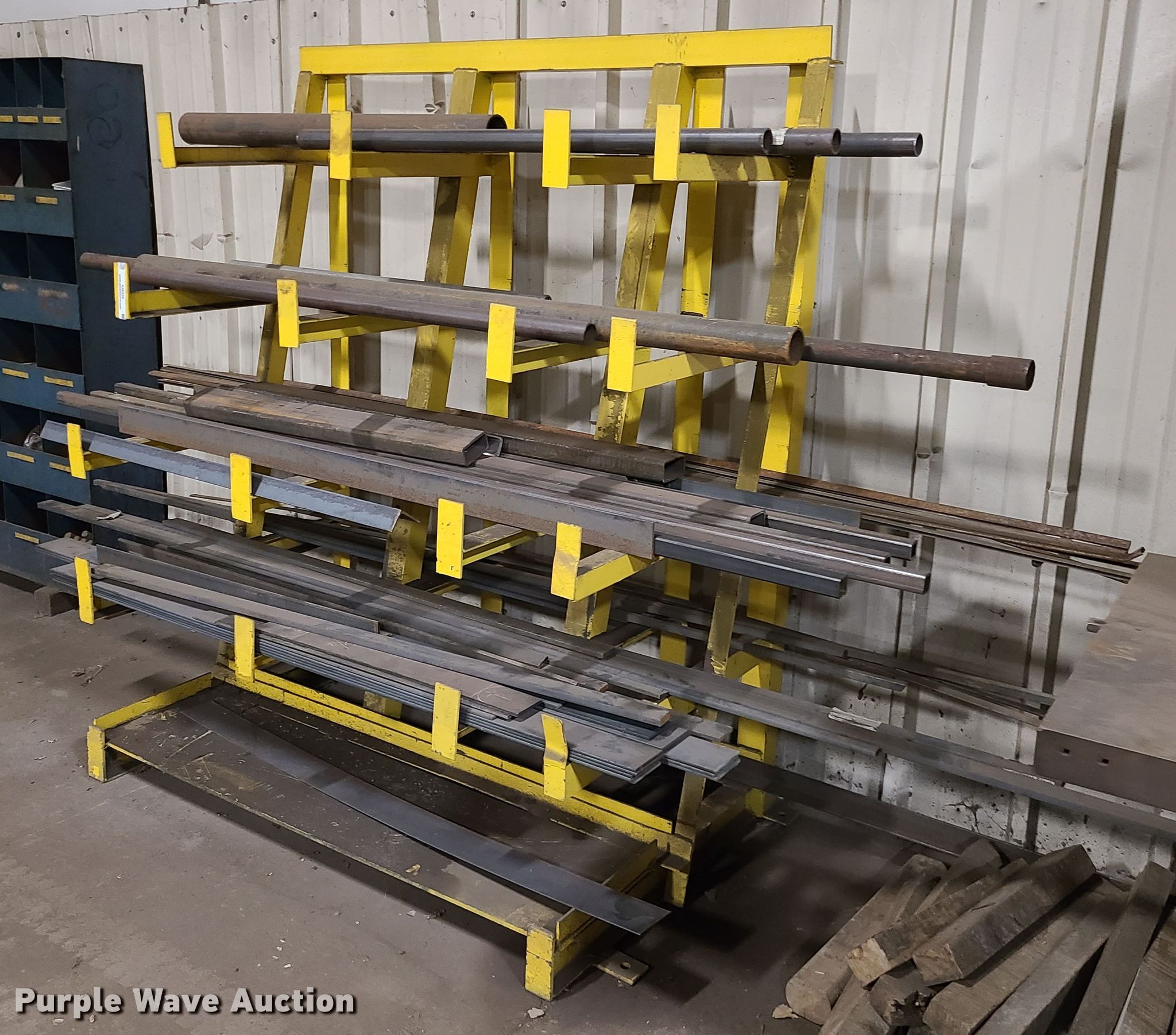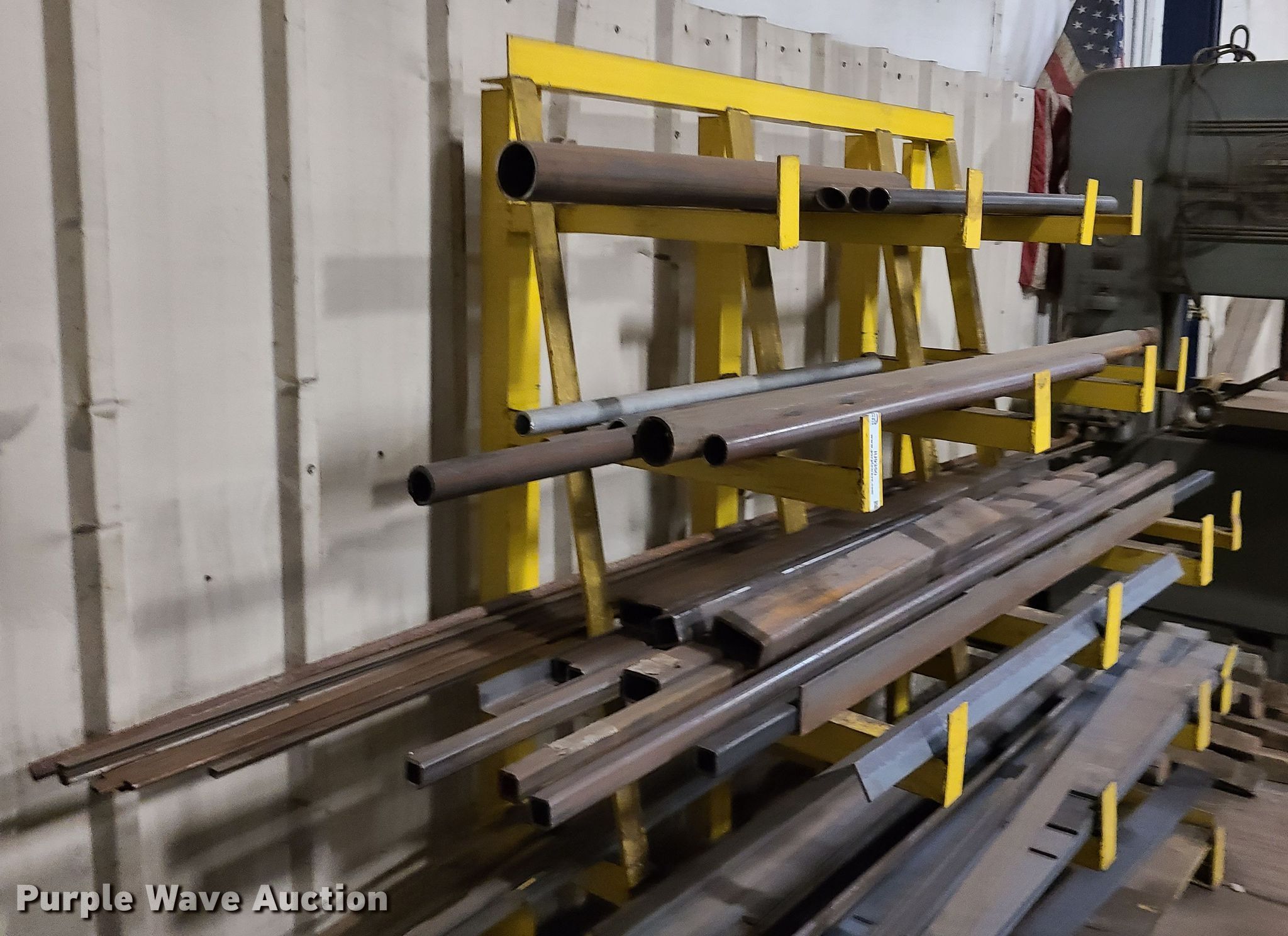 Purple Wave is selling a used Building Materials in Missouri. This item is a Building materials with the following: Flat bar, Pipe, Angle iron, Square tubing, 5'W x 40"D x 76"H storage rack