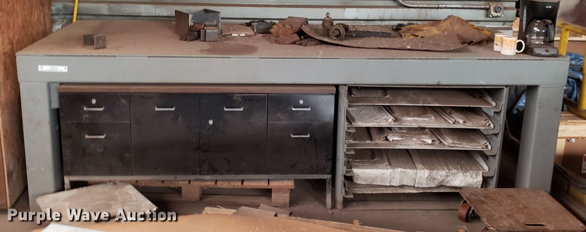 Purple Wave is selling a used Furniture in Missouri. This item is a Steel table with the following: 4' x 10' x 37"H