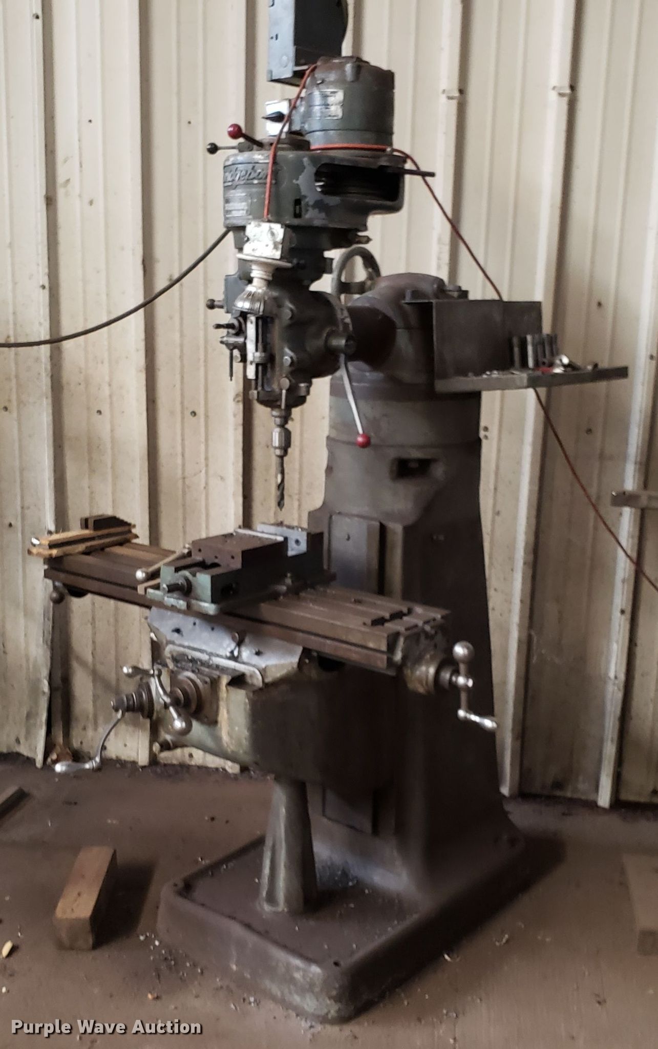 Purple Wave is selling a used Tools in Missouri. This item is a Tools with the following: Chicago drill press, 120V, Powercat I drill press, 50 amps maximum, Bridgeport mill, 50 amps maximum, Bit organizer
