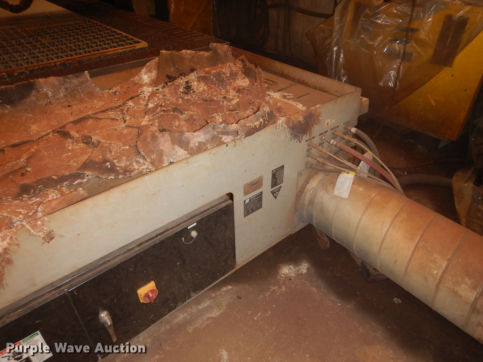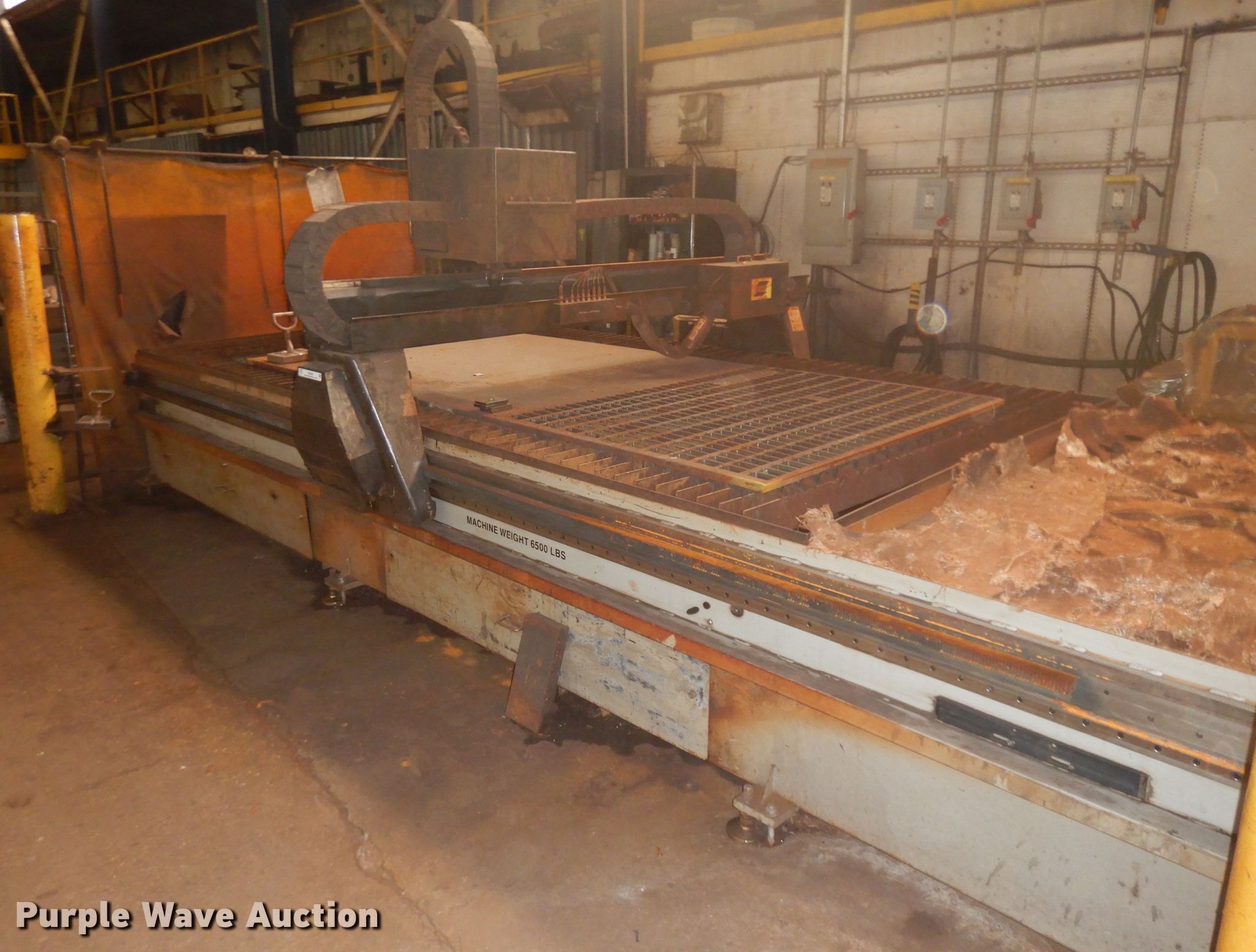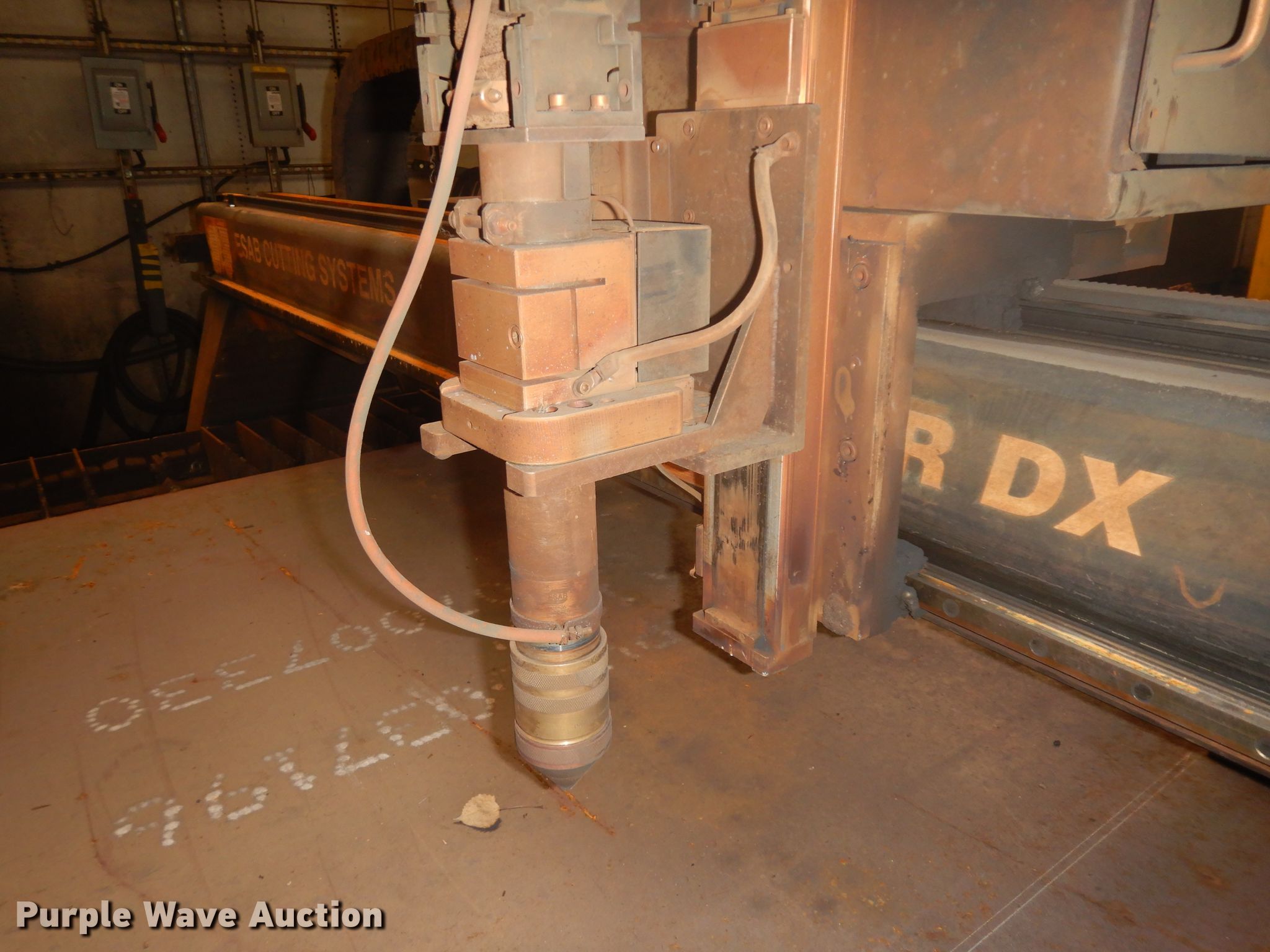 Purple Wave is selling a used Machine Shop Tools and Equip. in Missouri. This item is a 2010 Esab Acer DX-6 plasma table with the following: 440V, Single phase, 10 amps full load, Down draft table, Great Lakes Air RoboVent PA-2M-6000 welding cell dust collector, 480V, Three phase, 14 amps, 144"L x 72"W bed, 1.5" thick steel maximum capacity, Esab power uunit, Control board, Stand, Serial 0560947465