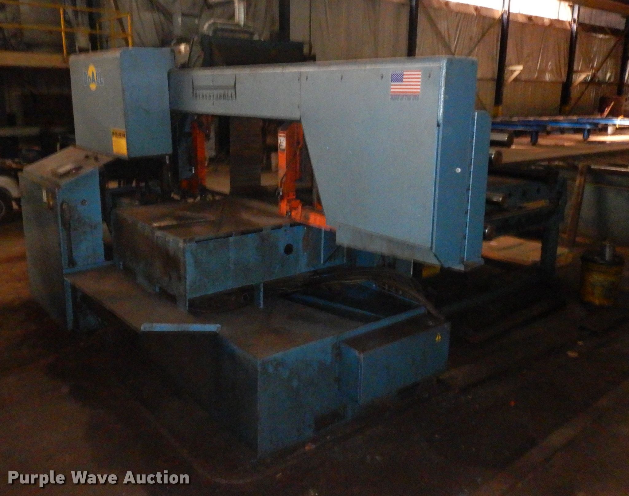 Purple Wave is selling a used Tools in Missouri. This item is a Do-All metal bandsaw with the following: 480V, Three phase, 28.8 amp full load, Hydraulic feed, Hydraulic jaw, Lubrication system, (5) 10'L roller conveyors, Work table