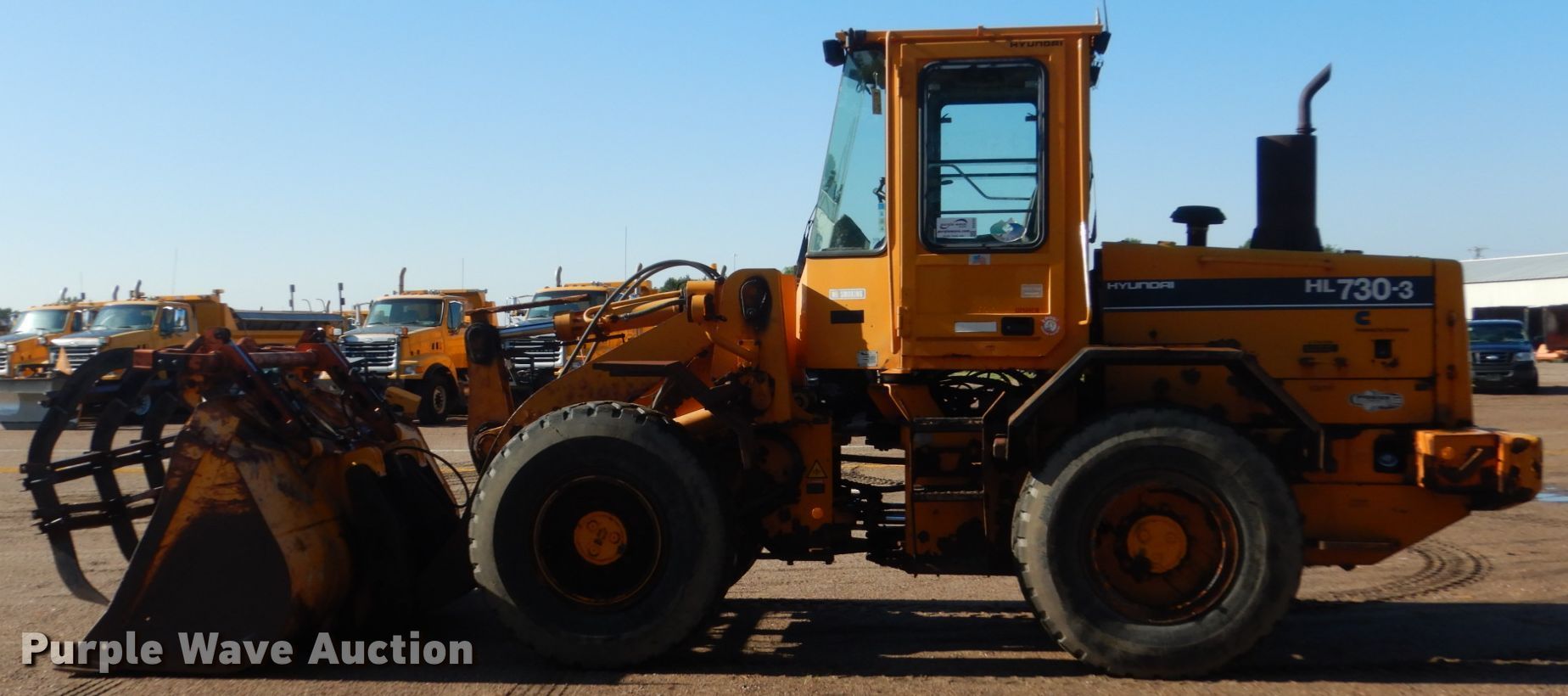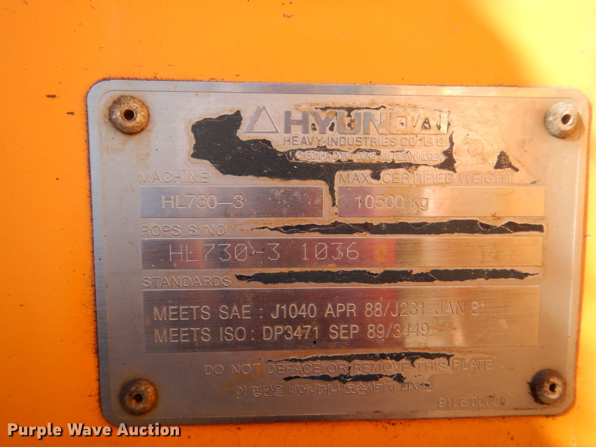 Purple Wave is selling a used Wheel Loader in South Dakota. This item is a Hyundai HL730-3 wheel loader with the following: 6,863 hours on meter, Serial: 801HG11036, Unit #: ED972