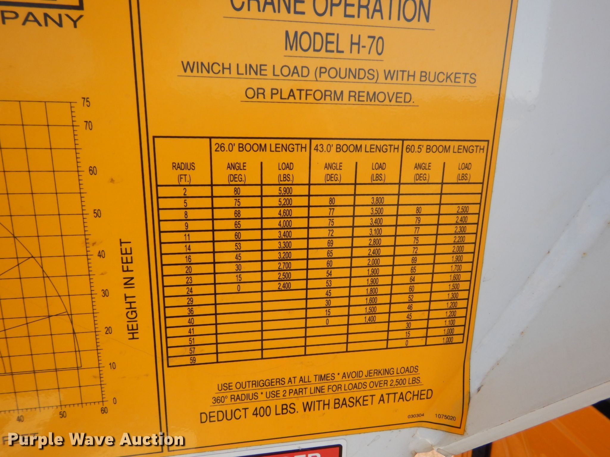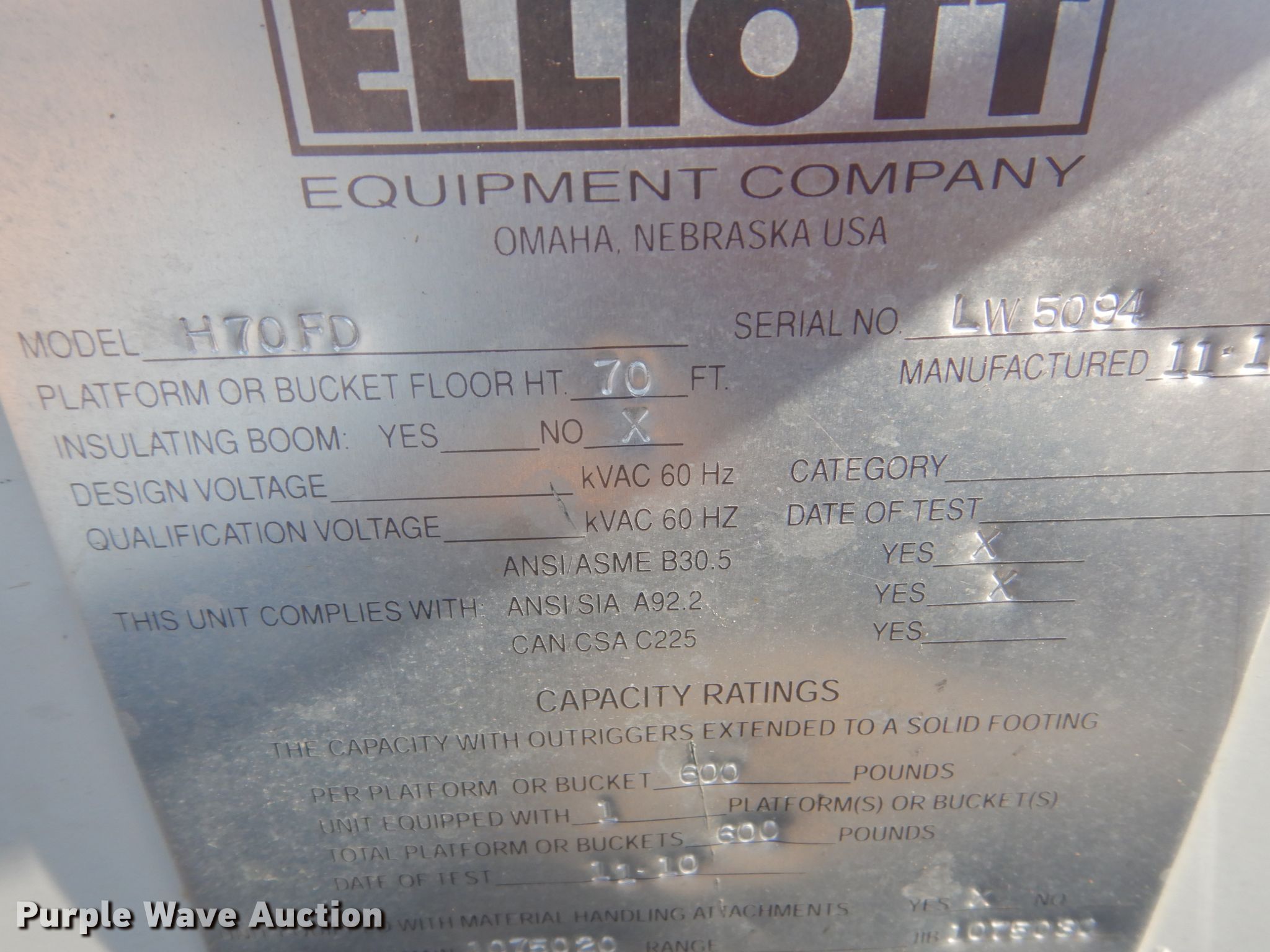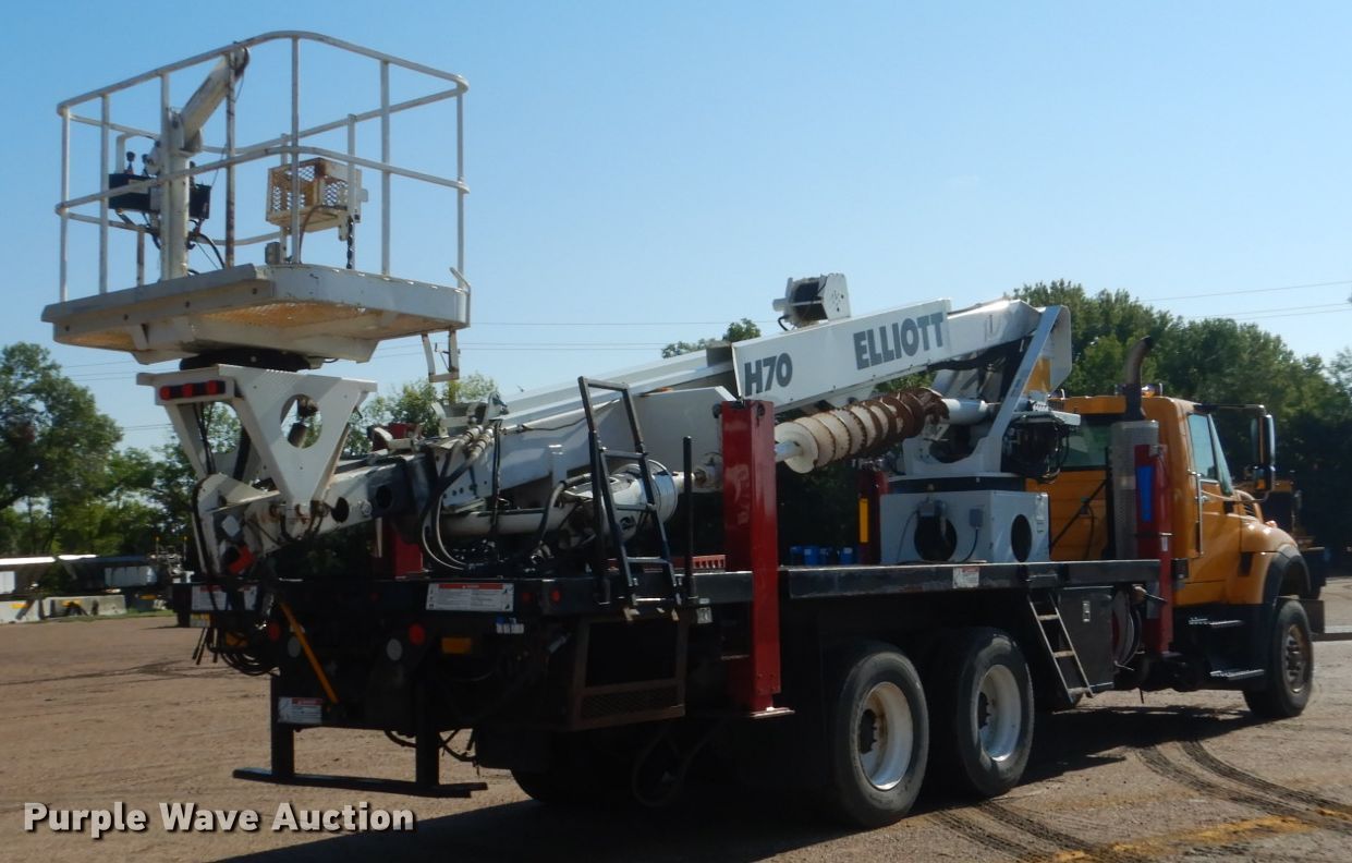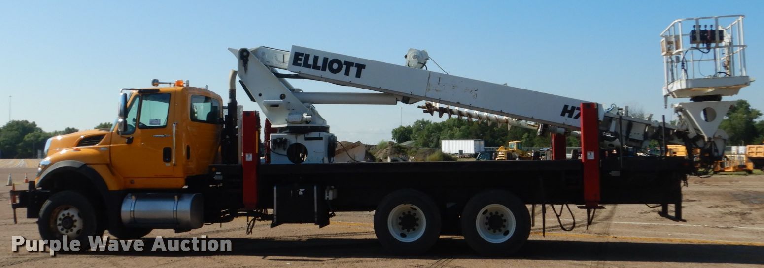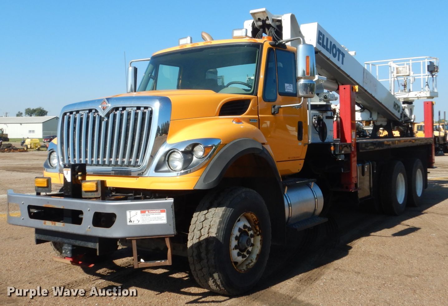 2011 International WorkStar 7500 bucket truck. 132,448 miles on odometer, Engine hours: 5,725, Unit #: DN608. Engine International Maxxforce 10, Cylinders: 6, Fuel type: Diesel. Transmission Automatic. Chassis Axles: Tandem, Suspension: Walking beam, Brakes: Air, PTO, GVWR: 58,000 lbs. Interior AC, Heat, Heated mirrors, Power windows, Power locks, Cruise control. Operational Bed 24' x 98" W, Boom 2010 Elliott H70FD, Serial: LW5094, Boom length: 26', Maximum lift capacity: 5,900 lbs, Maximum lift height: 70', Boom type: Telescopic, Man basket, Boom controls Ground, Platform/ basket, Auger Diameter: 12", Certification valid through: 03/2021. Tires Front: 385/65R22.5, Rear: 11R22.5. Notes Dash warning indicator: Check engine, Possible oil residue in coolant. South Dakota title. 1HTWPAZT3BJ376104. State of South Dakota Property Management. 1300 S Ohlman St. Mitchell, SD 57301