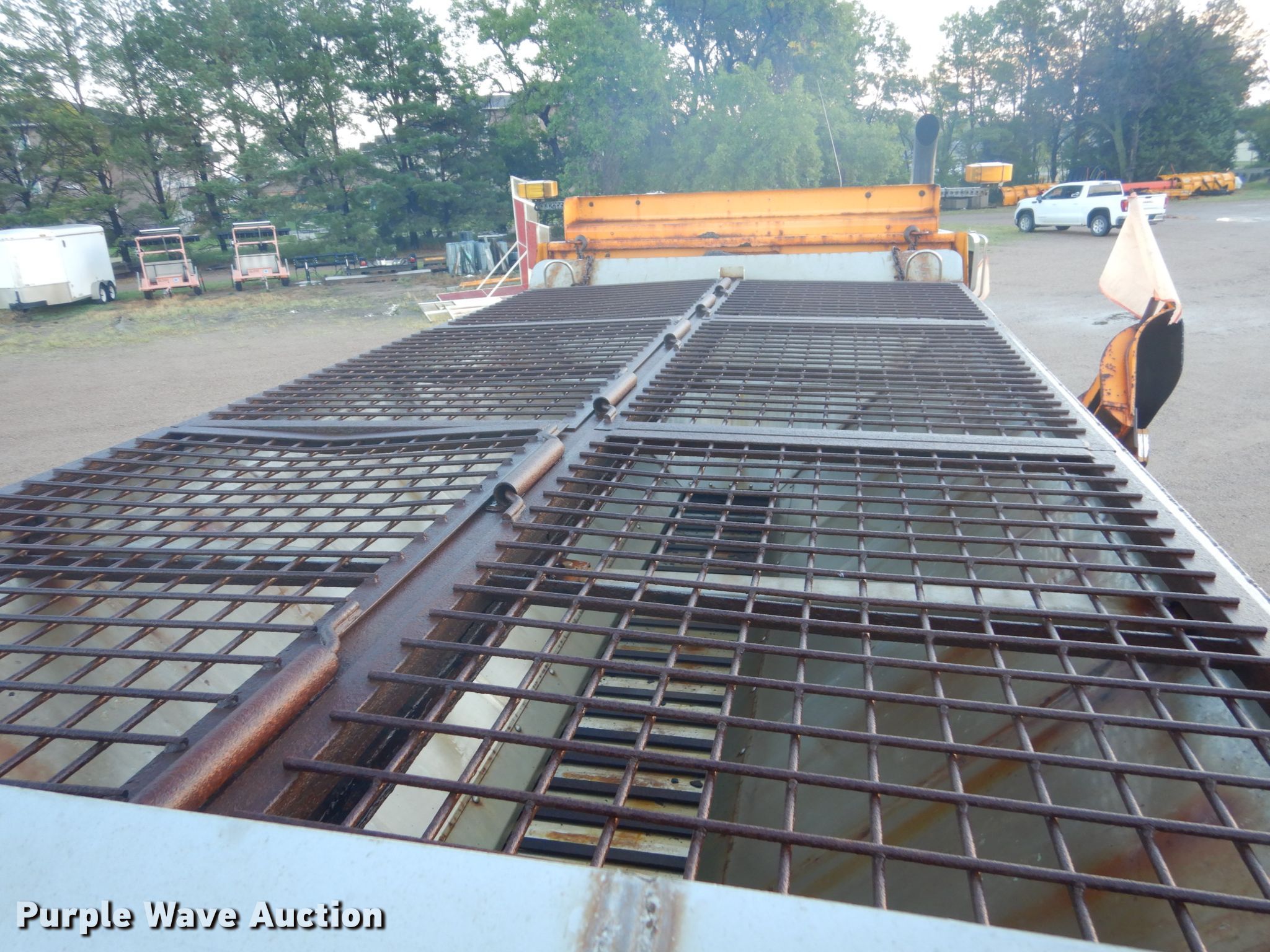 2004 Sterling dump truck. 147,176 miles on odometer, Engine hours: 7,081, Unit #: BT090. Engine Caterpillar C13, Cylinders: 6, Fuel type: Diesel, Engine brake. Transmission RoadRanger RT/RTO-8LL, Manual, Speed: 10. Chassis Double frame, Axles: Tandem, Differential lock: Inter-axle, Suspension: Spring, Brakes: Air, Front mount PTO. Interior AC, Heat, Heated mirrors, Power windows, Cruise control. Operational Dump bed 15' L x 96" W, Side height: 34", Bed type: Steel, Bed vibrator, Ram: Single , End gate: Air operated, Spreader Henderson, Spray system, Plow Width: 144", Wing plow Width: 96". Tires Front: 385/65R22.5, Rear: 11R22.5. South Dakota title. 2FZHAZDEX4AN28930. State of South Dakota Property Management. 1300 S Ohlman St. Mitchell, SD 57301