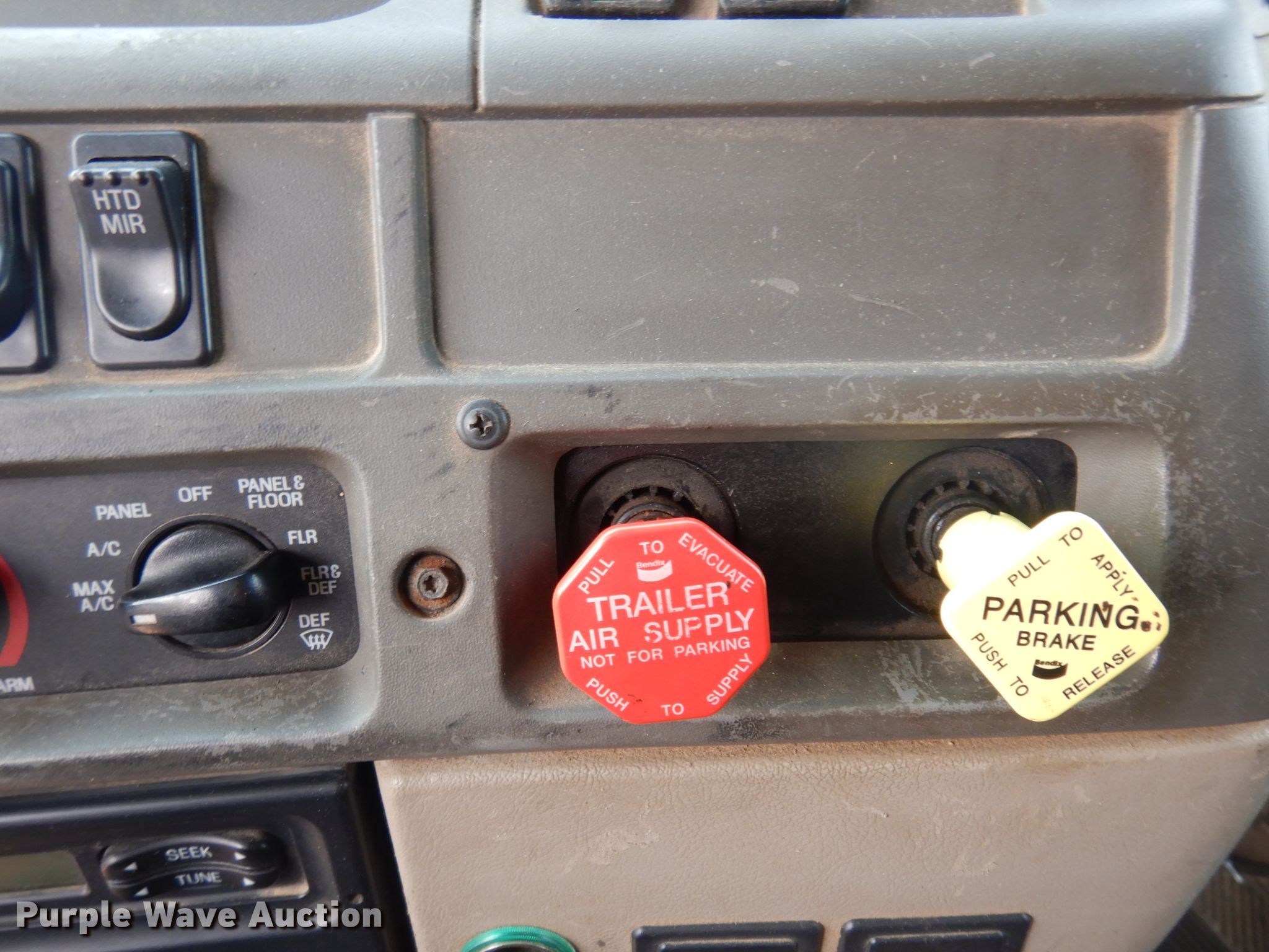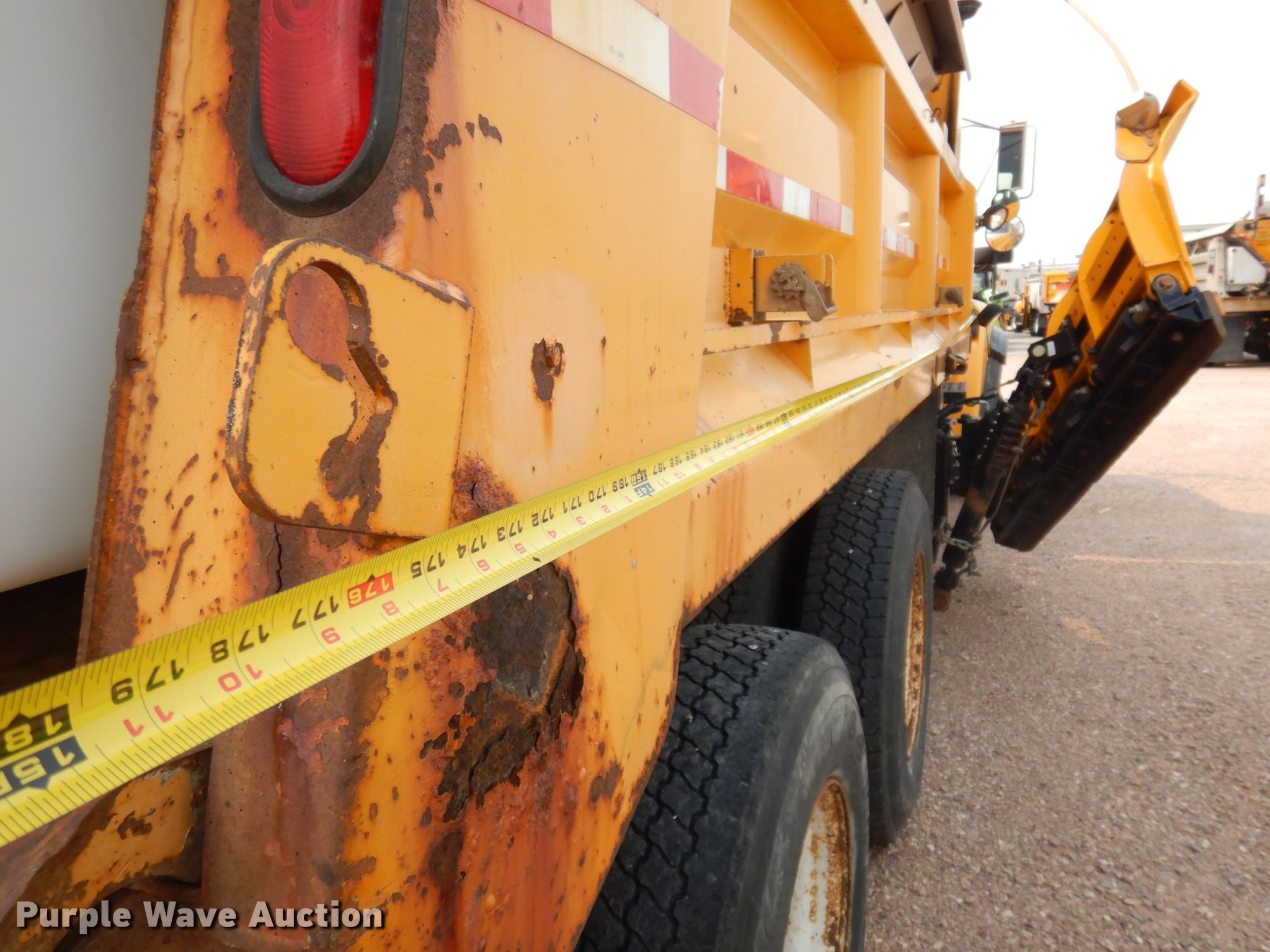 2001 Sterling LT9500 dump truck. 130,134 miles on odometer, Unit #: DT032. Engine Caterpillar C-12, Serial: 2KS55487, Cylinders: 6, Fuel type: Diesel, Engine brake. Transmission Roadranger RT/RTO-8LL, Manual, Speed: 10. Chassis Double frame, Axles: Tandem, Differential lock: Inter-axle, Suspension: Spring, Brakes: Air, Front mount PTO. Interior AC, Heat, Heated mirrors, Power windows, Cruise control. Operational Dump bed 15' L x 8' W, Side height: 3", Bed type: Steel, Spreader Henderson FSHx14/SD/800Gal, Wing plow Monroe, Width: 96". Tires Size: 385/65R22.5. South Dakota title. 2FZHAZAS61AH79520. 2300 Eglin St. Rapid City, SD 57703