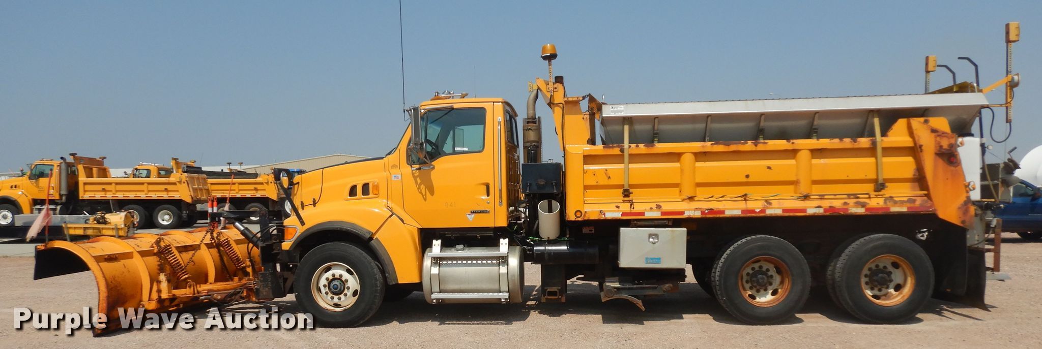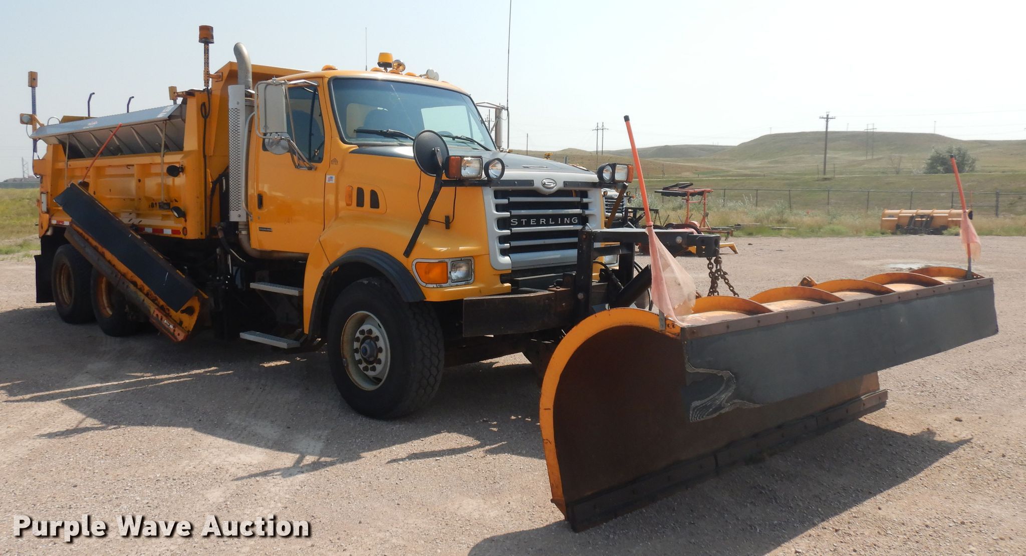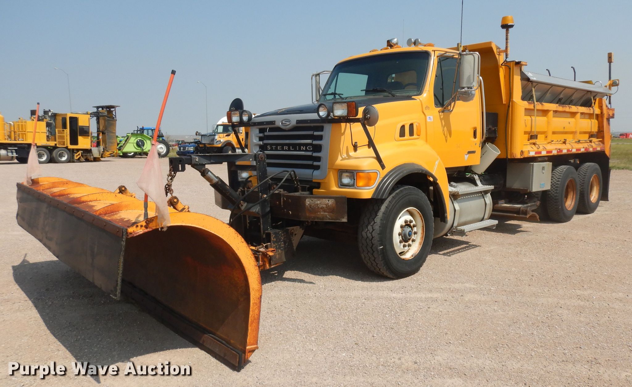 2002 Sterling LT9511 dump truck. 166,617 miles on odometer, Engine hours: 5,691, Unit #: DT041. Engine Caterpillar C12, Displacement: 12.0L, Cylinders: 6, Fuel type: Diesel. Transmission Manual, Speed: 10. Chassis Double frame, Axles: Tandem, Differential lock: Inter-axle, Suspension: Spring, Brakes: Air, PTO. Interior AC, Heat, Heated mirrors, Power windows, Cruise control. Operational Dump bed 15' L x 96" W, Side height: 33", Side board height: 22", Bed type: Steel, Ram: Single , End gate: Air operated, Spreader Henderson , Unit# RN602, Plow Henke , Unit# RD235, Width: 144", Monroe wing snow plow, Schmidt Wausau mid-mounted snow plow. Tires Front: 385/65R22.5, Rear: 11R22.5. South Dakota title. 2FZHAZAS52AK16716. 2300 Eglin St. Rapid City, SD 57703