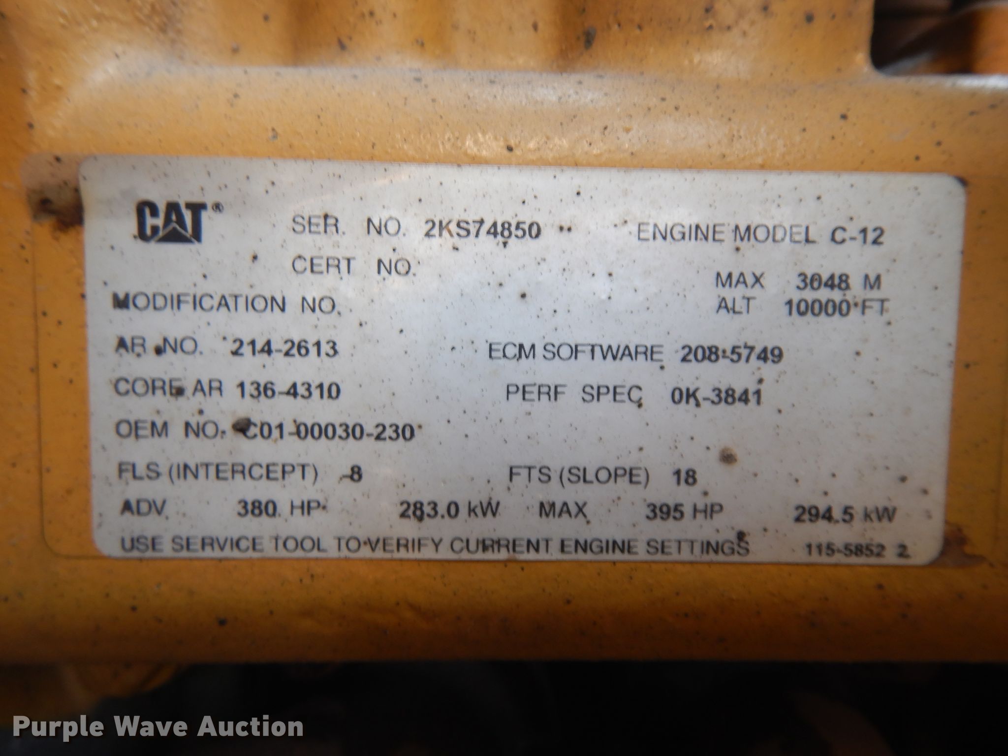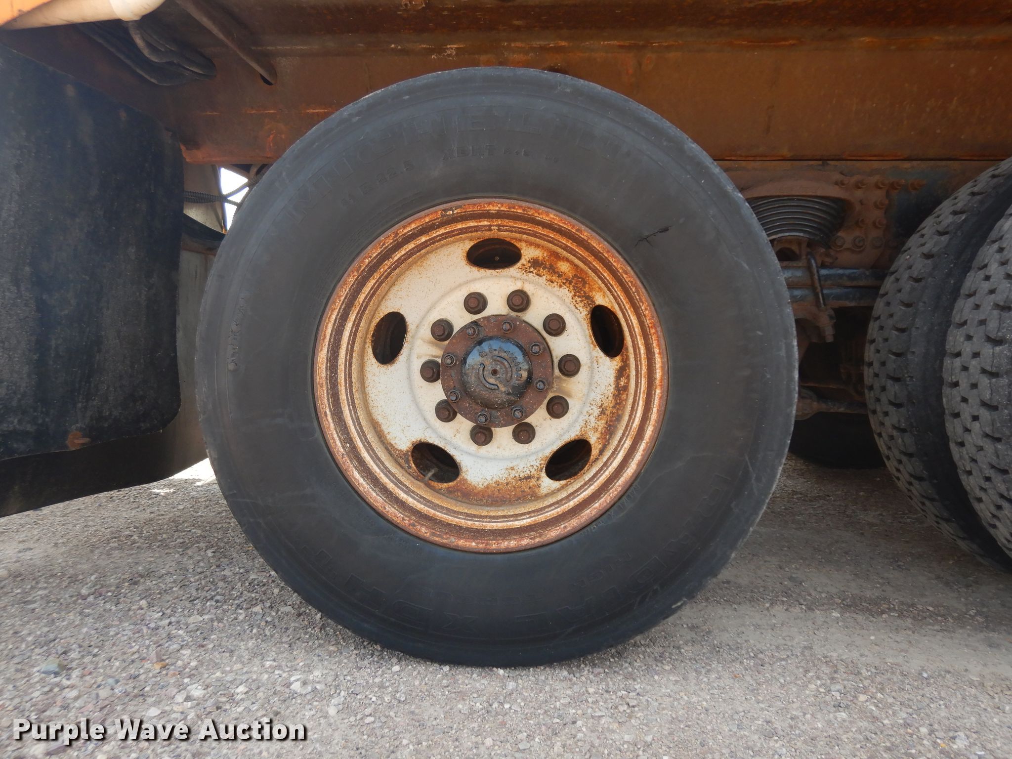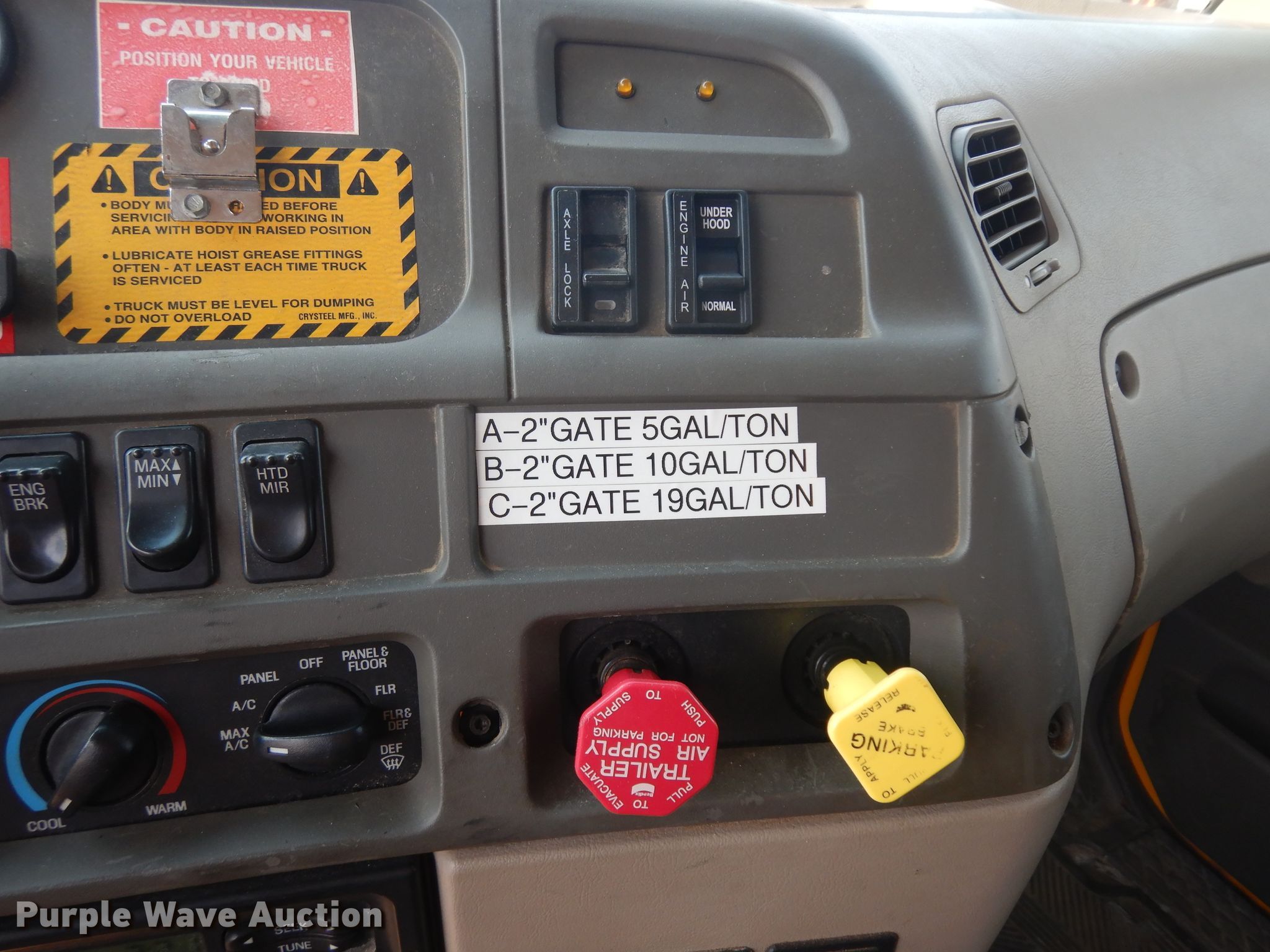 2002 Sterling LT9511 dump truck. 166,617 miles on odometer, Engine hours: 5,691, Unit #: DT041. Engine Caterpillar C12, Displacement: 12.0L, Cylinders: 6, Fuel type: Diesel. Transmission Manual, Speed: 10. Chassis Double frame, Axles: Tandem, Differential lock: Inter-axle, Suspension: Spring, Brakes: Air, PTO. Interior AC, Heat, Heated mirrors, Power windows, Cruise control. Operational Dump bed 15' L x 96" W, Side height: 33", Side board height: 22", Bed type: Steel, Ram: Single , End gate: Air operated, Spreader Henderson , Unit# RN602, Plow Henke , Unit# RD235, Width: 144", Monroe wing snow plow, Schmidt Wausau mid-mounted snow plow. Tires Front: 385/65R22.5, Rear: 11R22.5. South Dakota title. 2FZHAZAS52AK16716. 2300 Eglin St. Rapid City, SD 57703