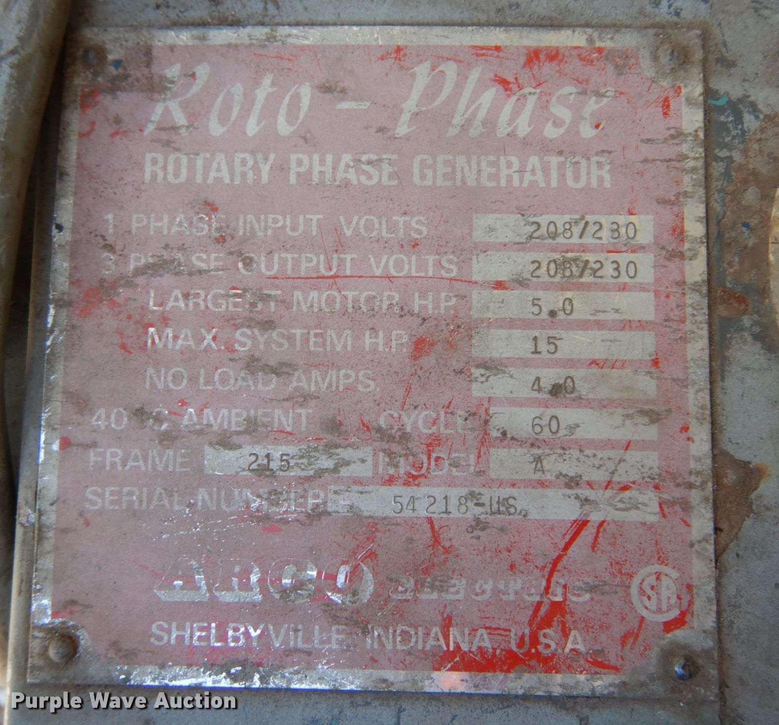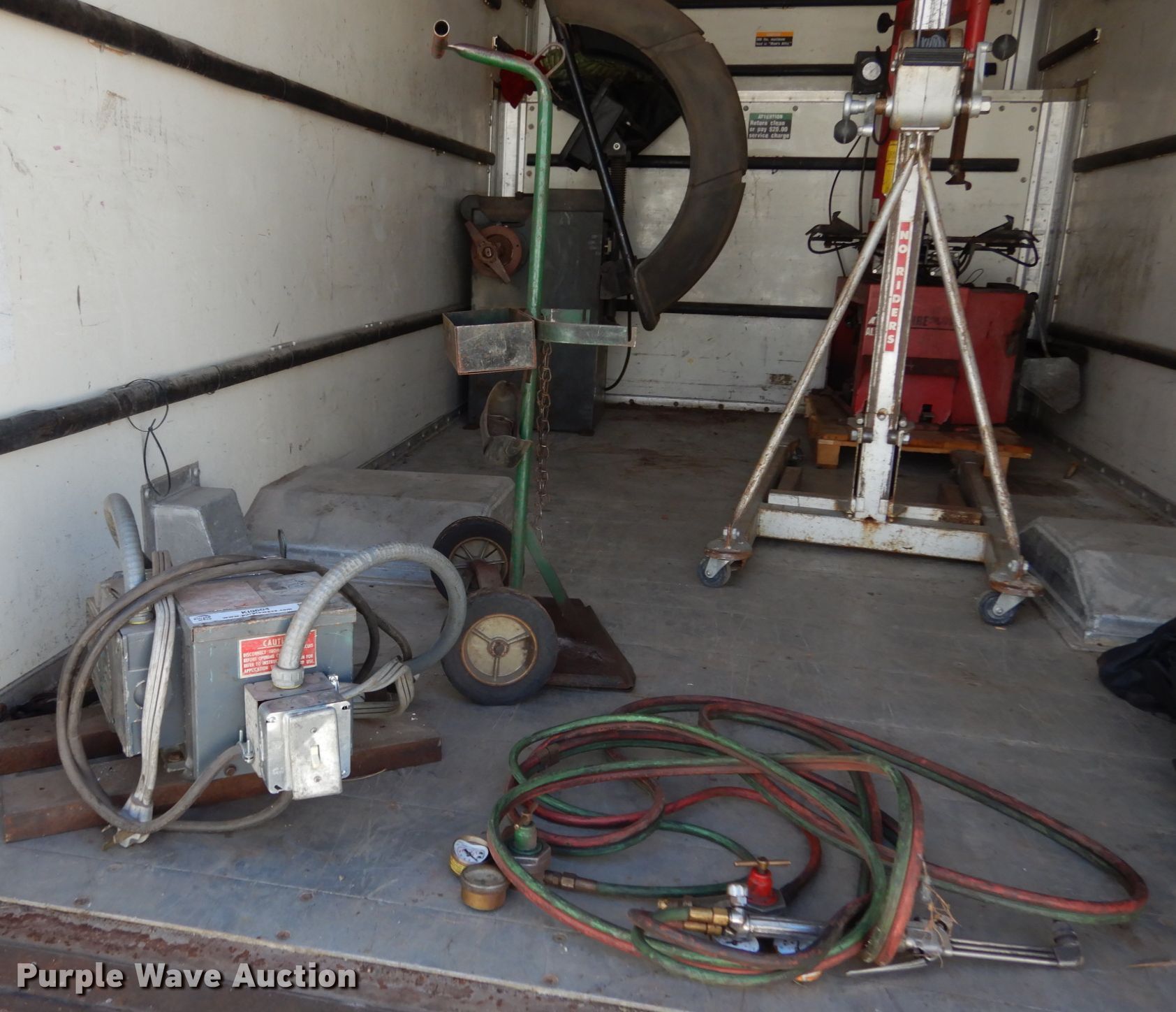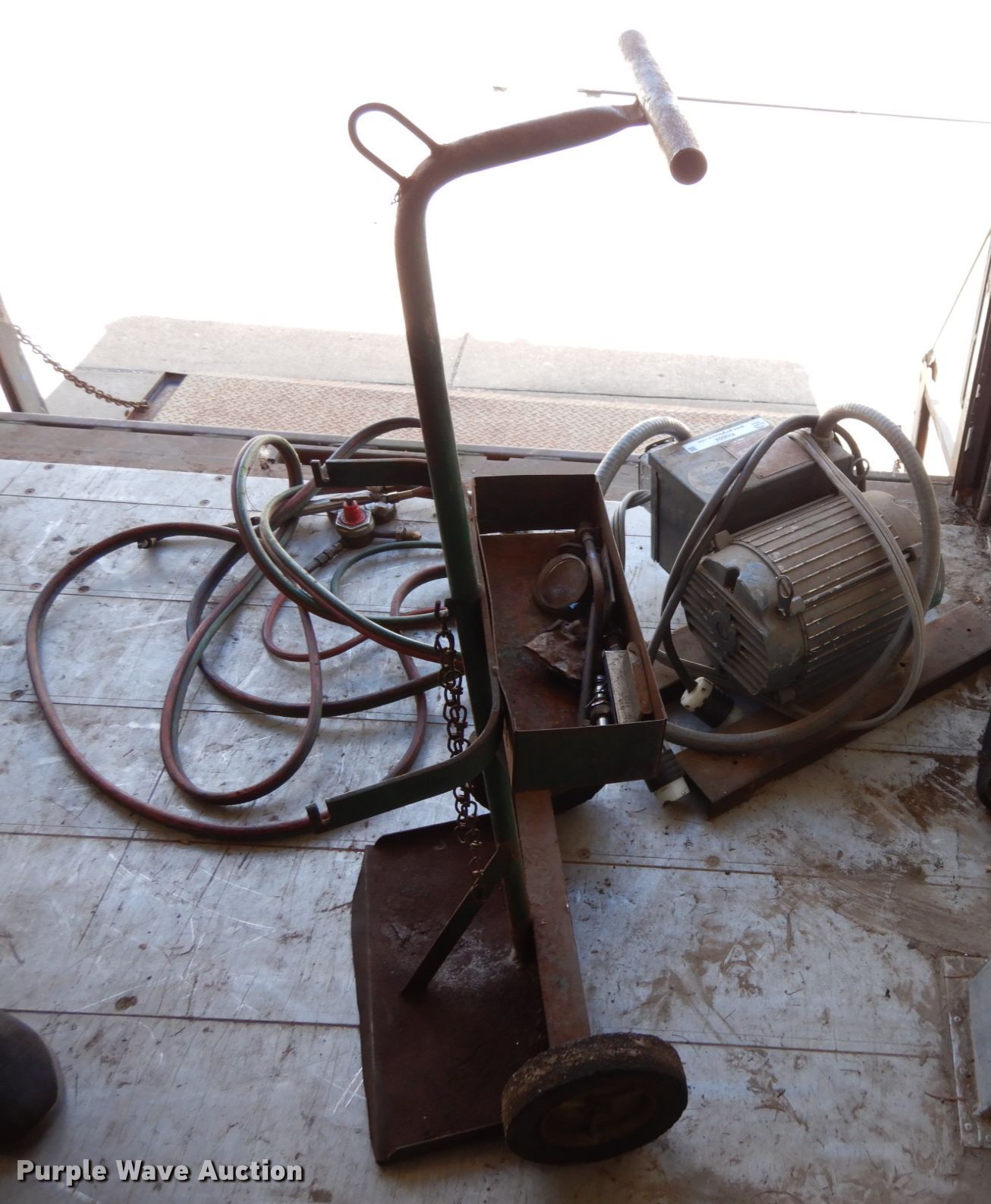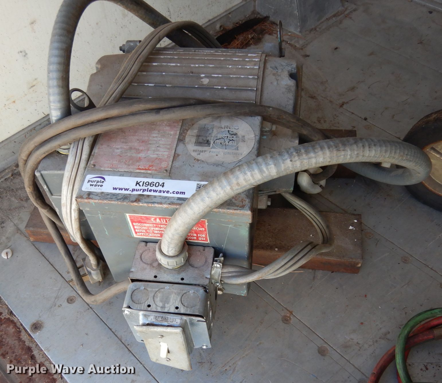 Purple Wave is selling a used Tools in Iowa. This item is a Generator and torch with the following: Serial: 54218-US, Roto-phase, Input volts 208/230 single phase, Output volts 208/230 three phase, Torch leads with gauges, Bottle cart