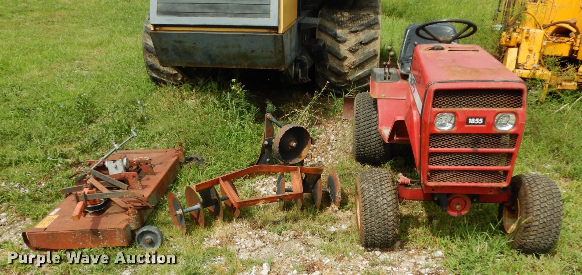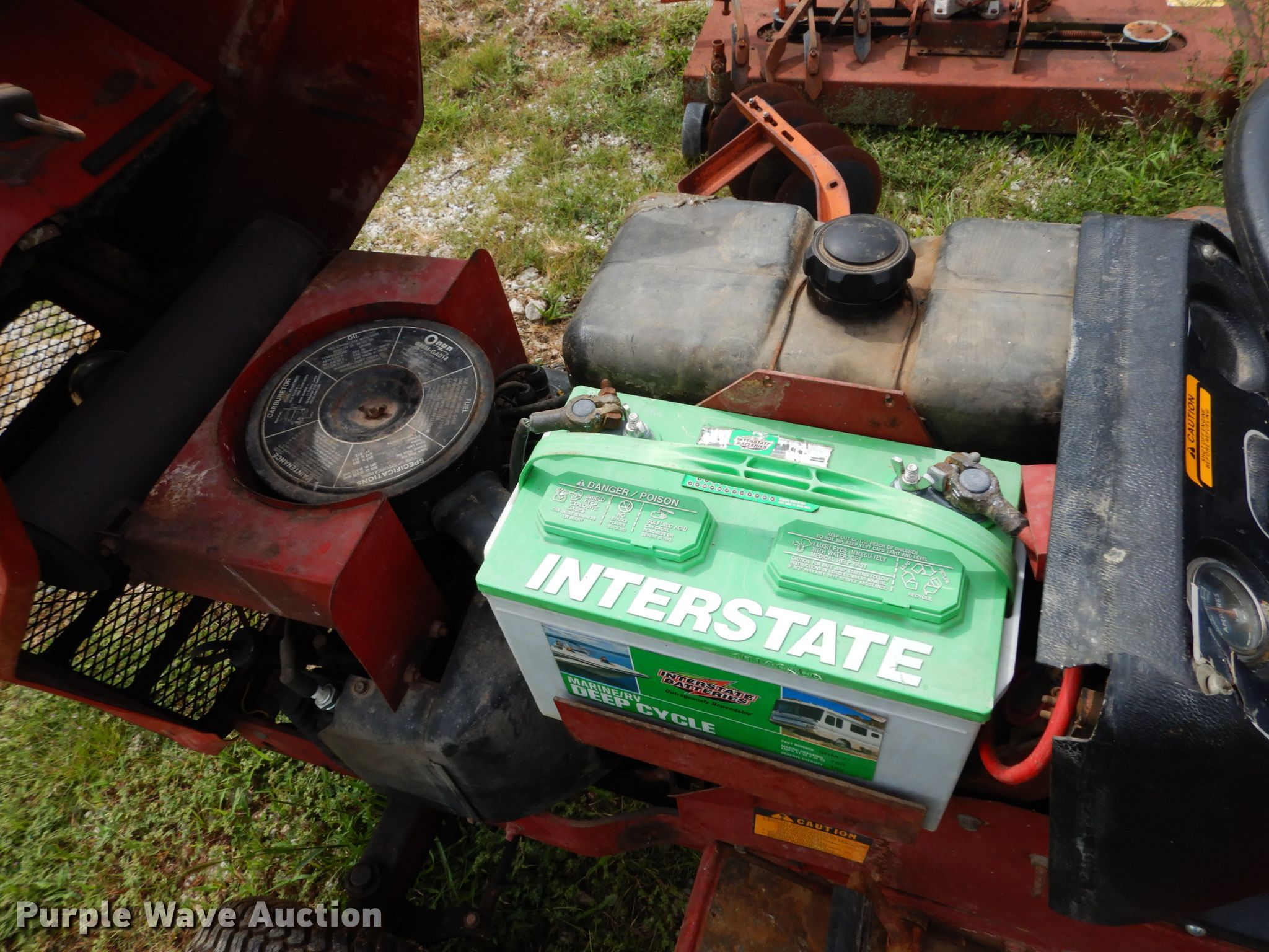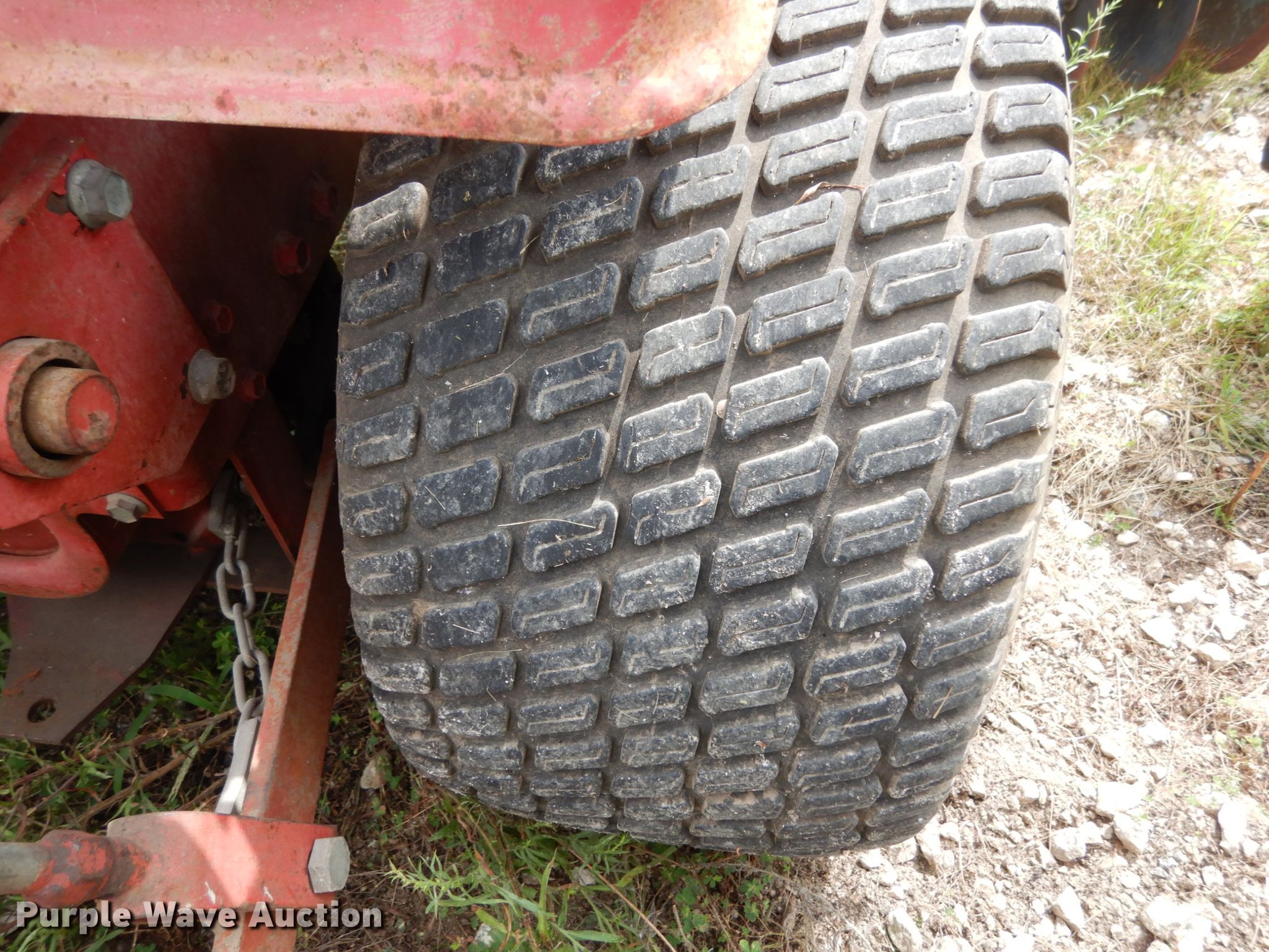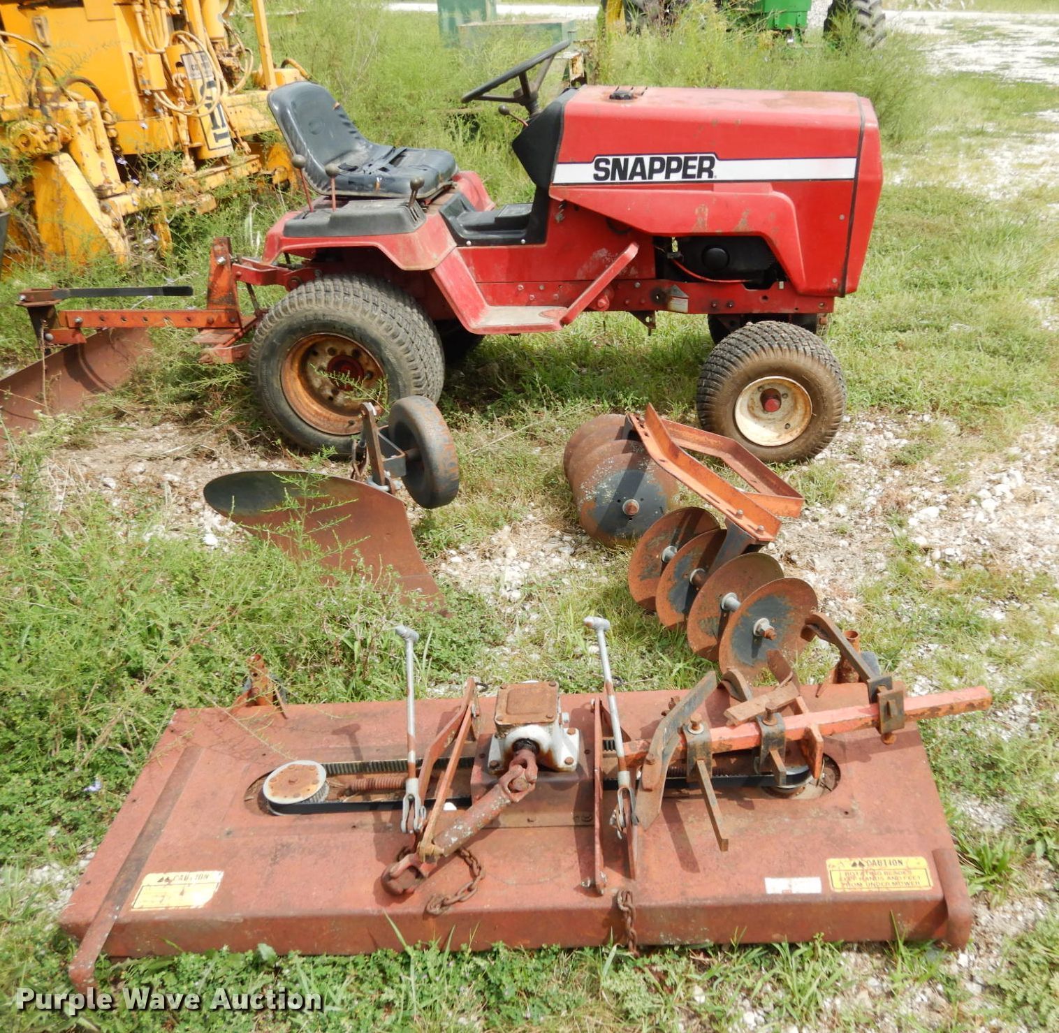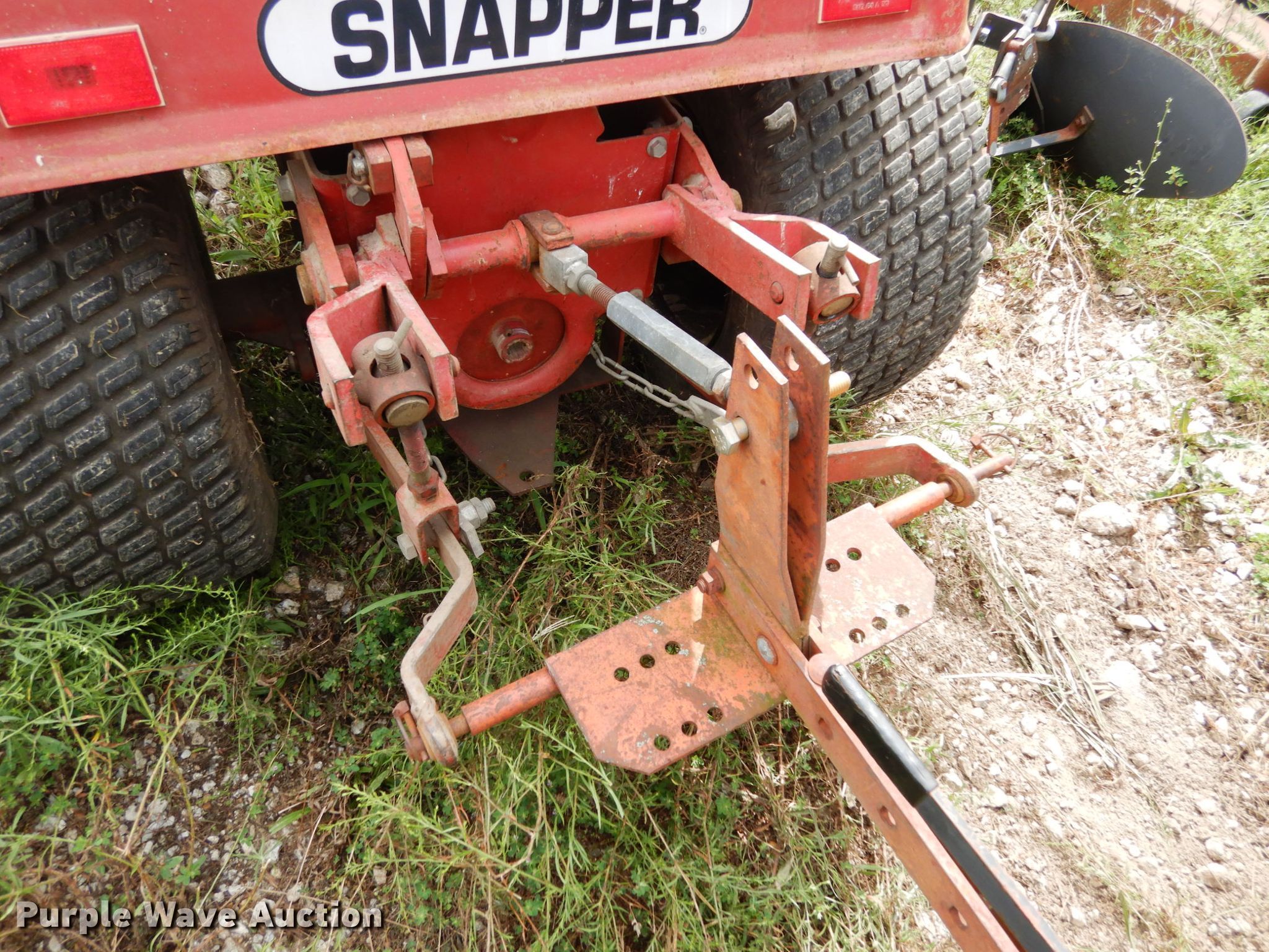 Snapper 1855A lawn mower. Cutting width: 57". Engine Onan, Cylinders: 2, Fuel type: Gas. Transmission Hydrostatic, Speed: 4. Chassis PTO. Operational Three point. Tires Front: 18x8.50-8, Rear: 24x12.00-12. Notes 43" blade, 43" disk Blade: 10", Spacing: 5", Bottom plow, Battery not included. Widel Construction. 5700 M Hwy. Blackwater, MO 65322
