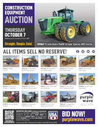 Equipment descriptions are based on our direct observation and information provided by our selling customer. All information is intended to be as accurate as possible. However, we recommend customers inspect prior to bidding. Purple Wave listings are not intended to be substitutions for inspection. The details provided may differ on equipment based on information provided by the consignor. An error or omission in the listing will not change the results of the bid. It is the responsibility of the buyer to conduct any inspection and examination necessary to satisfy him of all material facts before placing a bid. Some of the limitations of Purple Wave listings include: