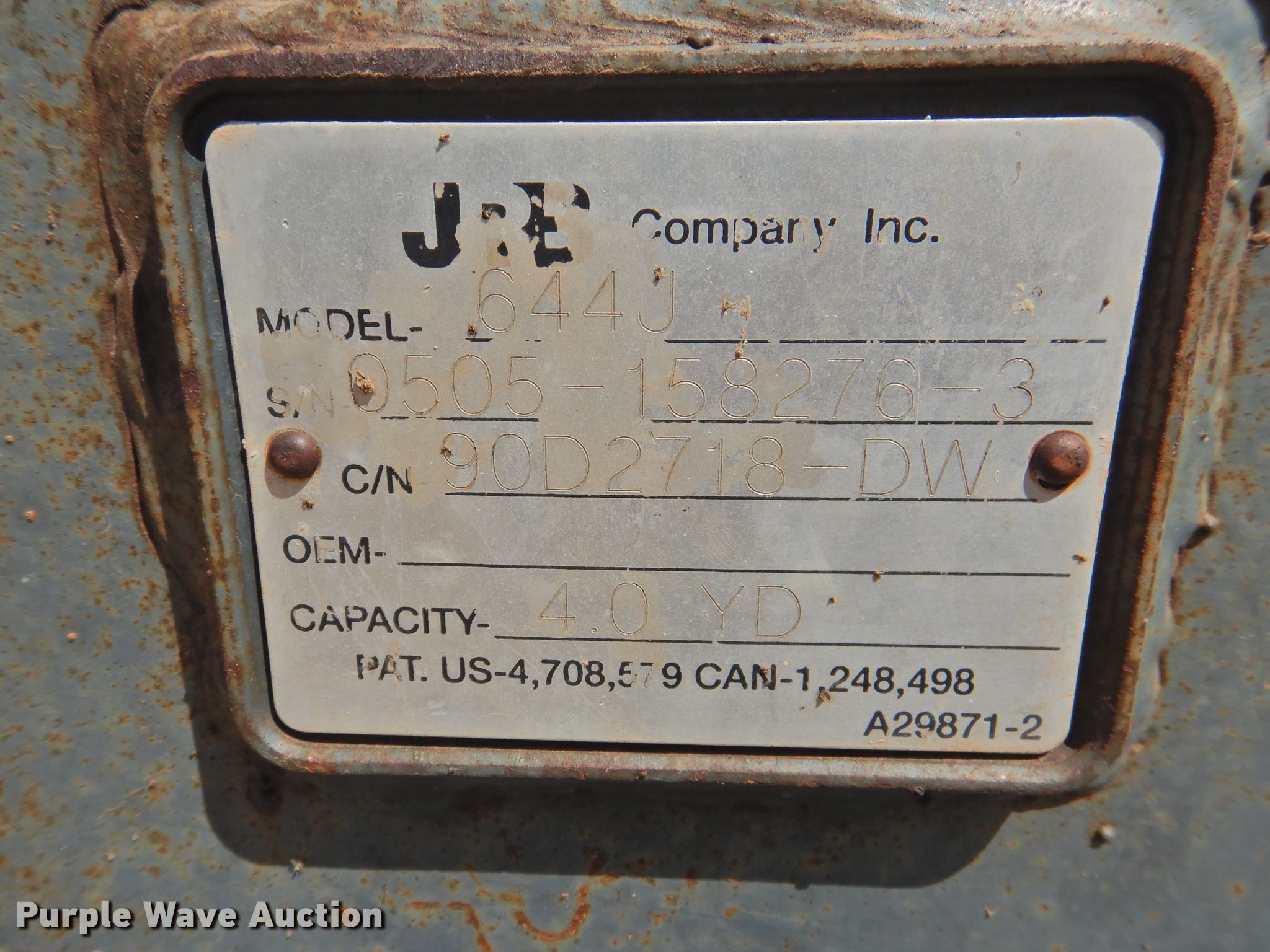 Purple Wave is selling a used Bucket or Loader Attach. in Texas. This item is a JRB 644J wheel loader bucket with the following: 4 cu.yd. capacity, Serial: 0505-158276, Removed from John Deere 644J