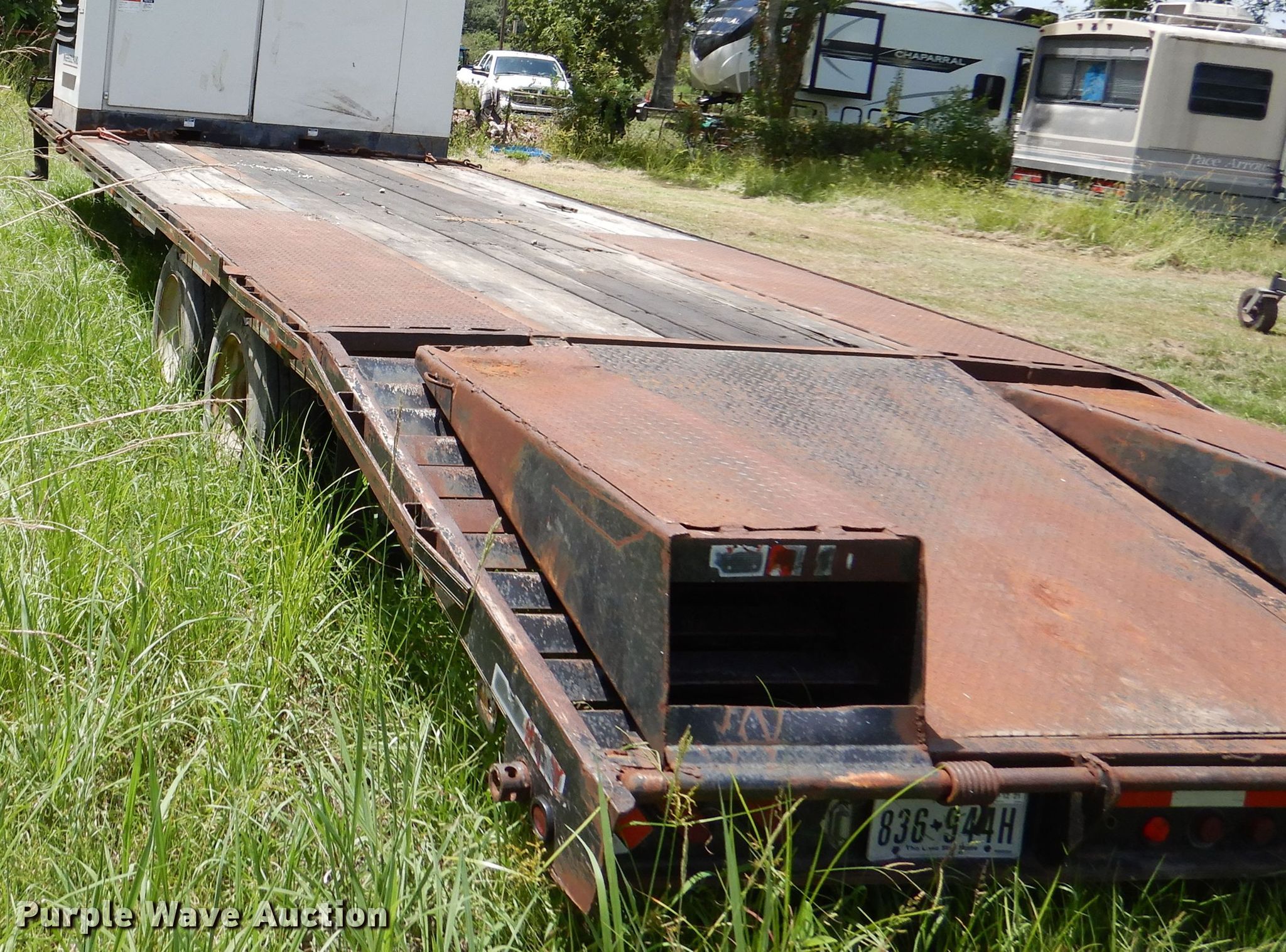 Purple Wave is selling a used Equip. Trailer in Louisiana. This item is a 2007 Hefty equipment trailer with the following: Overall: 39' L x 8' 6" W, Deck: 25' L x 8' 1" W, Tail length: 5' 6", Ramps: Manual, Length: 5'