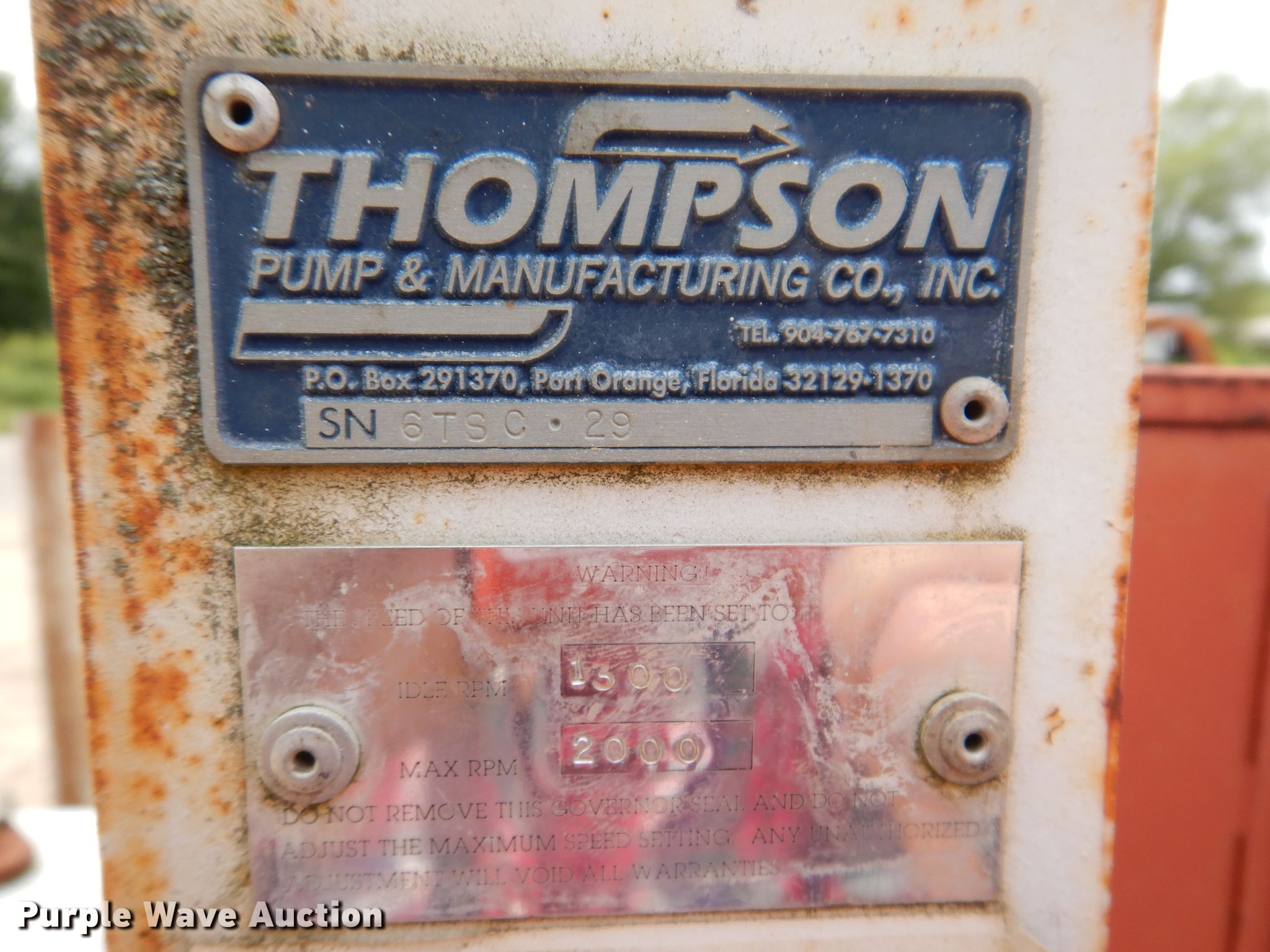 Purple Wave is selling a used Pump in Iowa. This item is a Water pump with the following: John Deere four cylinder diesel engine, 6" inlet, 4" discharge, Pintle hitch, Single axle, Tires: ST225/75R15, Serial: 6TSC-29
