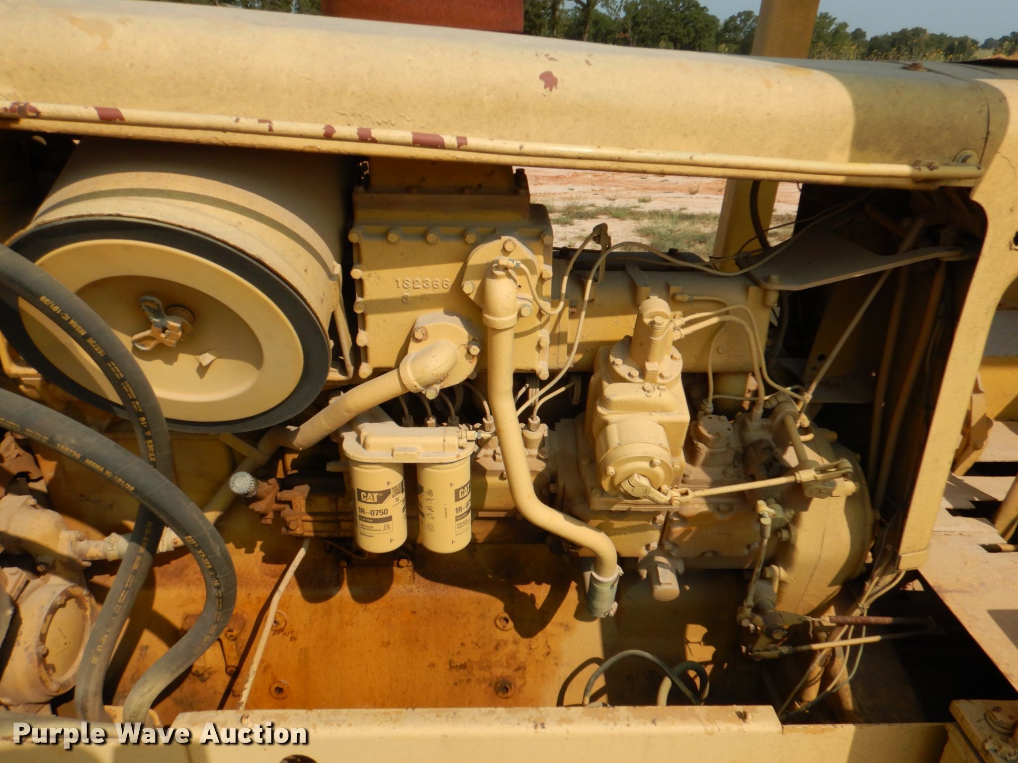 1971 Caterpillar D9G dozer. Unknown hours on meter, Serial: 66A9881. Engine Caterpillar D353, Cylinders: 6, Fuel type: Diesel. Transmission Powershift, 3F - 3R. Operators station Canopy, Steering: Clutch brake. Operational Rear drawbar, Dozer blade Type: U, Single-tilt, Width: 14' 10" W. Tracks Width: 27", Grouser pads: Single. Notes Engine issues, misfire, No battery. Belt Construction, LLC. 4740 US Highway 70 Hwy. Ardmore, OK 73401