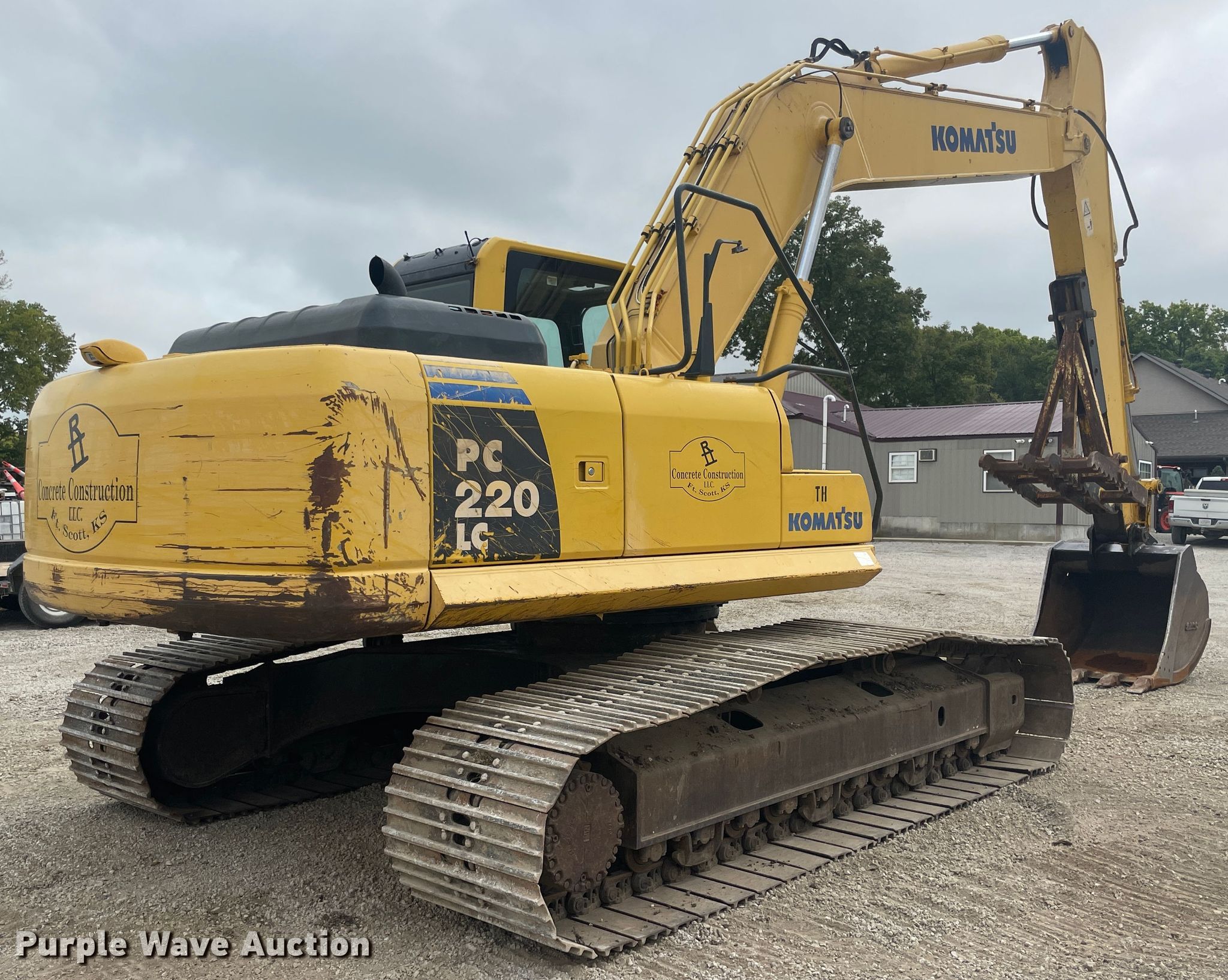 2010 Komatsu PC220LC-10 excavator. 9,945 hours on meter, Serial: 1KHTPC181K56A89526. Engine Komatsu, Cylinders: 6, Fuel type: Diesel. Transmission Hydrostatic. Operators station EROPS AC, Heat. Operational Boom Standard, Stick Stick length: 10', Thumb: Manual, Bucket Width: 46", Cutting edge: Weld on, Teeth: 5. Tracks Width: 31", Steel, Grouser pads: Triple. RII Concrete Construction. 2622 Limestone Rd. Fort Scott, KS 66701