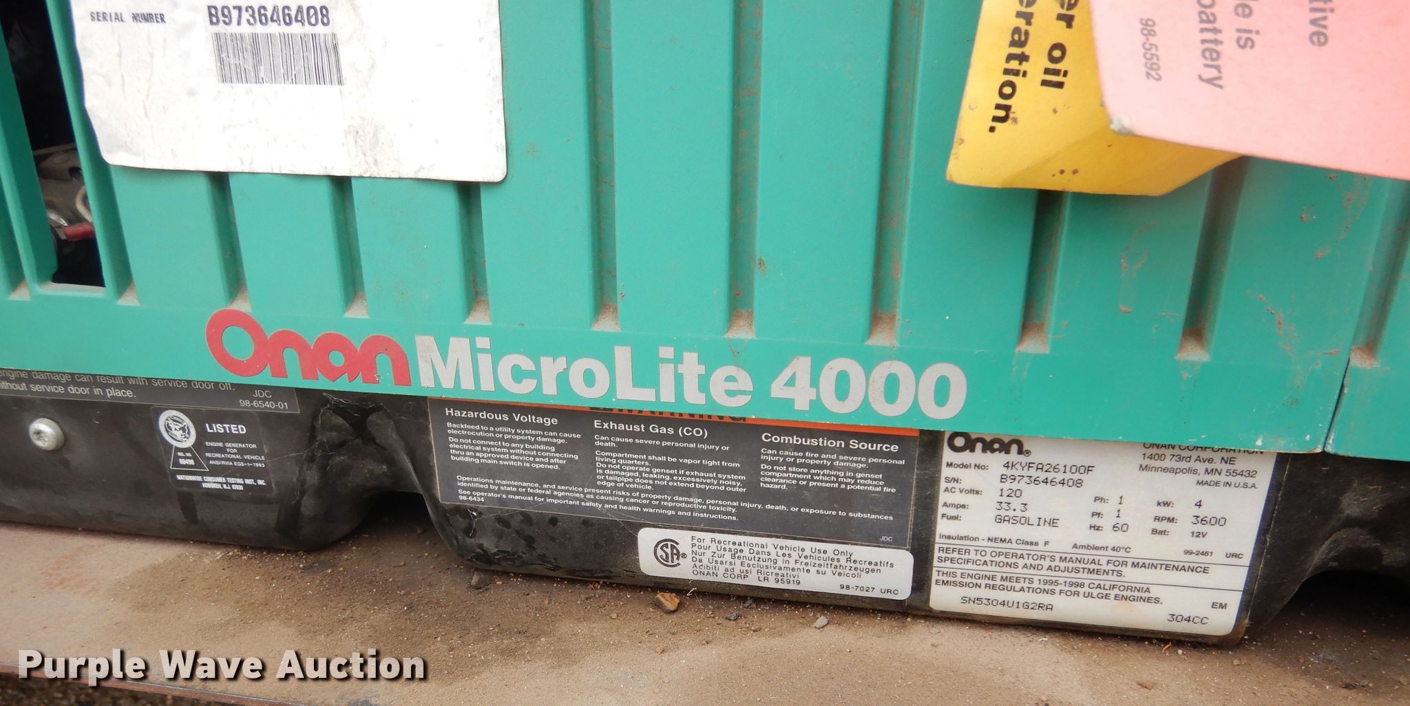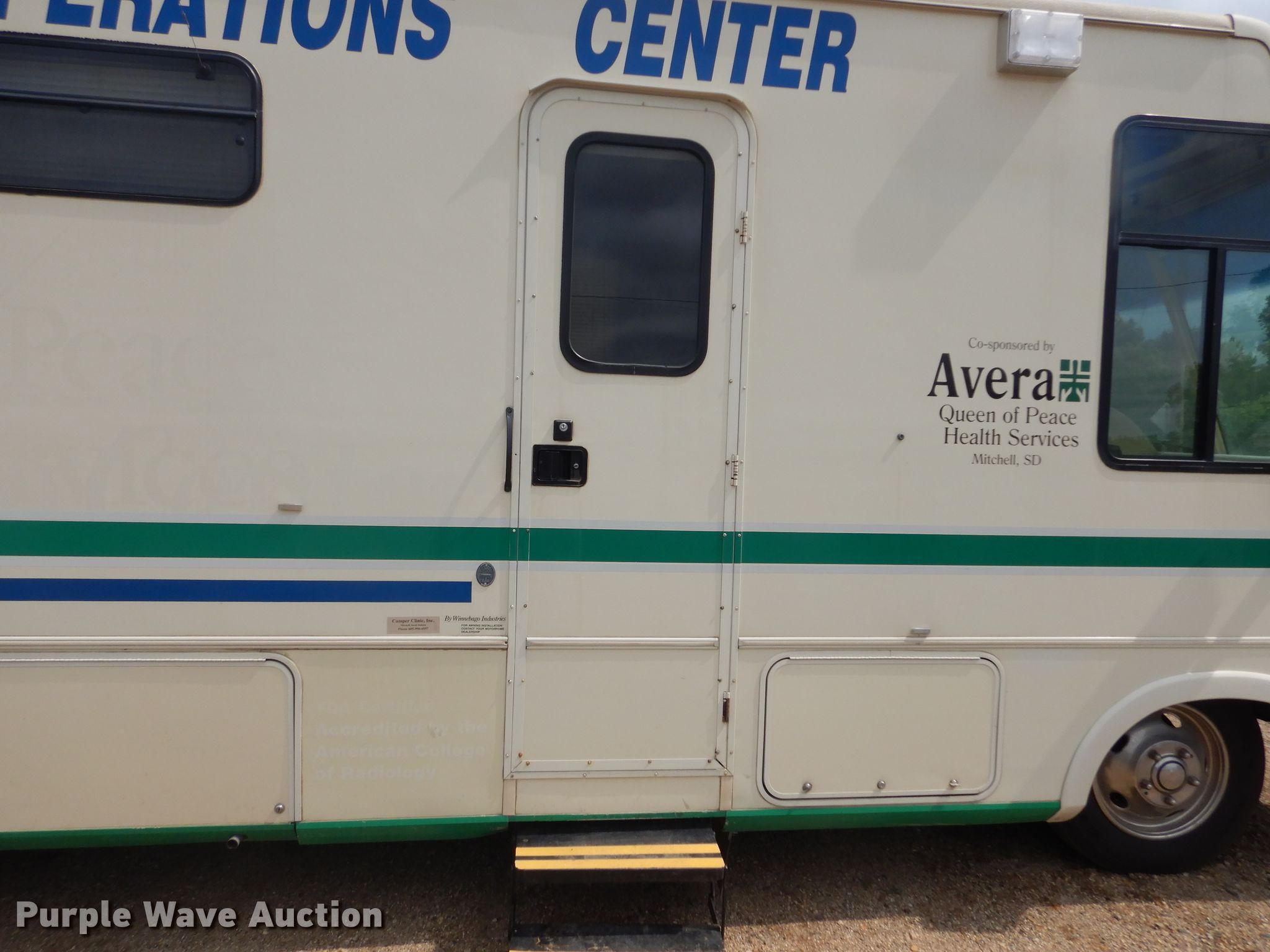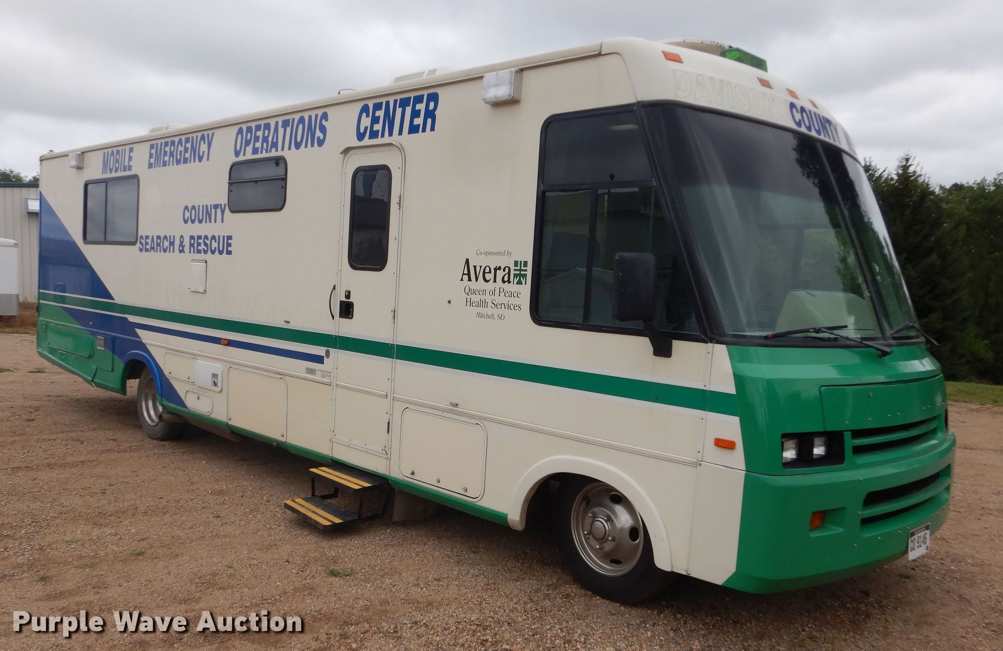 1994 Winnebago SCG34RS mobile command center. 253,801 miles on odometer, 1,108 hours on meter, Camper length: 34'. Engine Cylinders: 8, Fuel type: Gas. Transmission Automatic. Chassis Axles: Single, Suspension: Spring, Brakes: Hydraulic, GVWR: 16,000 lbs, GAWR: 10,500 lbs. Interior Kitchen: Refrigerator, Bathroom, AC units: 2. Operational (2) generators Onan, Fuel type: Gas. Tires Size: 8R19.5, Brand: 8R19.5. South Dakota title. Division of Motor Vehicle records indicate this motor vehicle has been damaged at one time in excess of three thousand dollars.. Title distribution may be delayed up to 14 days from verification of funds. 1GBKP37N3P3322667. Davison County, SD. 1224 W 5th Ave. Mitchell, SD 57301