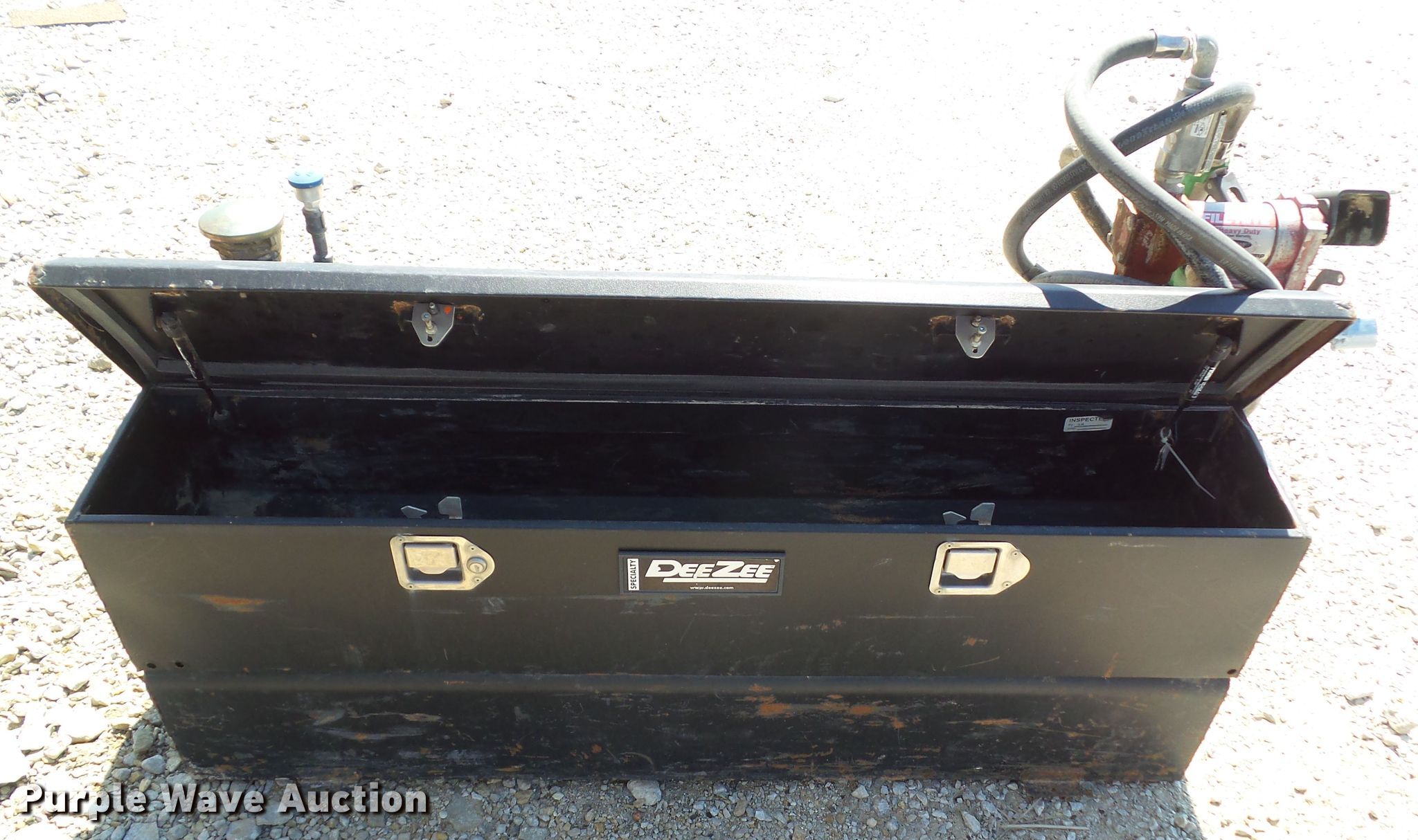 Purple Wave is selling a used Fuel and Lube in Iowa. This item is a Dee Zee auxiliary fuel tank with the following: Capacity: 50 gallons, Fill-Rite pump, GPM: 15, Integrated toolbox