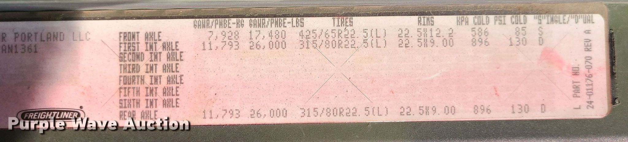 - Front: 425/65R22.5