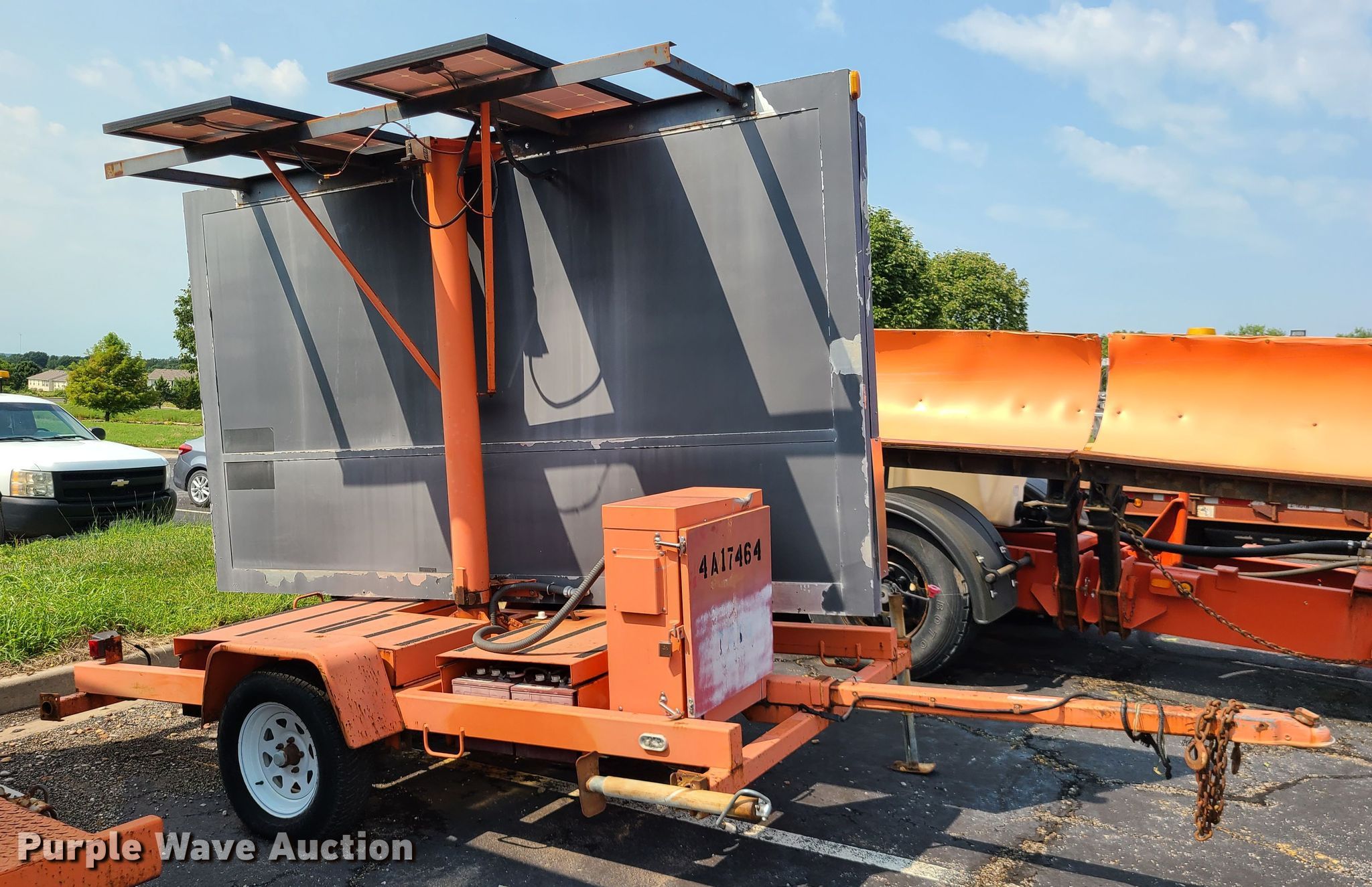 Purple Wave is selling a used Road Safety Equip. in Missouri. This item is a 2001 American Signal message board trailer with the following: 16' L x 7' W, 36V, 205/75R15 tires, Unknown operating condition