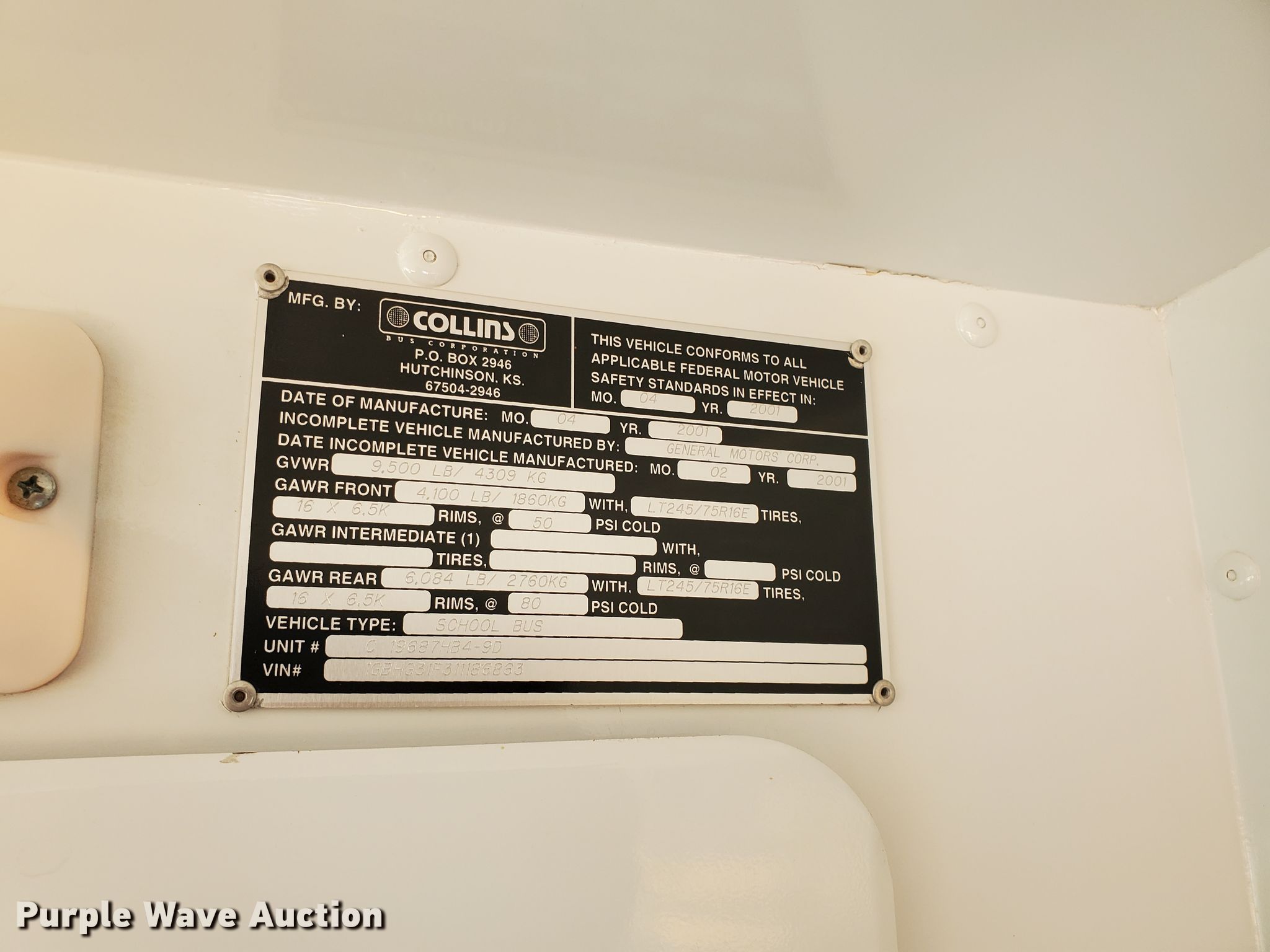 Purple Wave is selling a used Bus in Kansas. This item is a 2001 Chevrolet Express 3500 Cargo school bus with the following: Miles: 178,742 on odometer, VIN: 1GBHG31F311186863