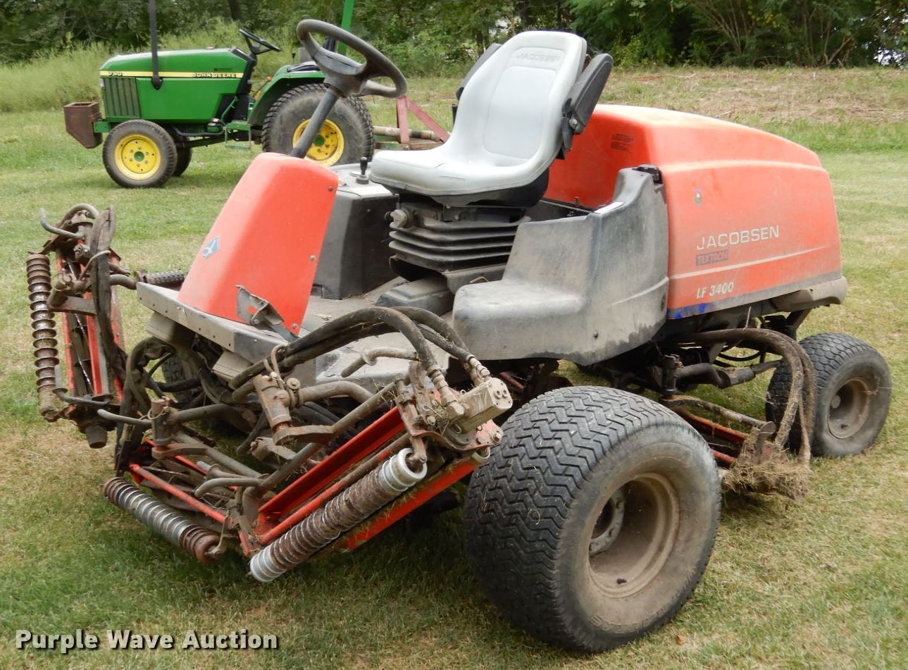 Purple Wave is selling a used Commercial Turf Mower in Missouri. This item is a Jacobsen LF3400 reel mower with the following: 3,725 hours on meter, Cutting width: 102", Serial: 67868