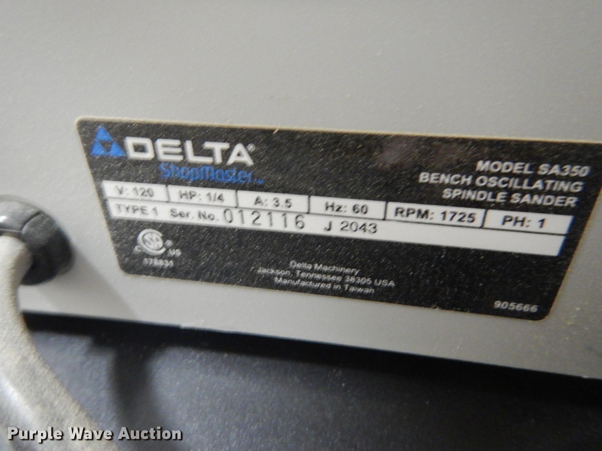 Purple Wave is selling a used Tools in Iowa. This item is a Delta SA350 sander with the following: Oscillating spindle