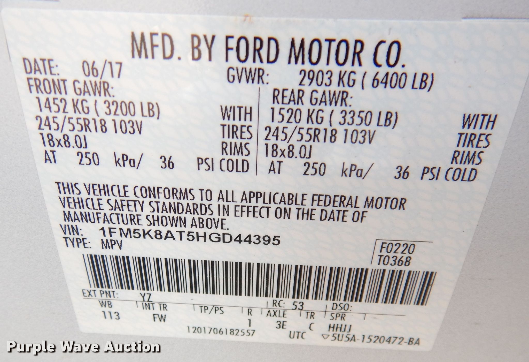 2017 Ford Explorer Police Interceptor SUV. 118,338 miles on odometer, Unit #: 38156. Engine Displacement: 3.5L V6 DOHC 24V, Cylinders: 6, Fuel type: Gas. Transmission Automatic. Interior AC, Heat, Seat: Power driver, Power windows, Power locks, Cruise control, Backup camera. Tires Size: 245/55R18. Notes Roof damage, No center console. Kansas title. Title distribution may be delayed up to 14 days from verification of funds. 1FM5K8AT5HGD44395. Kansas Turnpike Authority. 3939 SW Topeka Blvd. Topeka, KS 66609