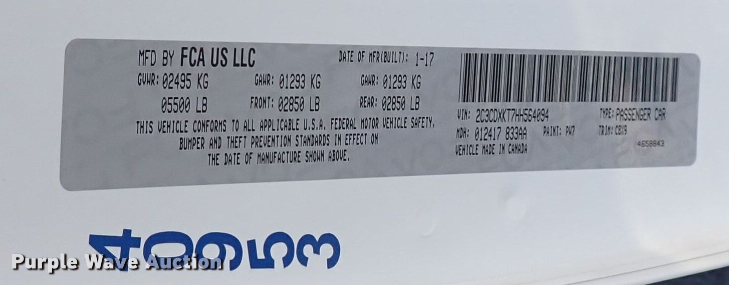 2017 Dodge Charger Police. 111,785 miles on odometer, Unit #: 40953. Engine Displacement: 5.7L V8 OHV 16V, Cylinders: 8, Fuel type: Gas. Transmission Automatic, All wheel drive. Interior AC, Heat, Power windows, Power locks, Cruise control. Tires Size: 225/60R18. Notes Dash warning indicator: Air bag. Kansas title. 2C3CDXKT7HH564094. Kansas Turnpike Authority. 9401 E Kellogg Dr. Wichita, KS 67207
