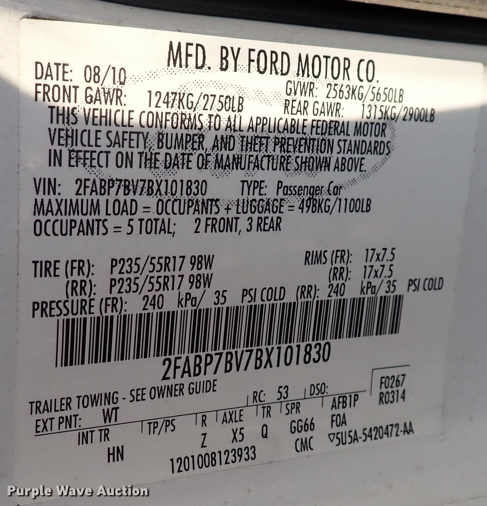 Purple Wave is selling a used Passenger Vehicle in Kansas. This item is a 2011 Ford Crown Victoria Police Interceptor with the following: 119,977 miles on odometer, Unit #: 5963