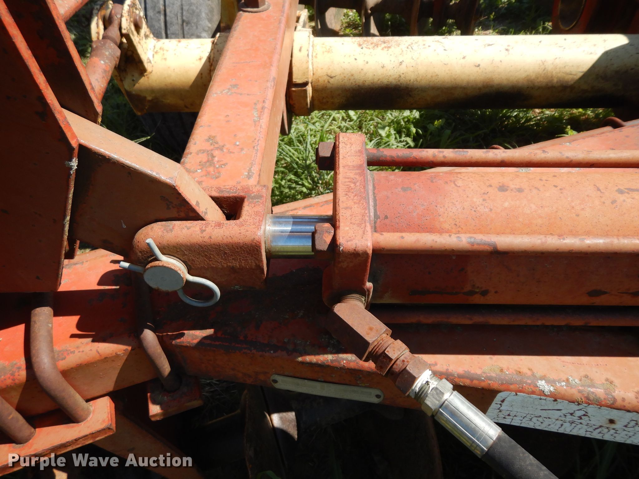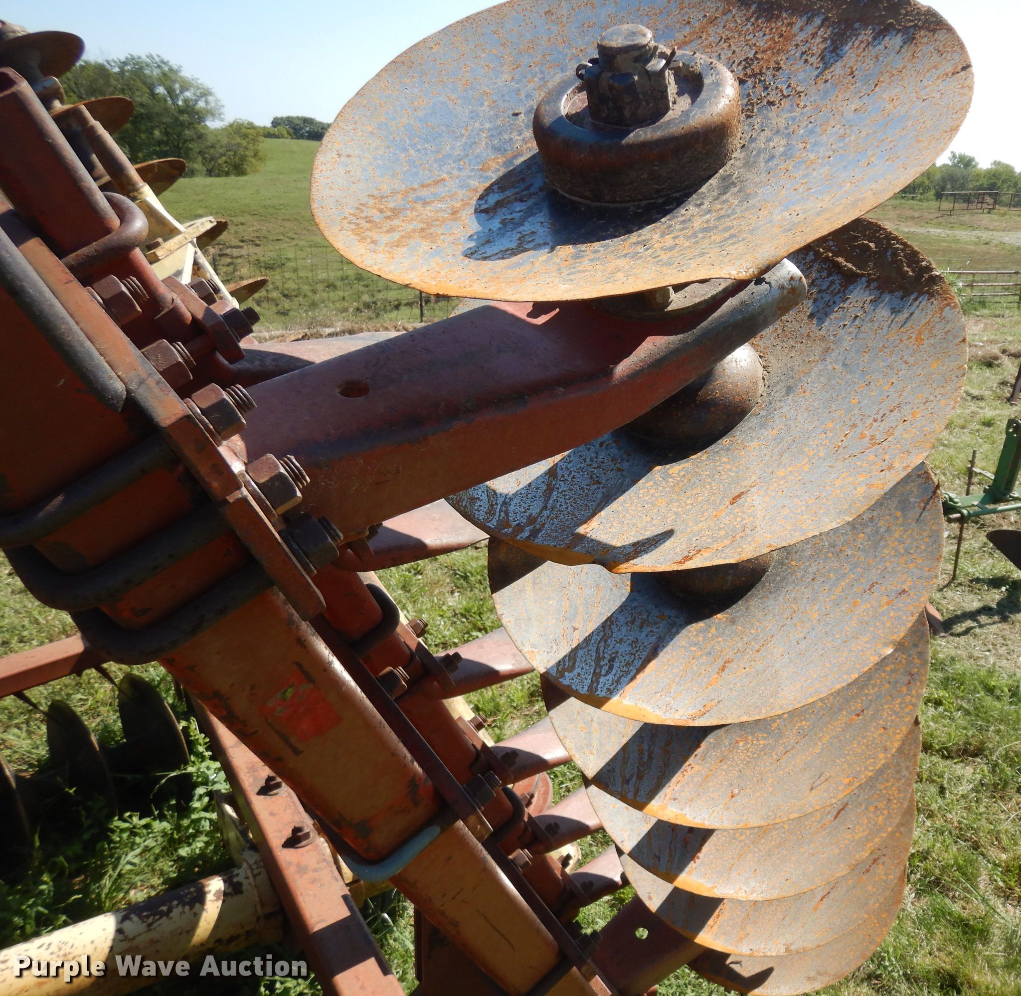 Krause 1900 double off-set disk. Overall width: 21', Serial: 2497. Operational Front blades Diameter: 19", Spacing: 9", Rear blades Diameter: 19", Spacing: 9", Disk scrapers, Operation Hydraulic lift, Hydraulic fold, Leveler: Manual. Tires Tire size: 11L-15. 23400 Cox Rd. Weston, MO 64098