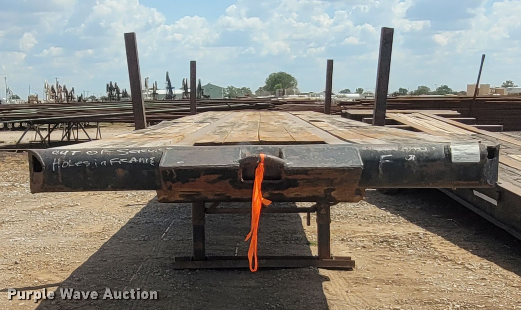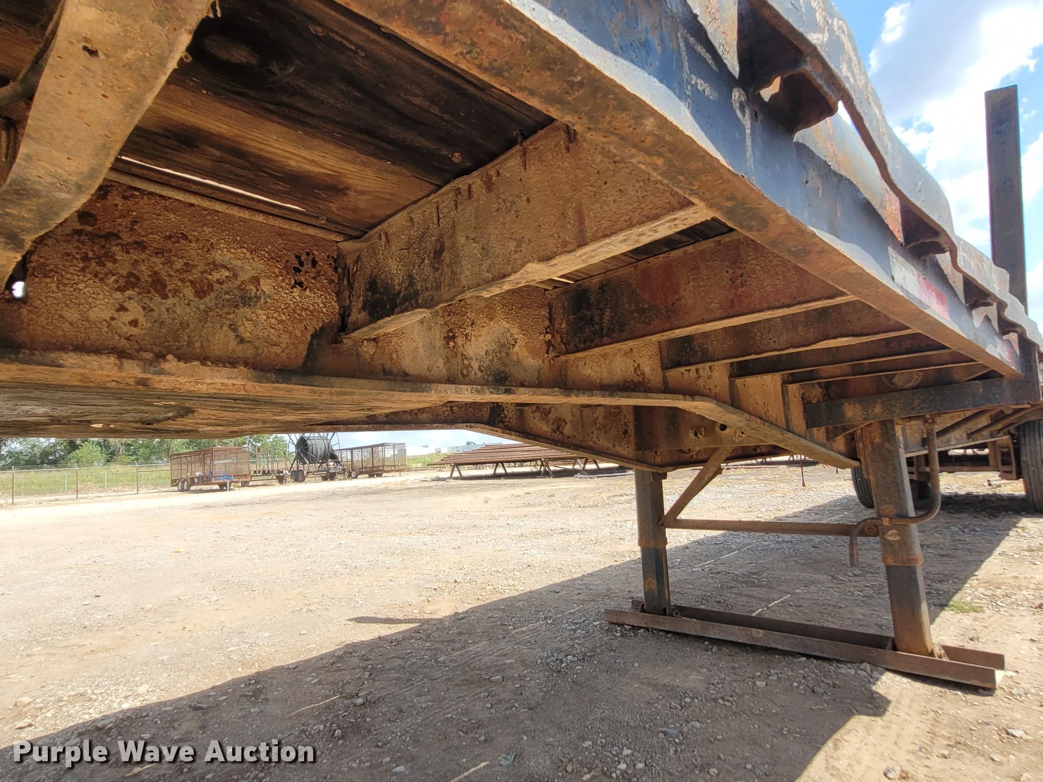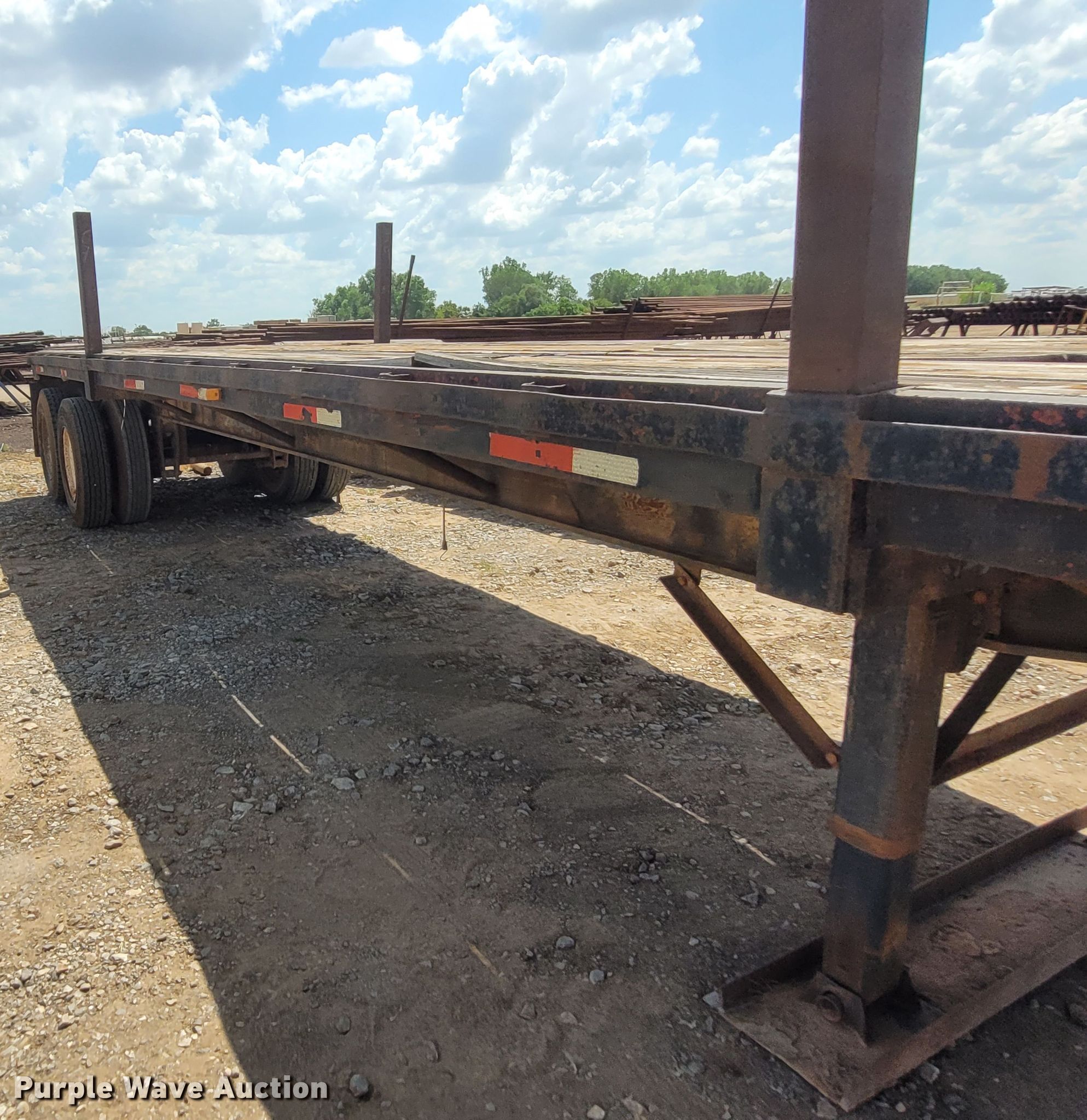 1977 Hobbs flatbed trailer. VIN: FHX673112. Dimensions Overall: 96" W. Operational Deck type: Wood. Chassis Landing gear: Dual, Suspension: Spring, Brakes: Air, Axles: Tandem. Tires Steel wheels, Size: 11R24.5. Oklahoma title. Title distribution may be delayed up to 30 days from verification of funds. Rite-Way Construction. Enid, OK 73703
