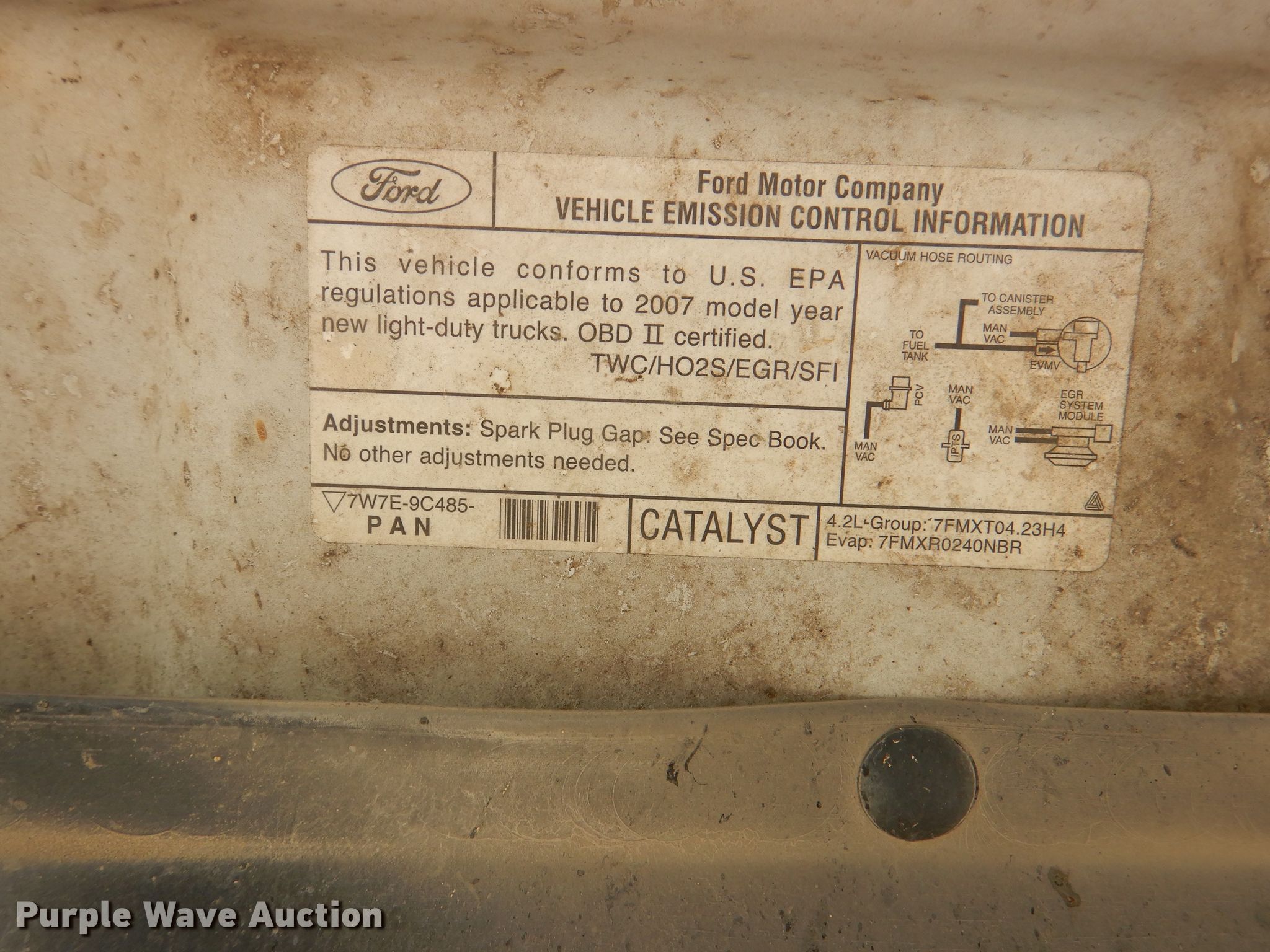 2007 Ford F150 XL pickup truck. 201,171 miles on odometer, KDOT ID: 053-1287. Engine Displacement: 4.2L V6 OHV 12V, Cylinders: 6, Fuel type: Gas. Transmission Automatic. Interior AC, Heat, Cruise control. Tires Size: 245/75R17. Notes Hail damage, Front suspension issues, loose. Kansas title. Titles will be distributed after confirmation of payment and removal. 1FTRF12277KC90925. Kansas Department of Transportation - Topeka. 121 SW 21st St. Topeka, KS 66612