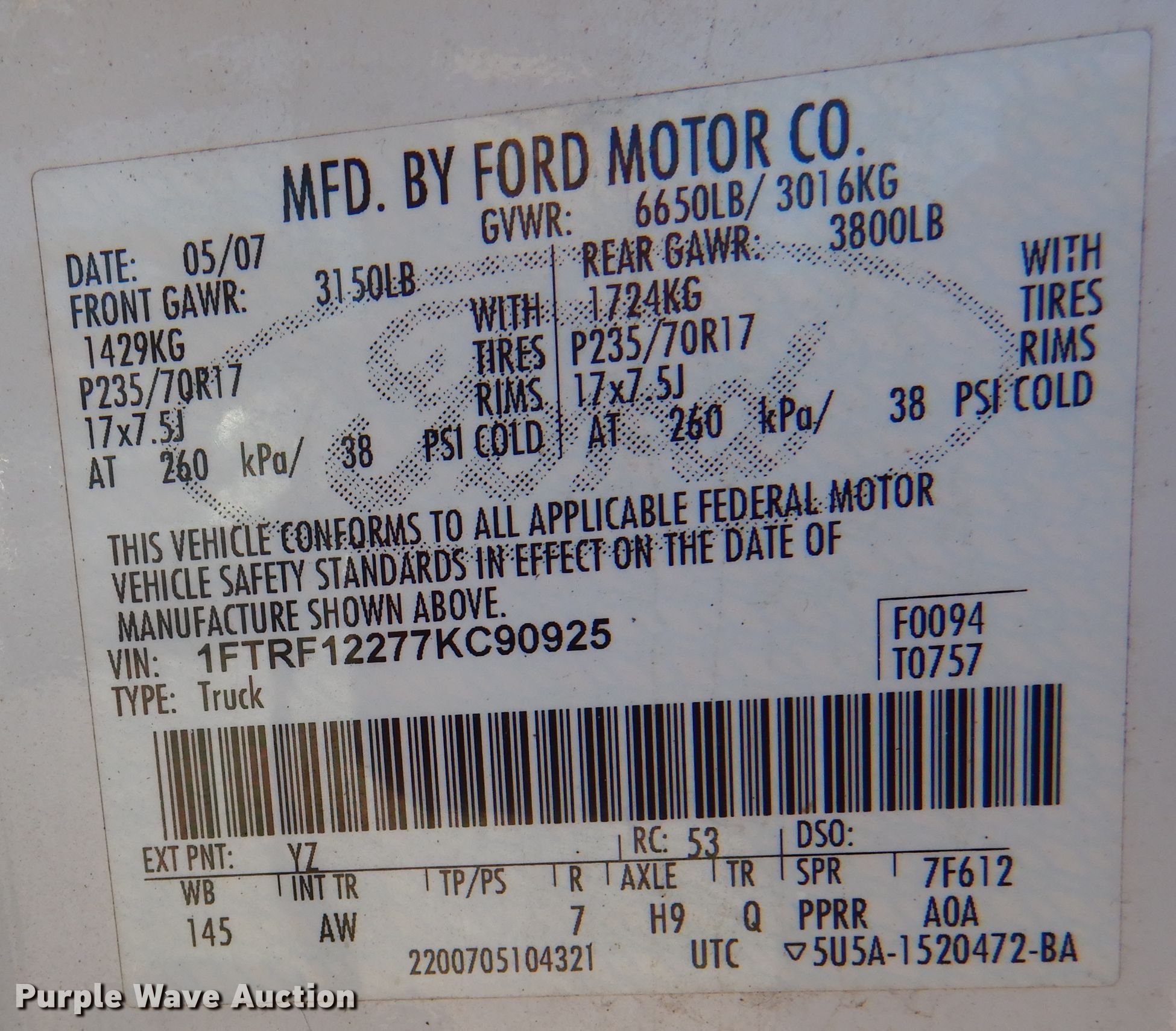 Purple Wave is selling a used 1/2 Ton Pickup or Van in Kansas. This item is a 2007 Ford F150 XL pickup truck with the following: 201,171 miles on odometer, KDOT ID: 053-1287