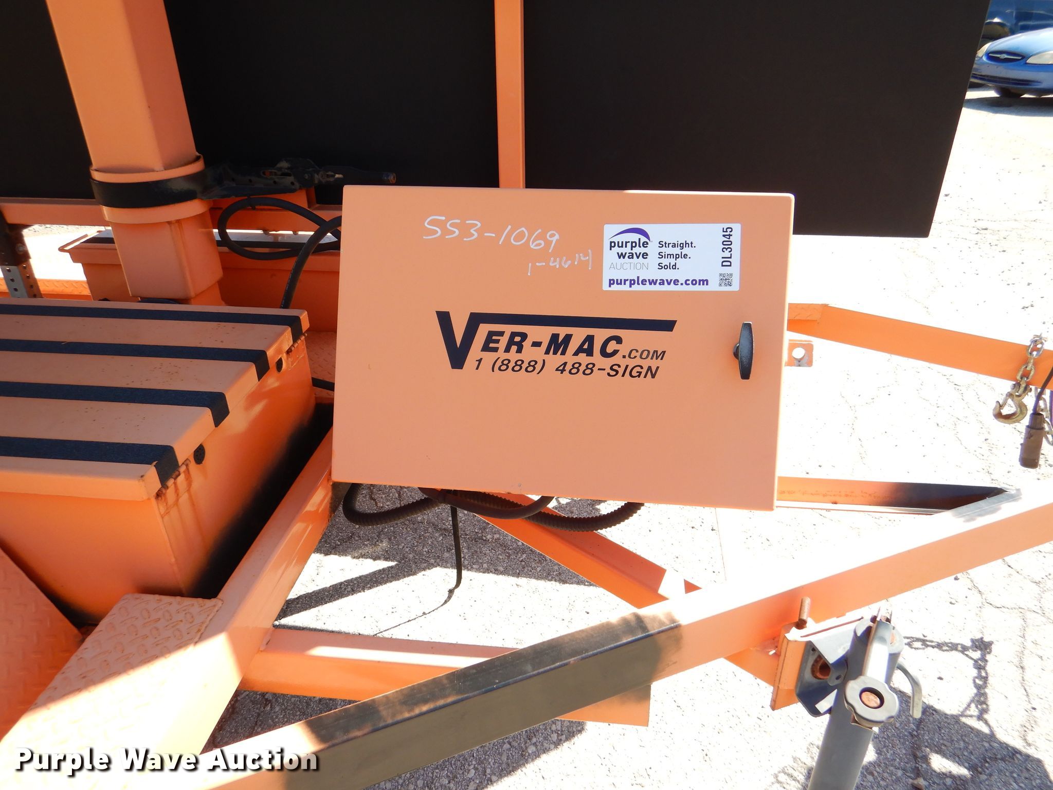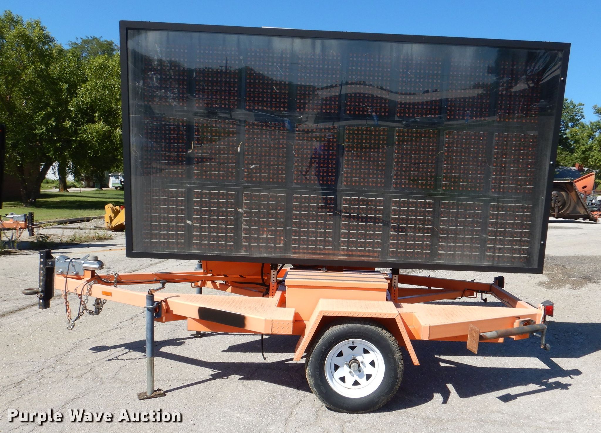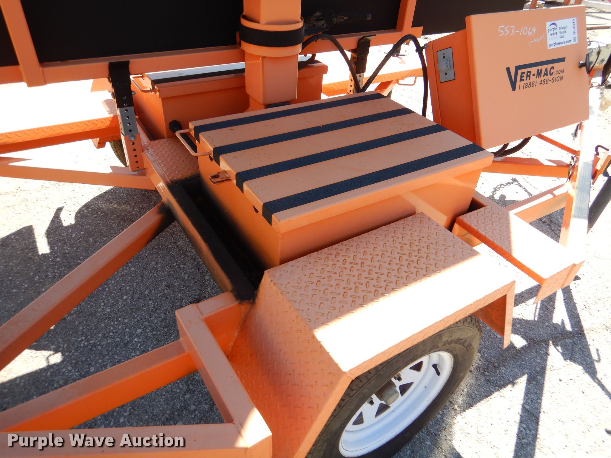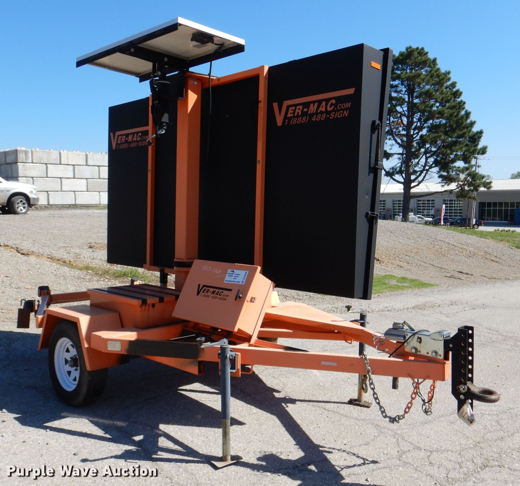 Purple Wave is selling a used Road Safety Equip. in Kansas. This item is a 2009 Ver-Mac PCMS1210 message board trailer with the following: VIN: 2S9US41209S132729, Solar panel, Pintle hitch, 205/75R15 tires, Non-operational unit, KDOT ID 553-1069