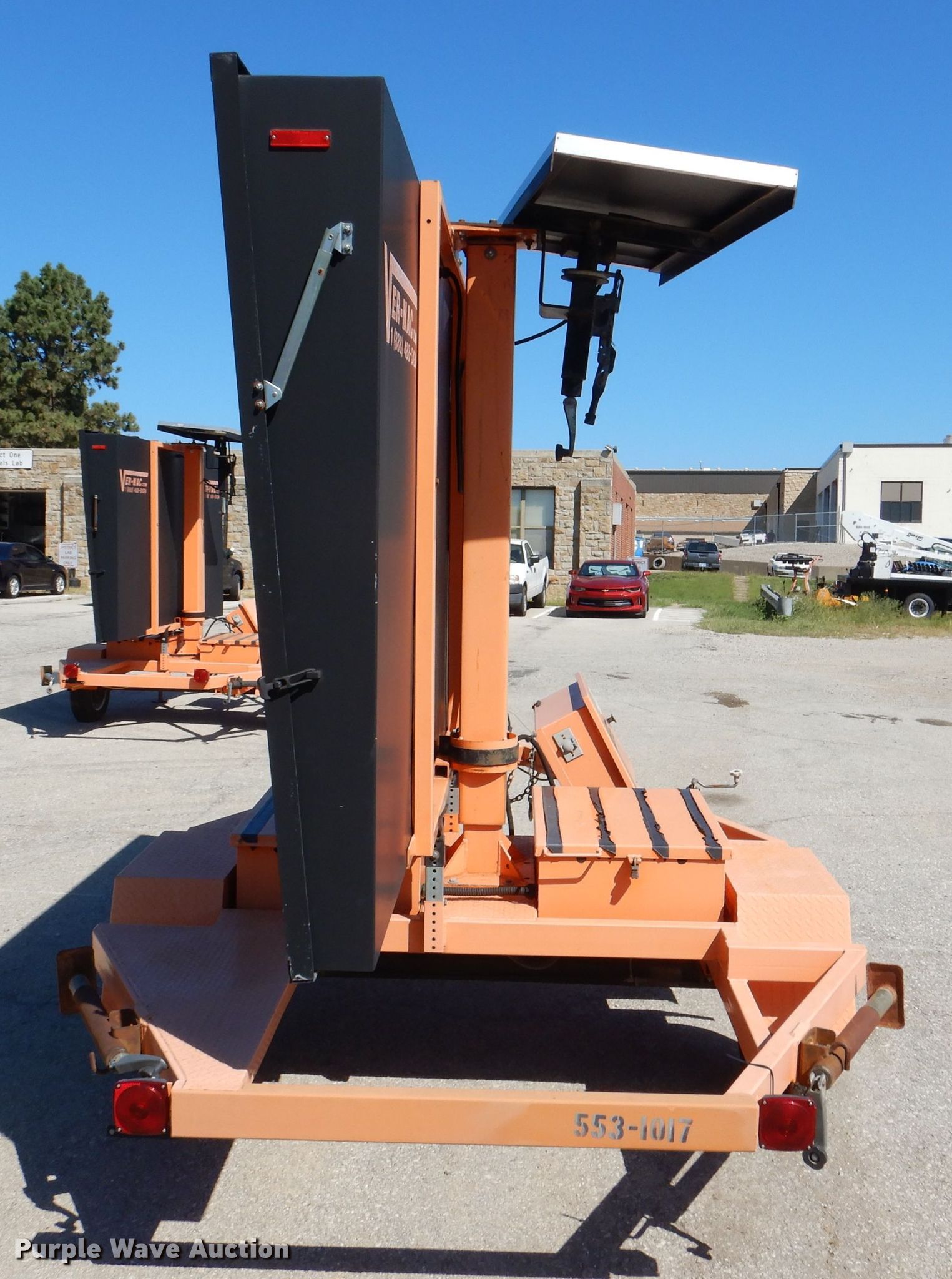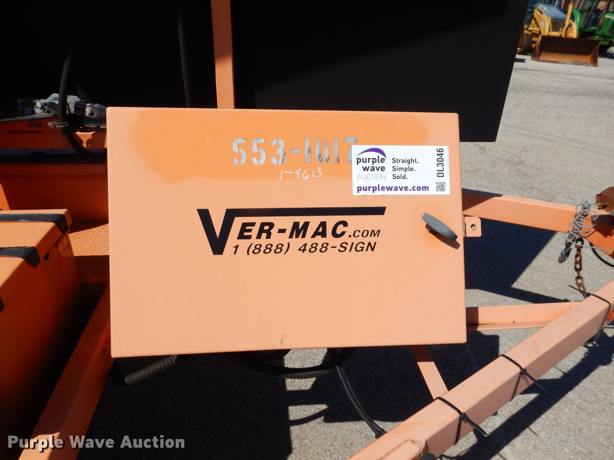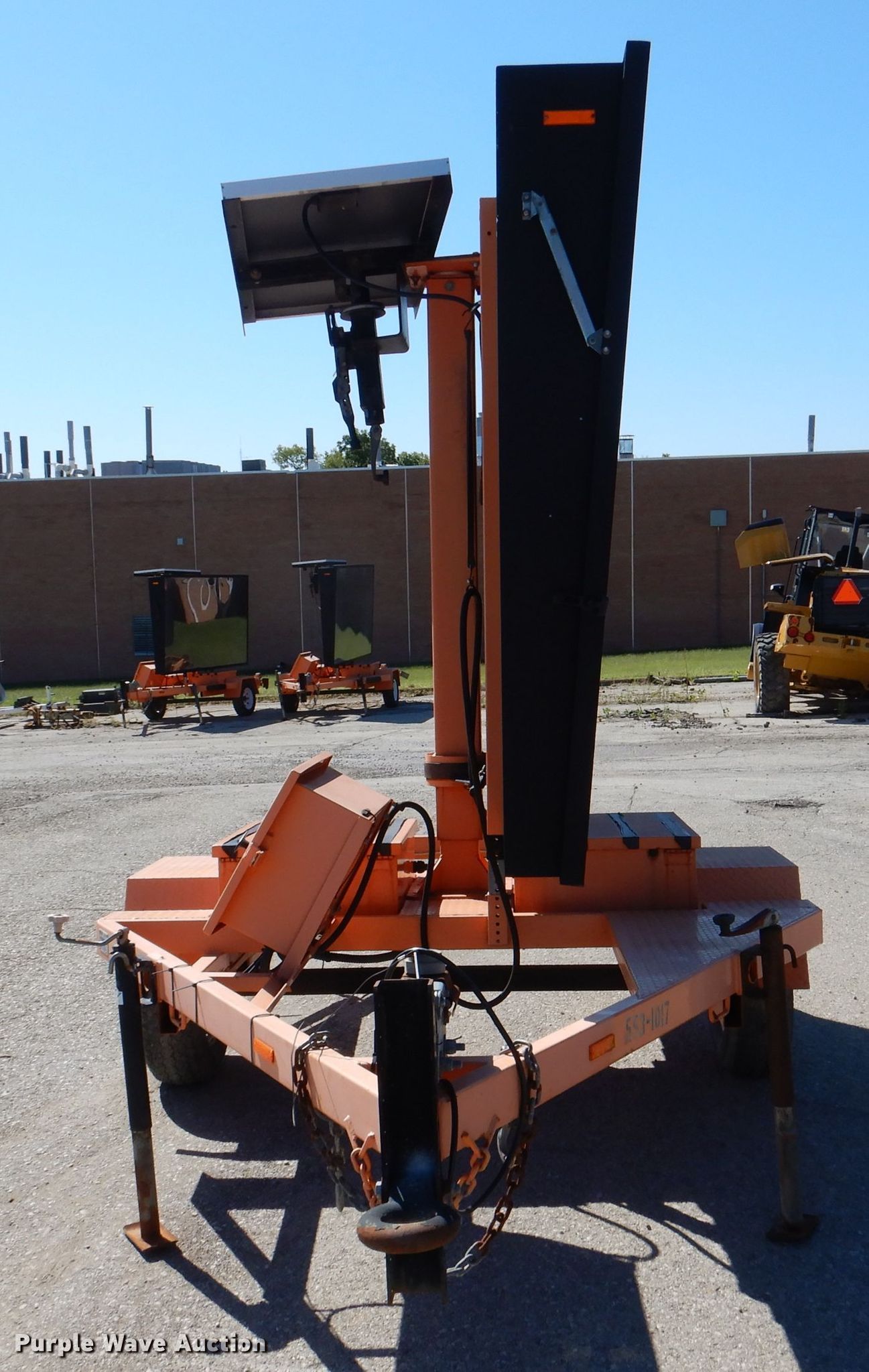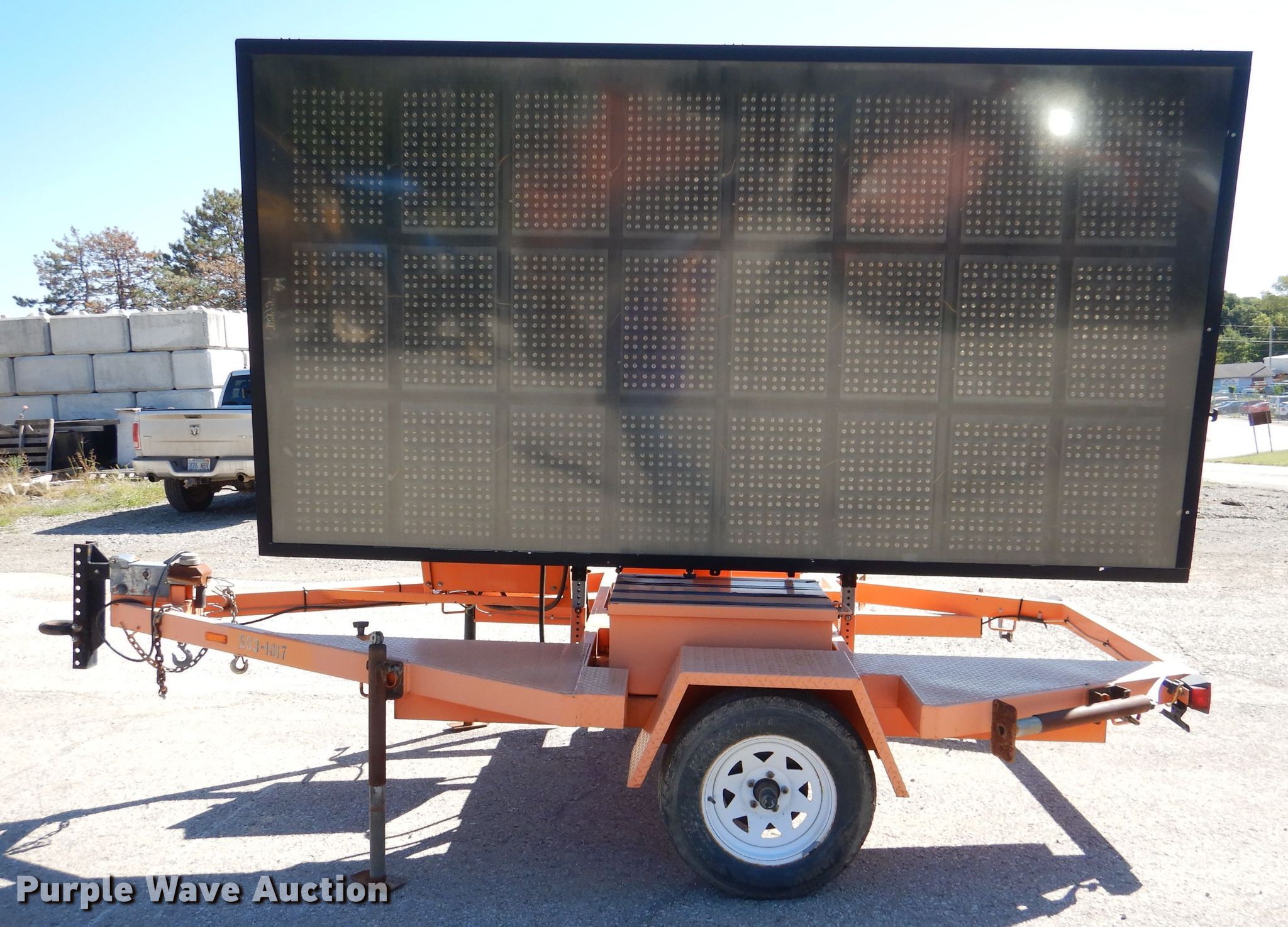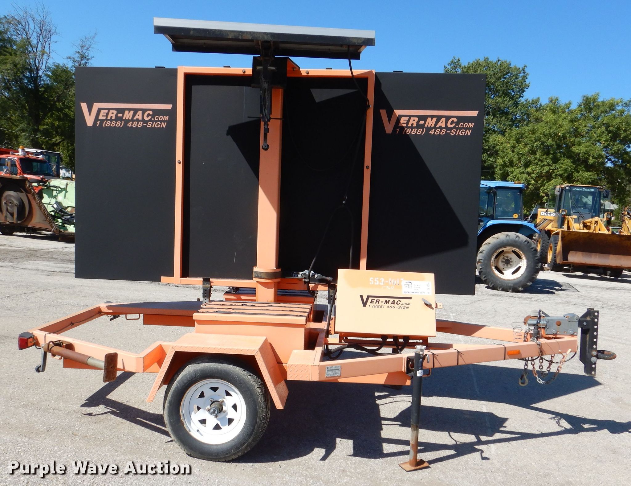 Purple Wave is selling a used Road Safety Equip. in Kansas. This item is a 2007 Ver-Mac PCMS1210 message board trailer with the following: Solar panel, Pintle hitch, Single axle, 205/75R15 tires, GAWR 3,500 lbs, Non-operational keyboard controls, Unknown operating condition, KDOT ID 553-1017