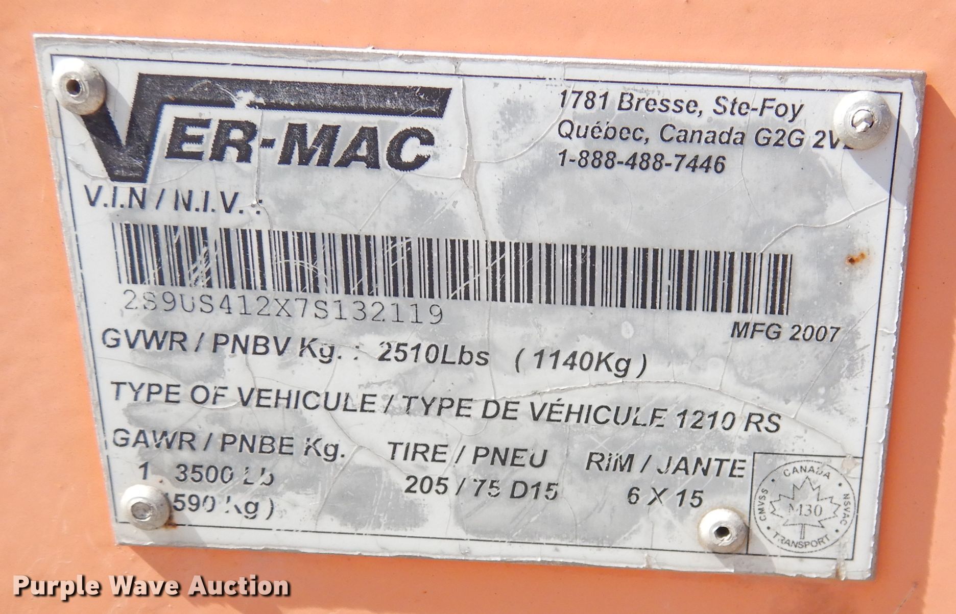 2007 Ver-Mac PCMS1210 message board trailer. Solar panel, Pintle hitch, Single axle, 205/75R15 tires, GAWR 3,500 lbs, Non-operational keyboard controls, Unknown operating condition , KDOT ID 553-1017. This is worksite support equipment and will not come with a title. Transfer of ownership documentation will be a bill of sale. 2S9US412X7S132119. Kansas Department of Transportation - Topeka. 121 SW 21st St. Topeka, KS 66612
