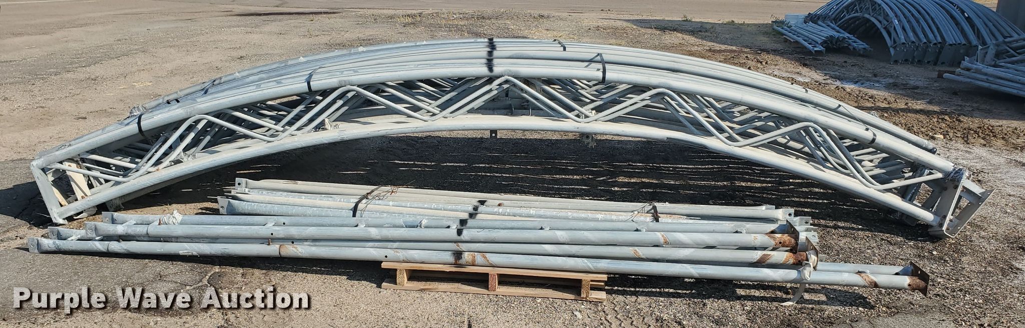 Purple Wave is selling a used Building Materials in Kansas. This item is a Tarp bows with the following: Approx. 15"W, 40'4" exterior span, 13'6" interior height, Parts and hardware may be missing, KDOT ID 3-3023