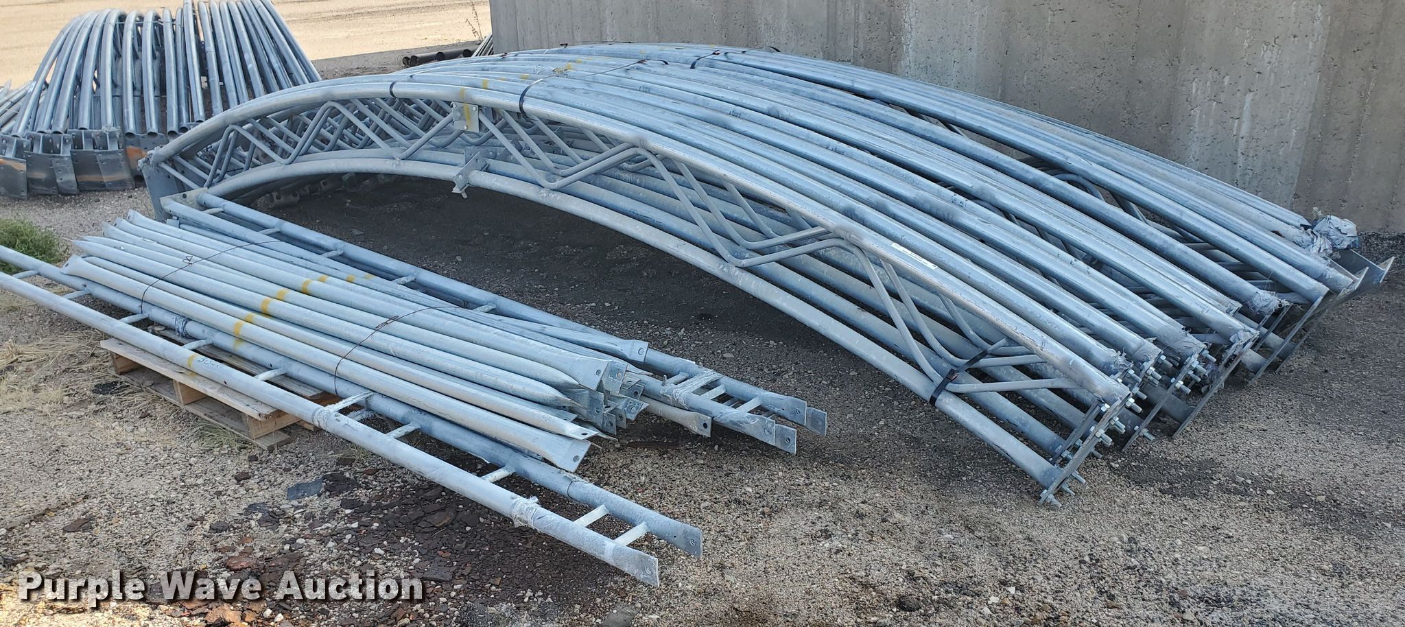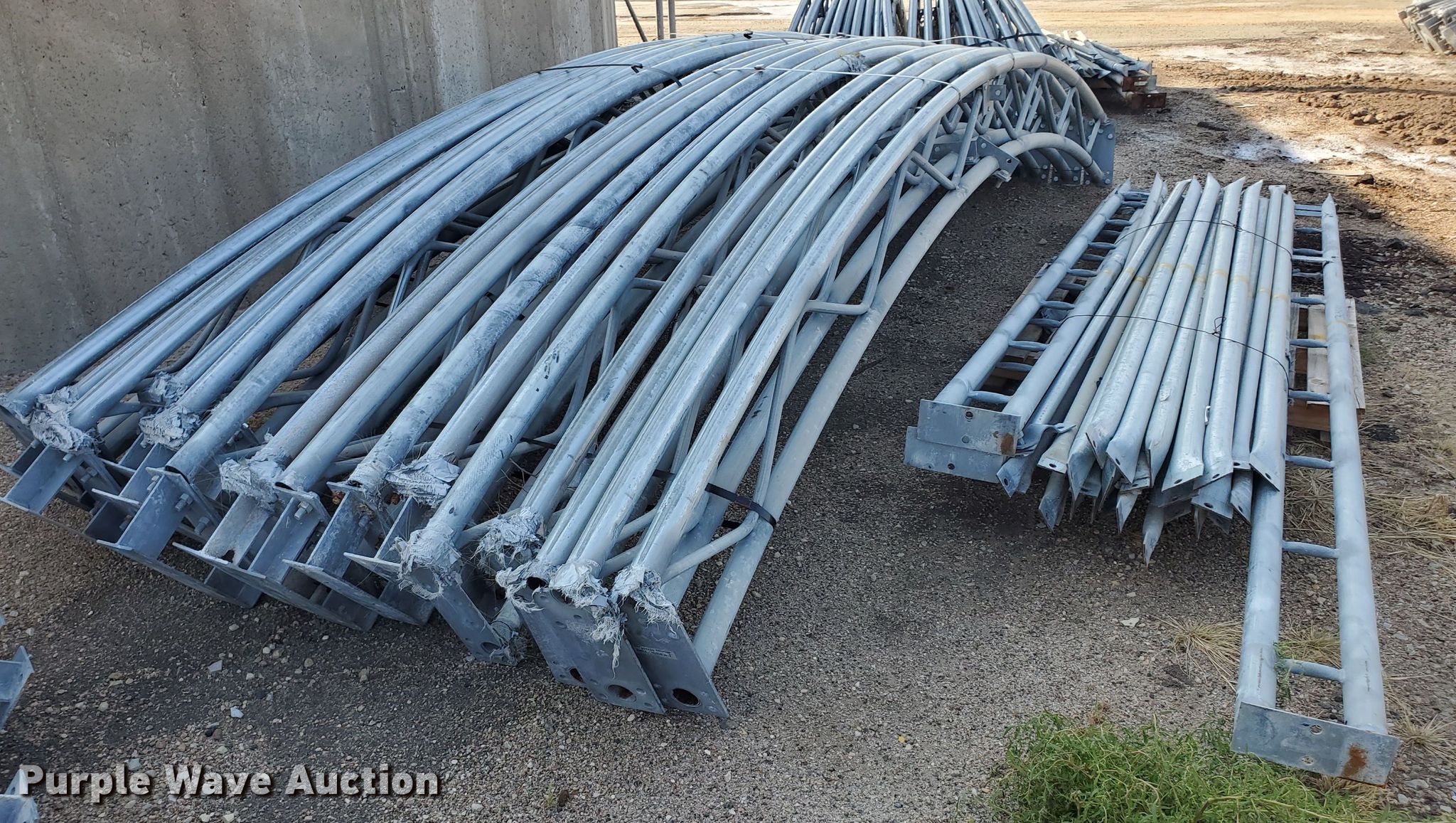 Cover-All tarp bows. Approx. 15"W, 40'4" exterior span, 13'6" interior height, Parts and hardware may be missing, KDOT ID 3-3021. Kansas Department of Transportation - Norton. 312 S 2nd Ave. Norton, KS 67654