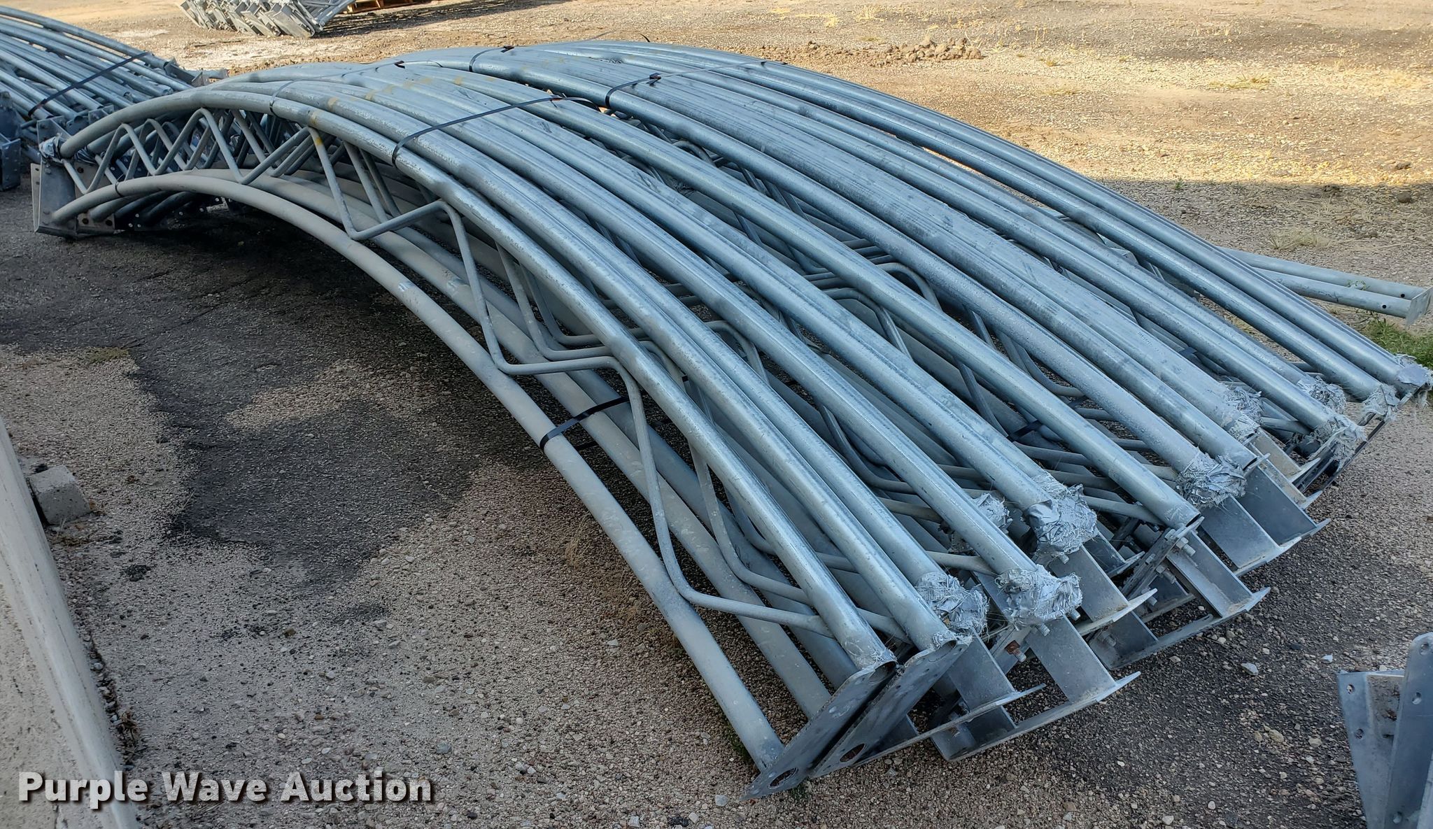 Purple Wave is selling a used Building Materials in Kansas. This item is a Cover-All tarp bows with the following: Approx. 15"W, 40'4" exterior span, 13'6" interior height, Parts and hardware may be missing, KDOT ID 3-3021