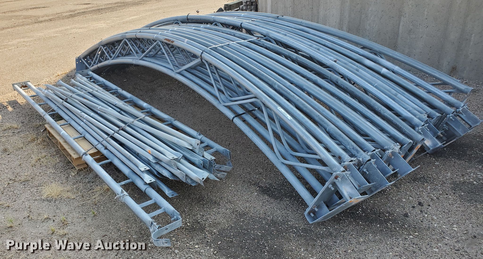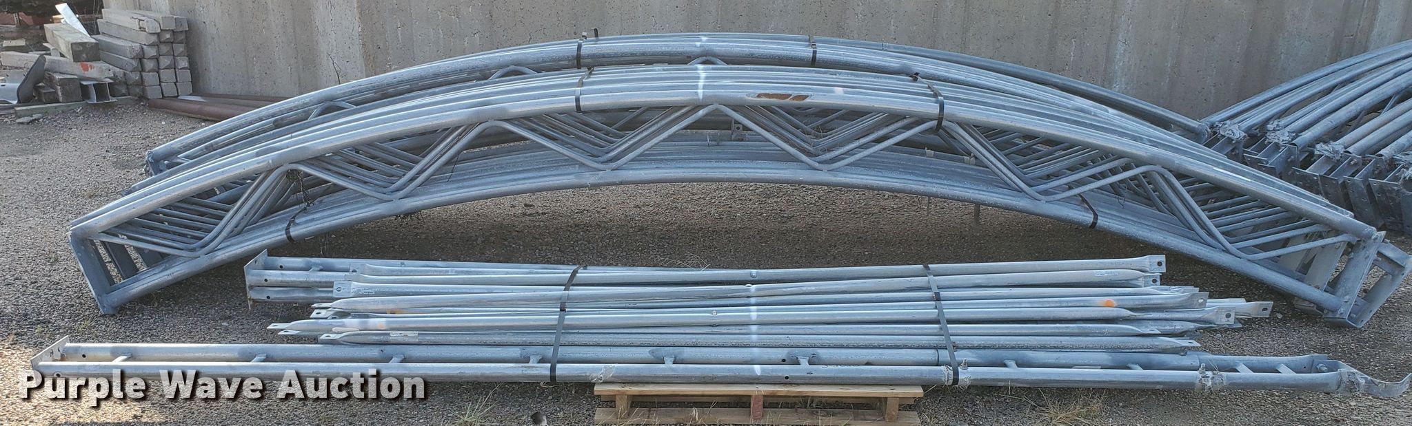Purple Wave is selling a used Building Materials in Kansas. This item is a Cover-All tarp bows with the following: Approx. 15"W, 40'4" exterior span, 13'6" interior height, Parts and hardware may be missing, KDOT ID 3-3020