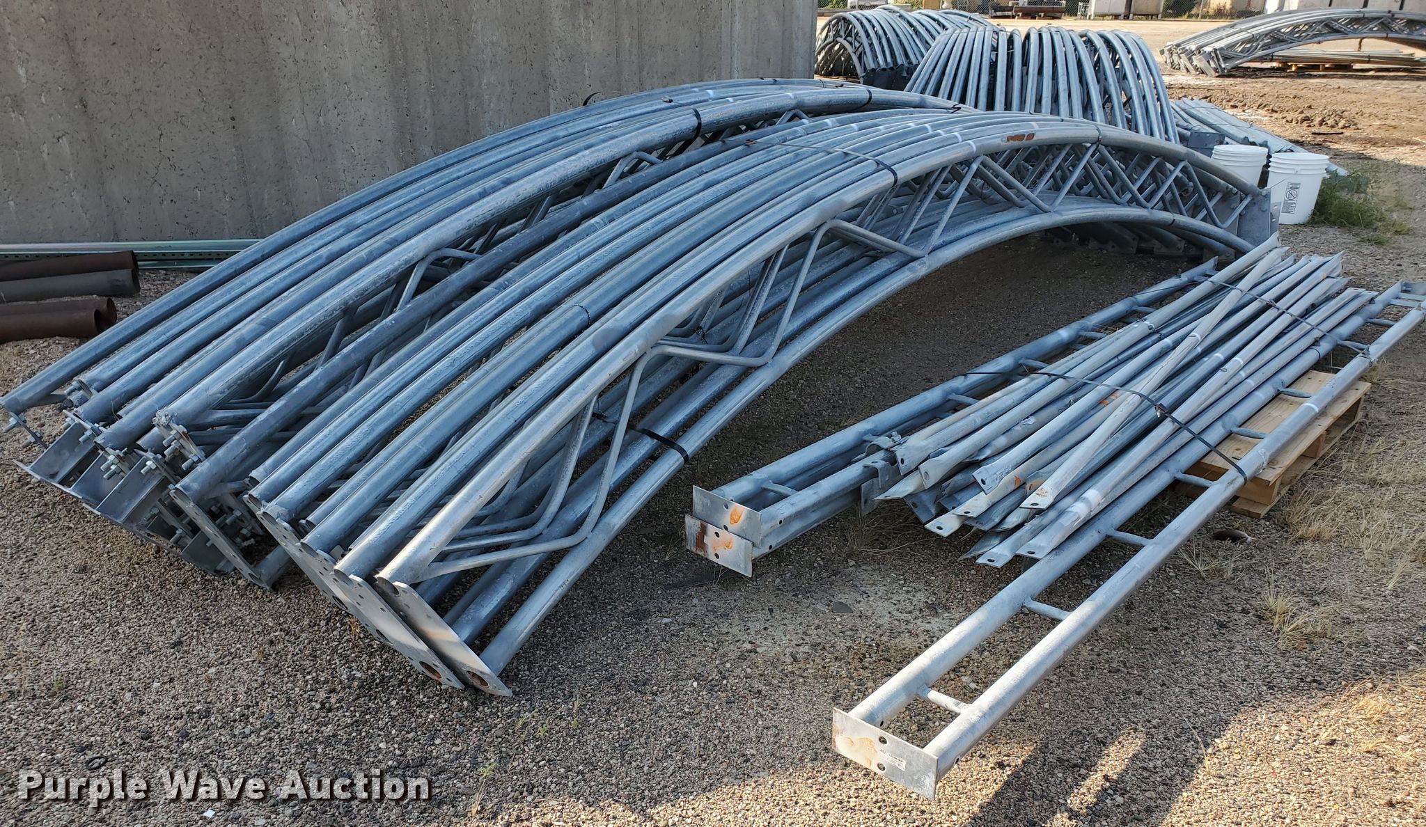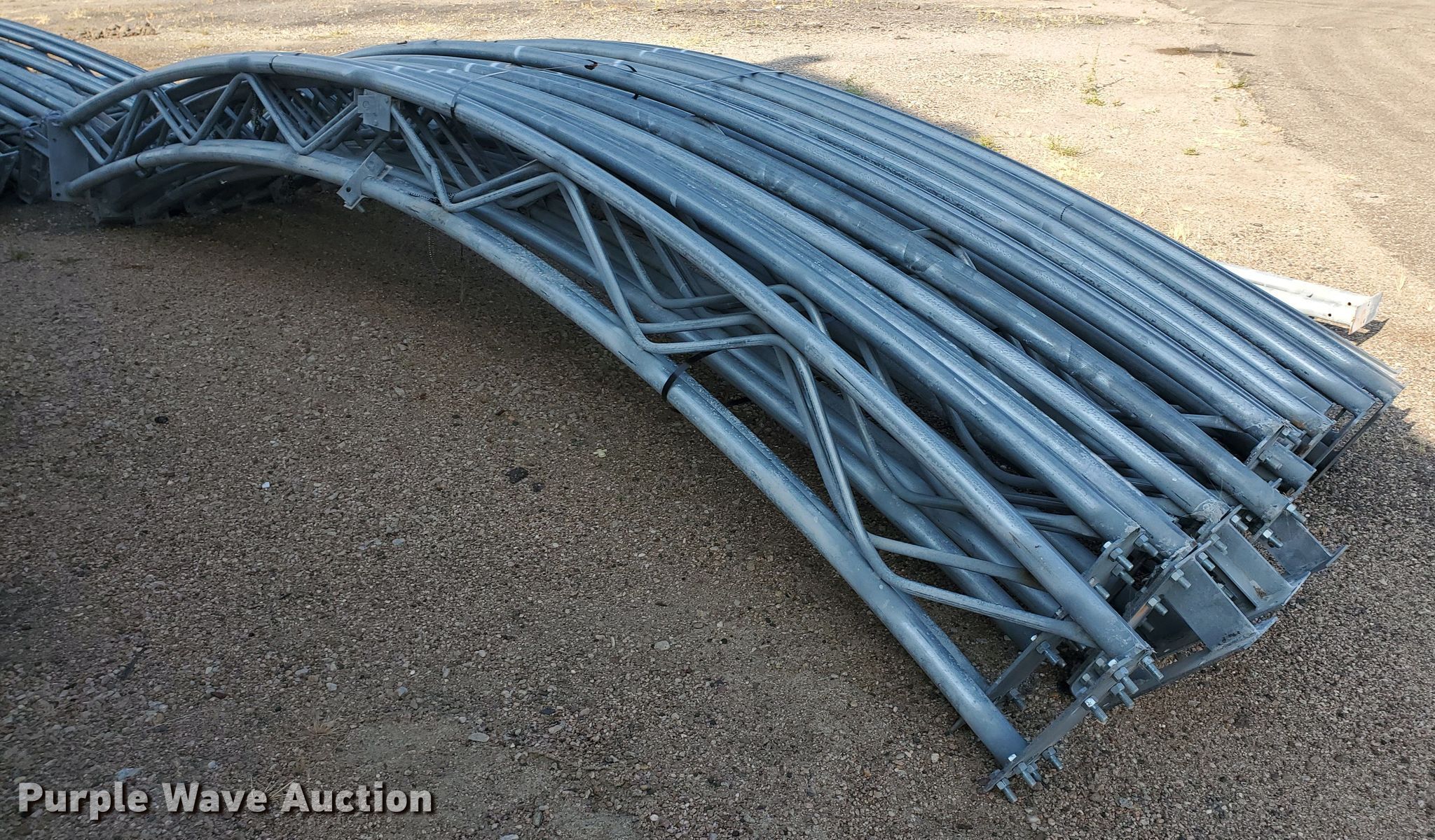 Cover-All tarp bows. Approx. 15"W, 40'4" exterior span, 13'6" interior height, Parts and hardware may be missing, KDOT ID 3-3020. Kansas Department of Transportation - Norton. 312 S 2nd Ave. Norton, KS 67654
