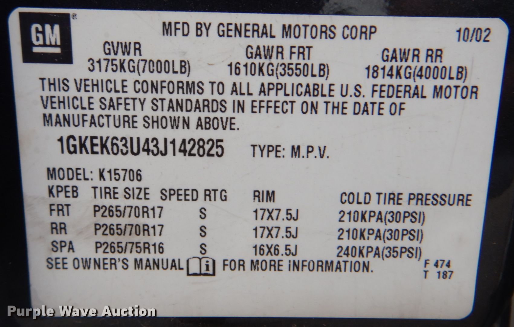 - VIN: 1GKEK63U43J142825