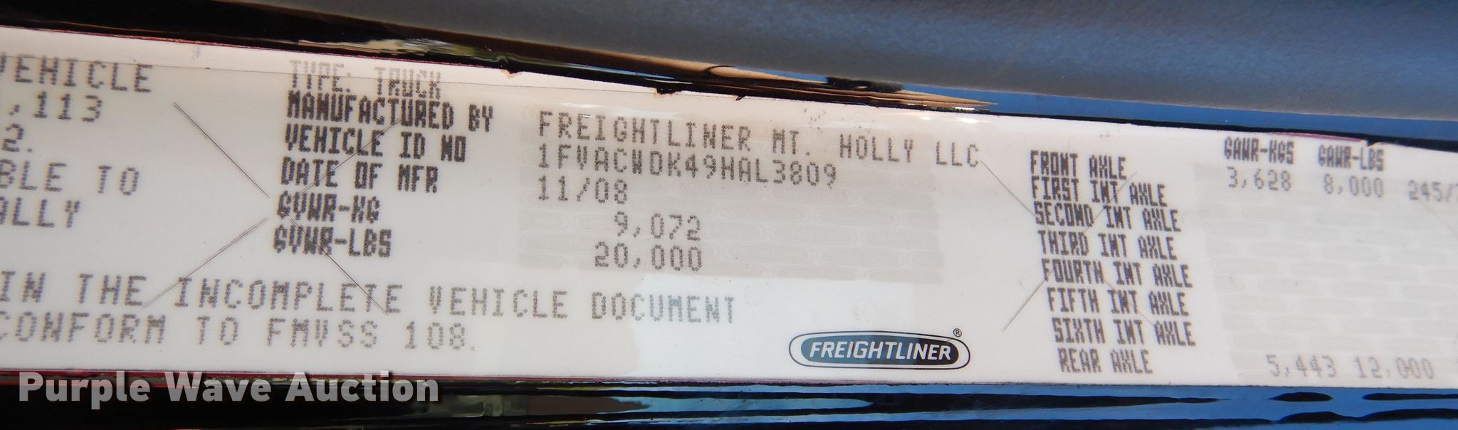 • VIN: 1FVACWDK49HAL3809