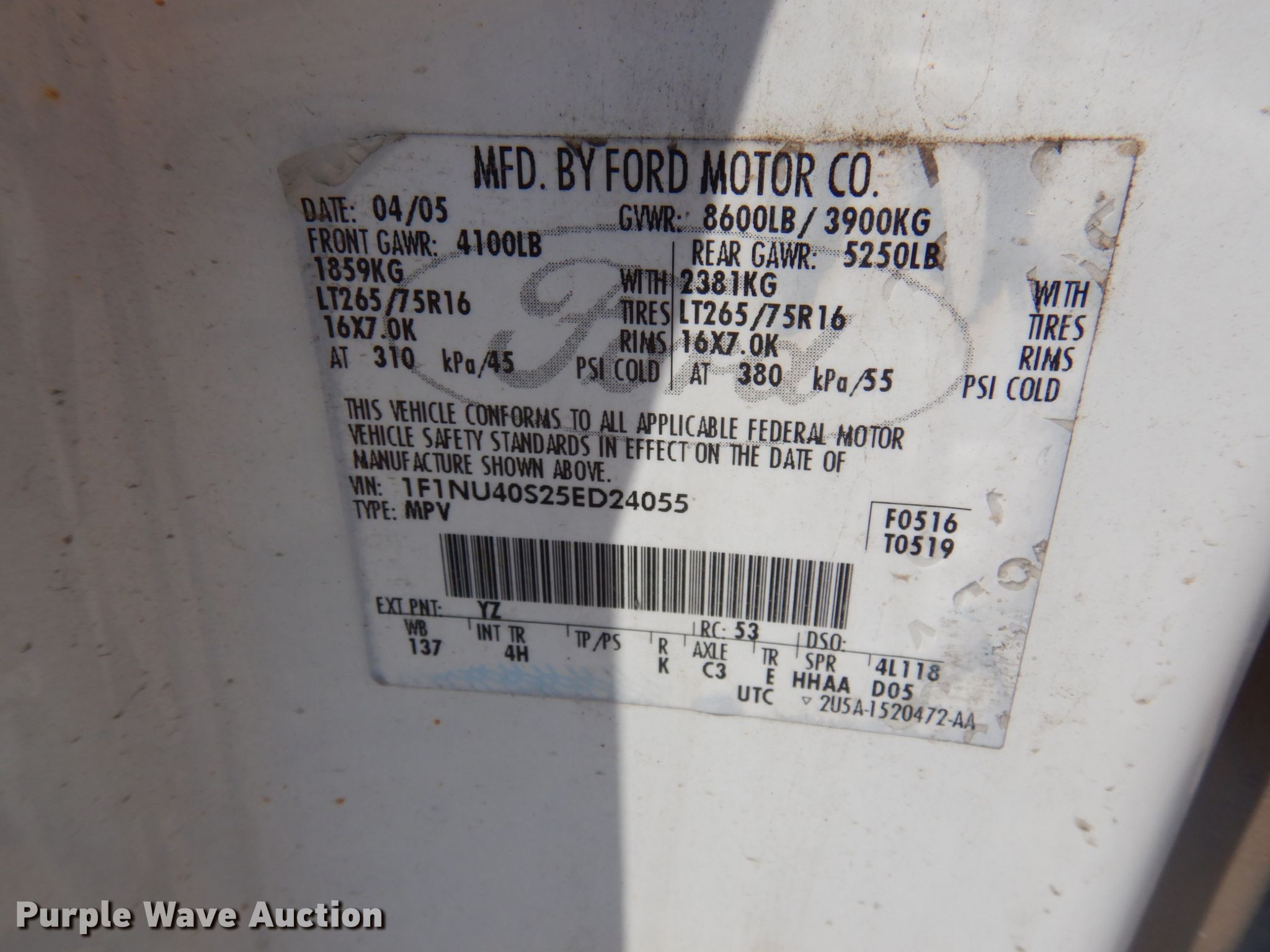 • VIN: 1F1NU40S25ED24055